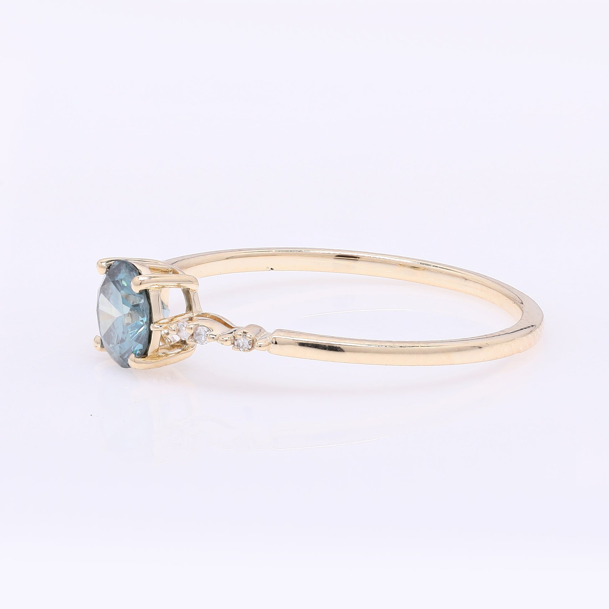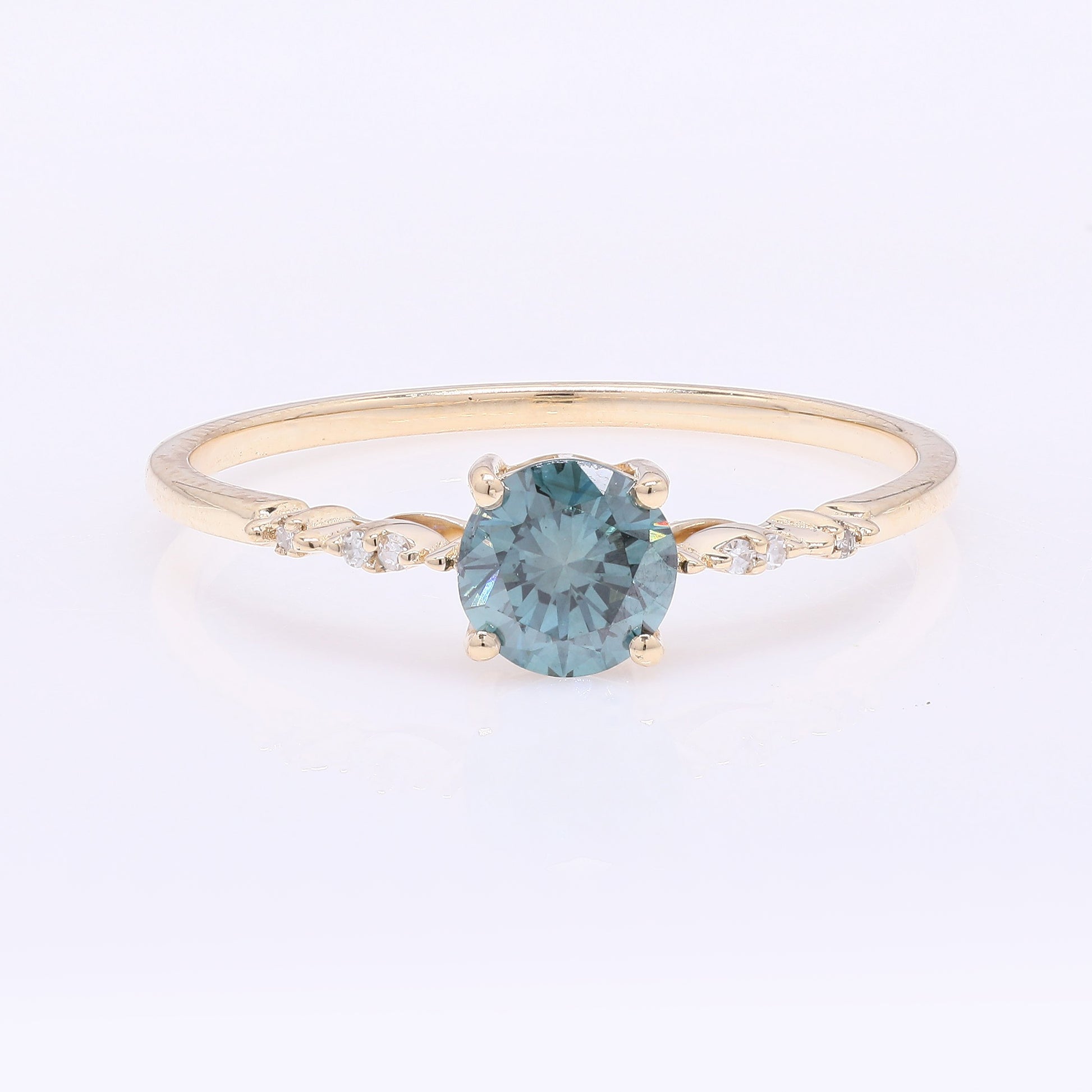 0.52 Ct Round Blue Diamond 14K Gold Ring