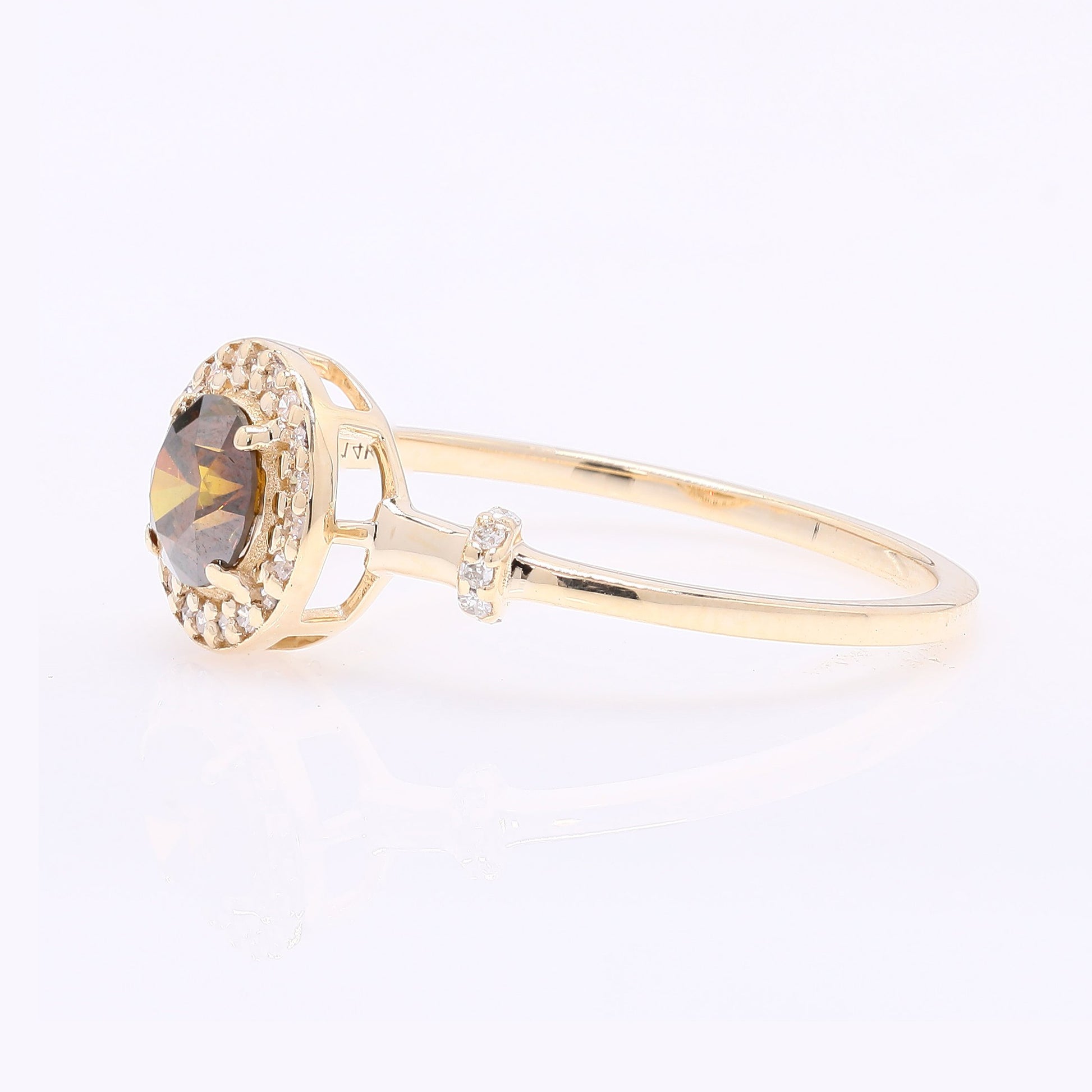 0.53 Ct Round Red Diamond 14K Gold Ring
