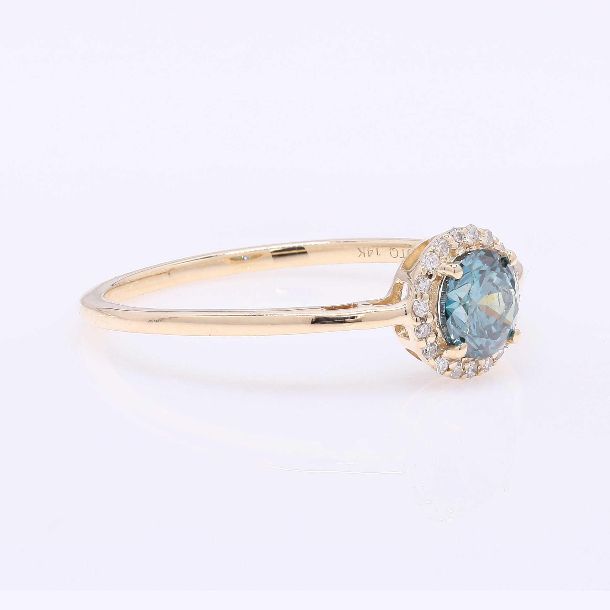 0.54 Ct Round Blue Diamond 14K Gold Ring