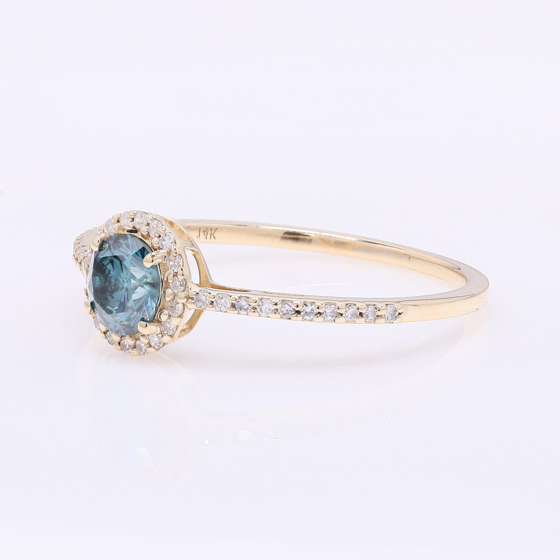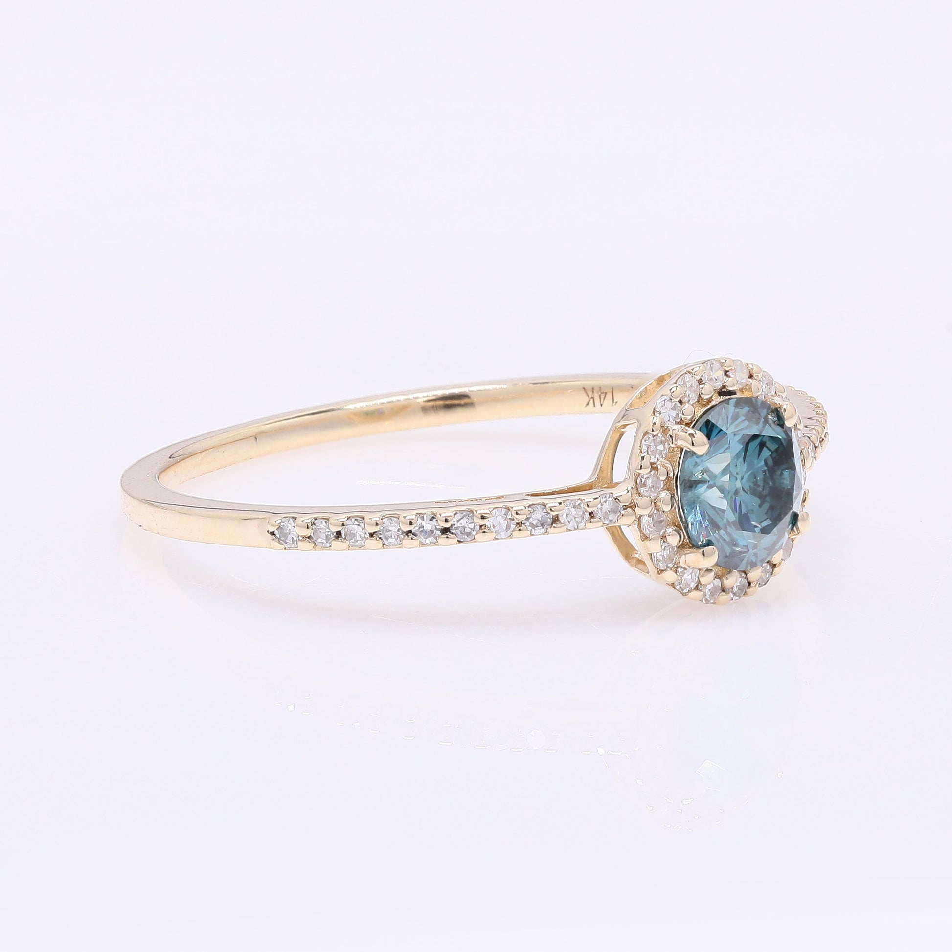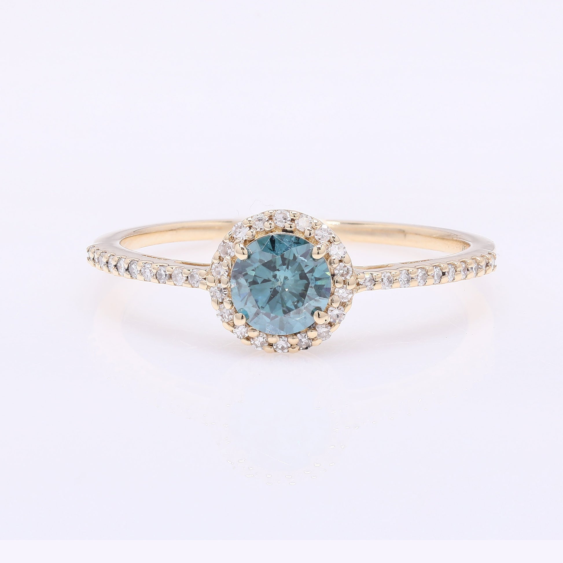 0.58 Ct Round Blue Diamond 14K Gold Ring