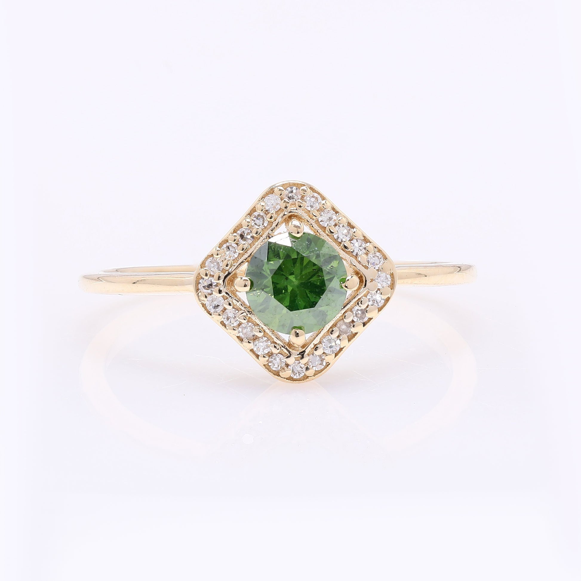 0.59 Ct Round Green Diamond 14K Gold Ring