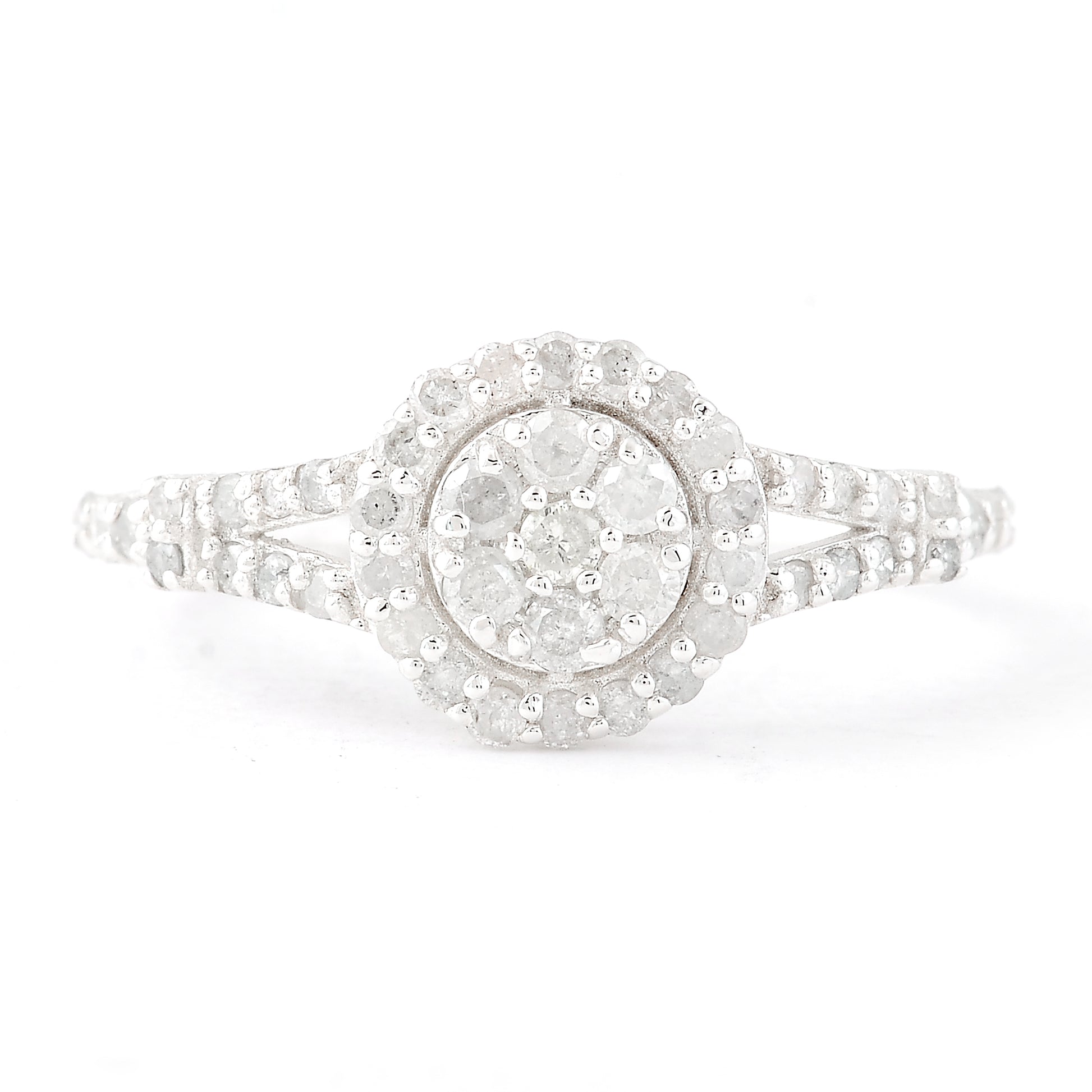 0.64 Ct Round Diamond 925 Sterling Silver Ring