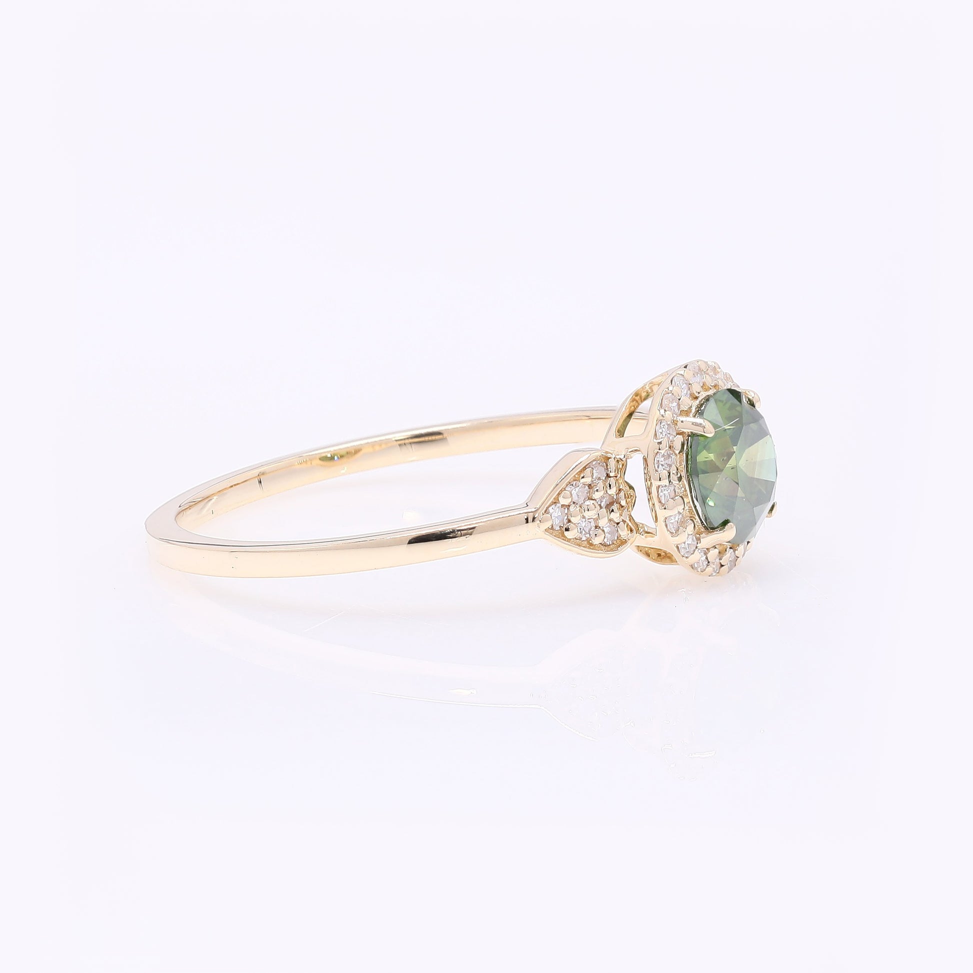 0.66 Ct Round Green Diamond 14K Gold Ring