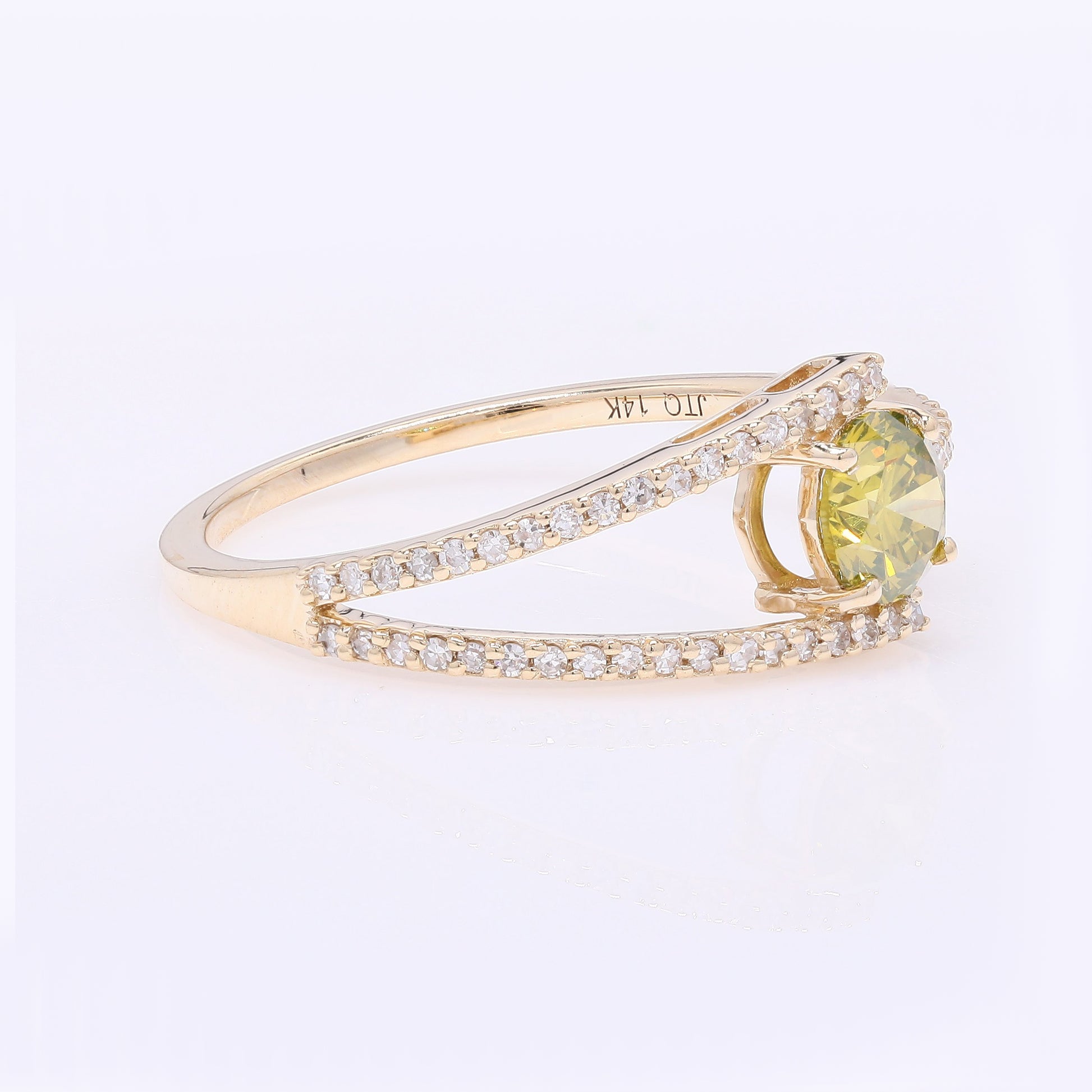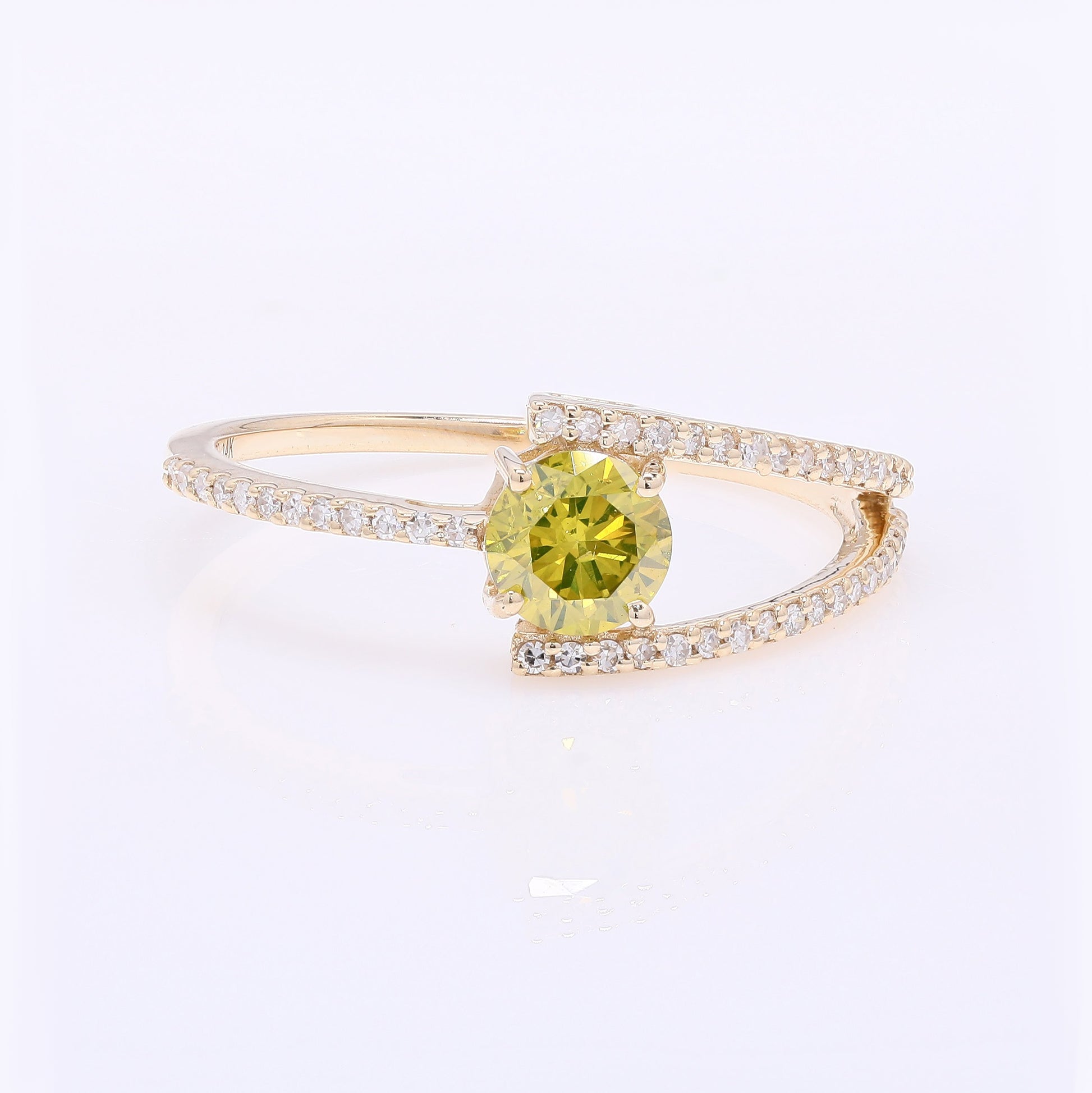 0.66 Ct Round Yellow Diamond 14K Gold Ring