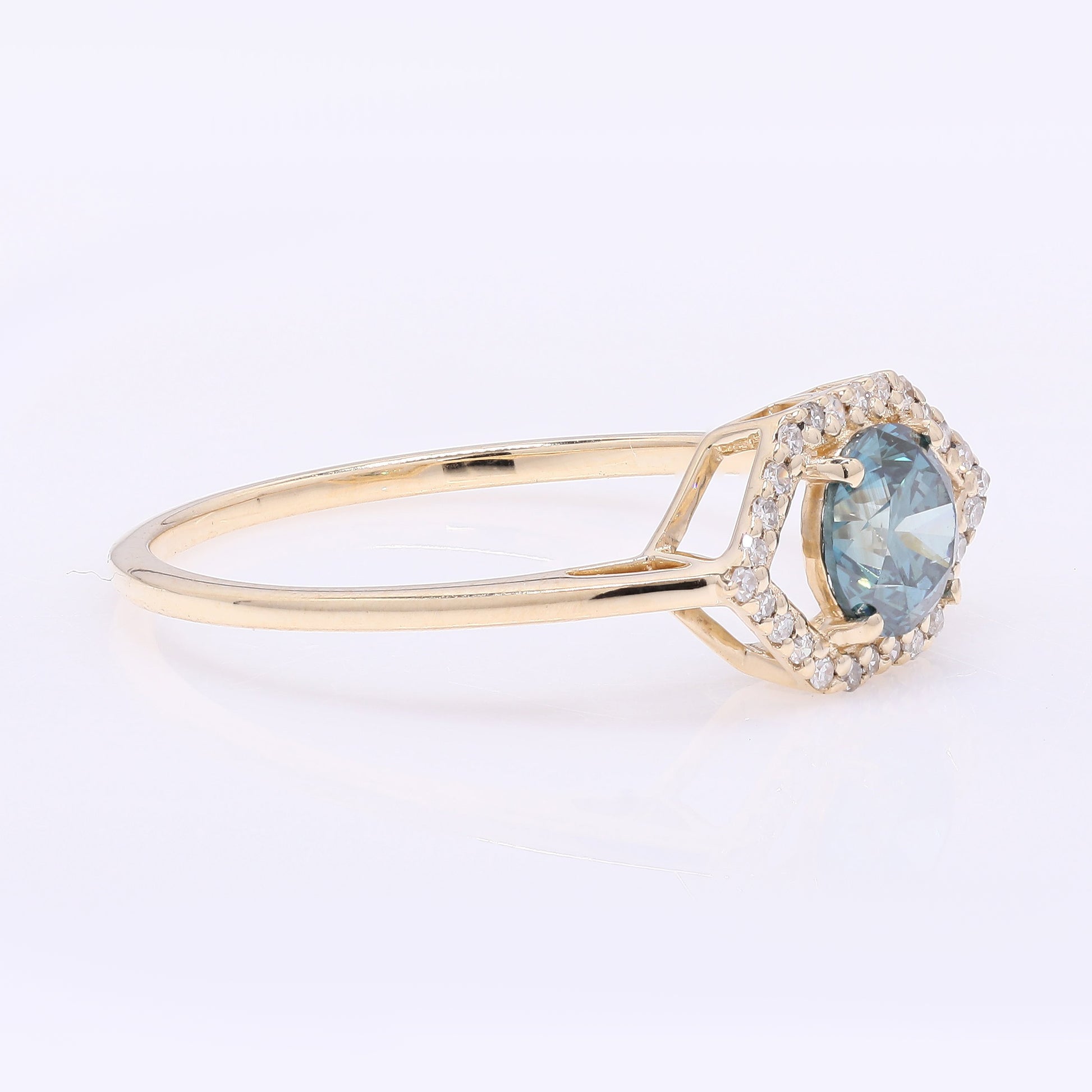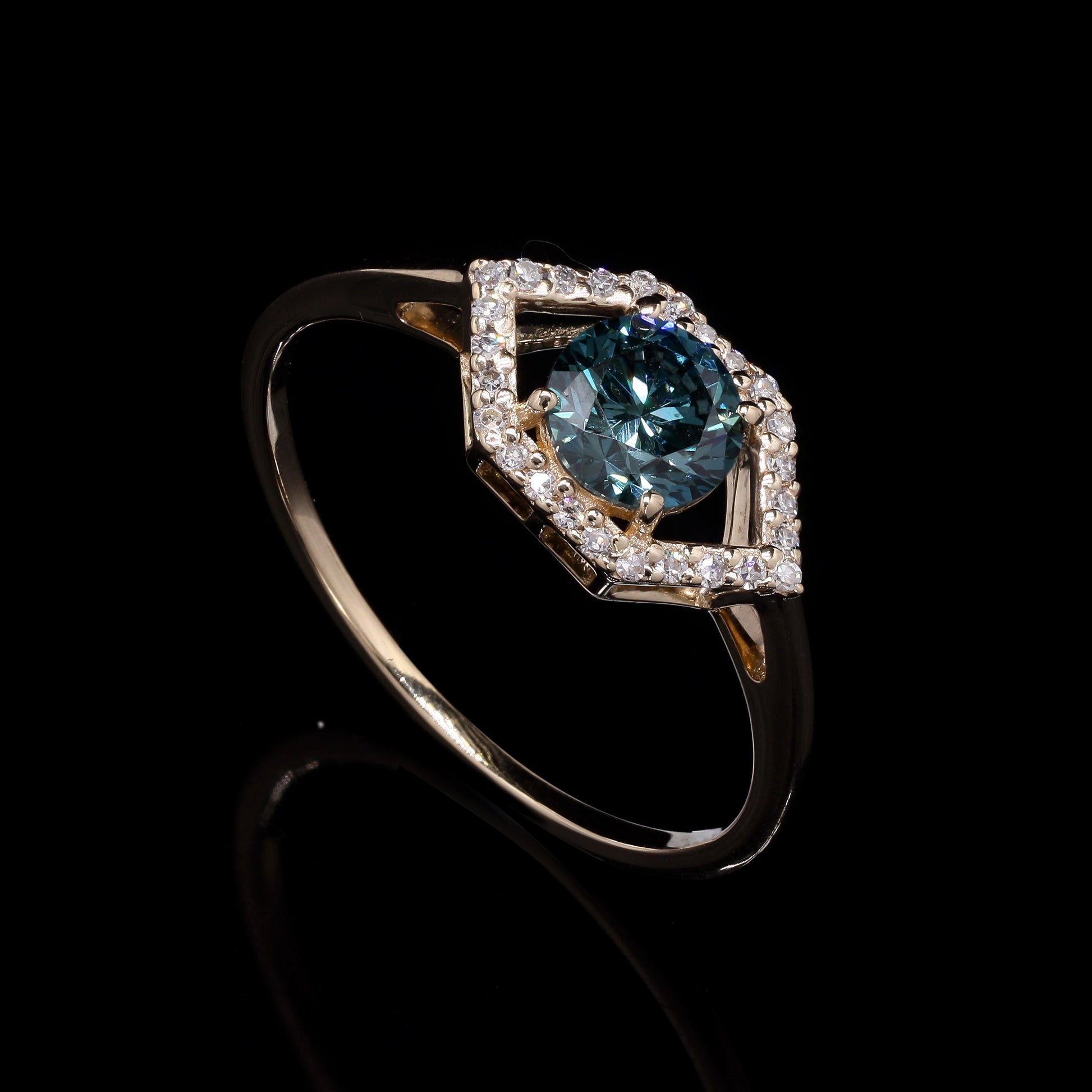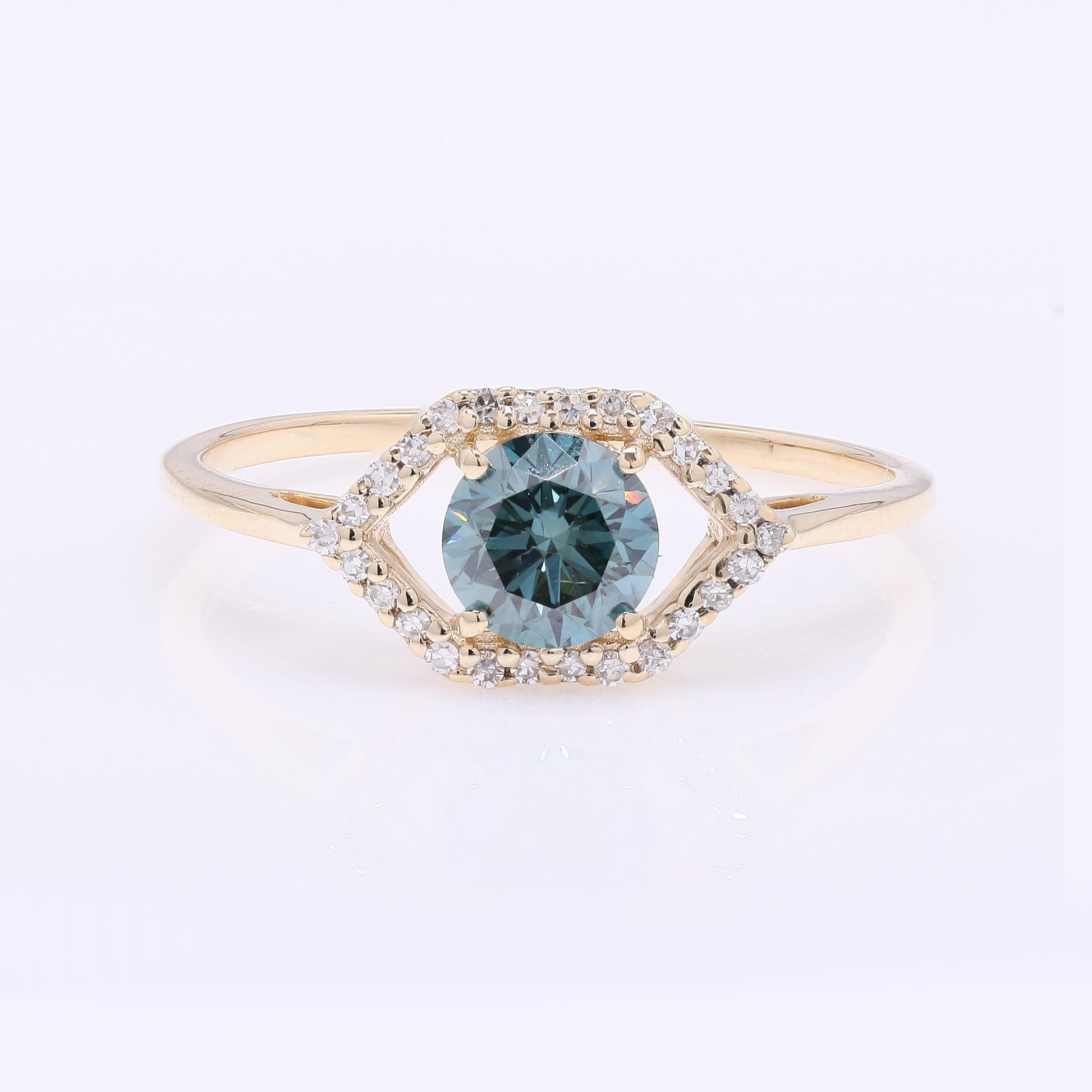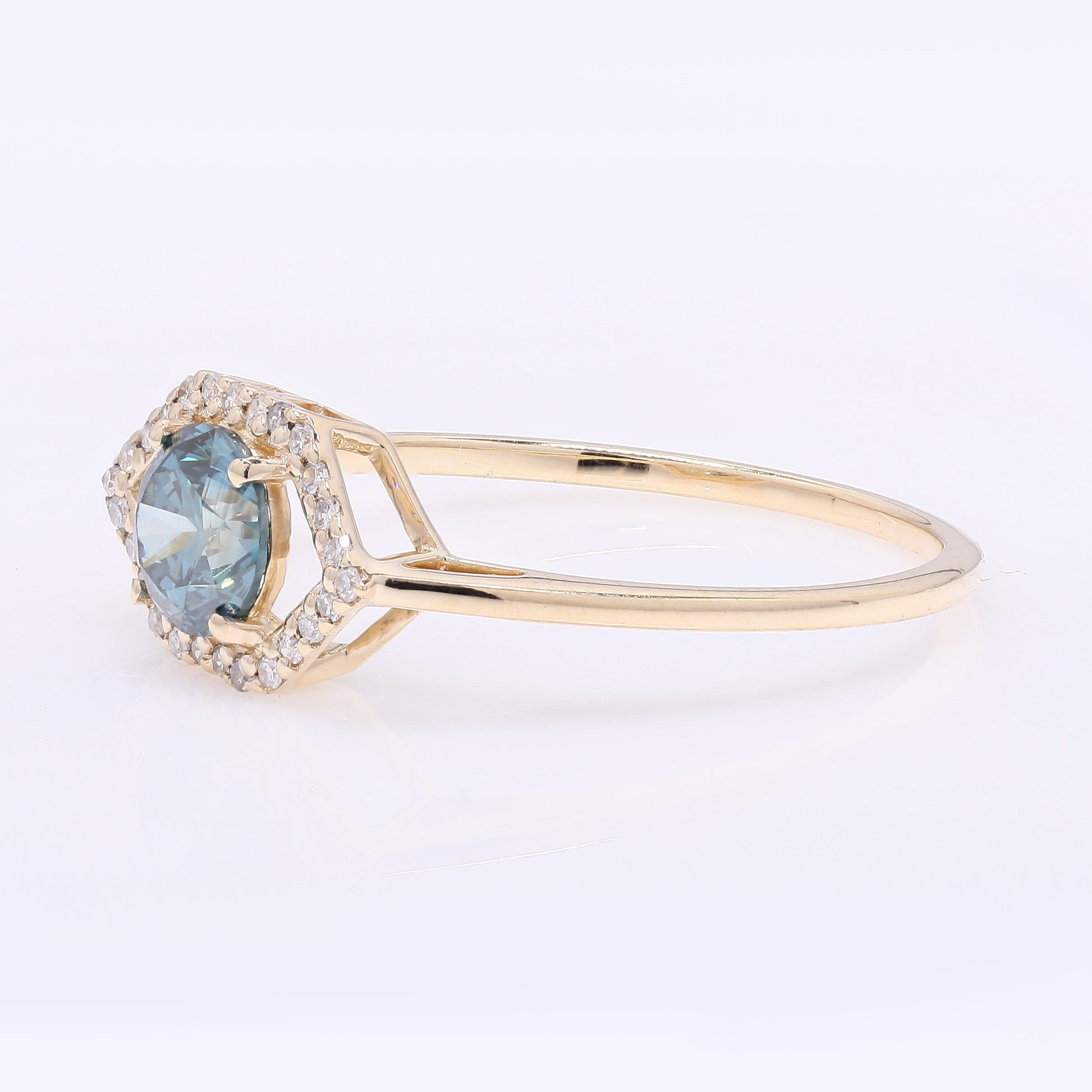 0.67 Ct Round Blue Diamond 14K Gold Ring
