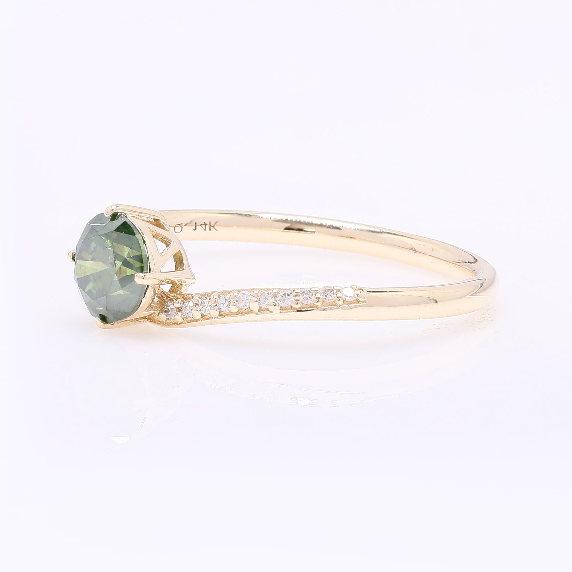 0.70 Ct Round Green Diamond 14K Gold Ring