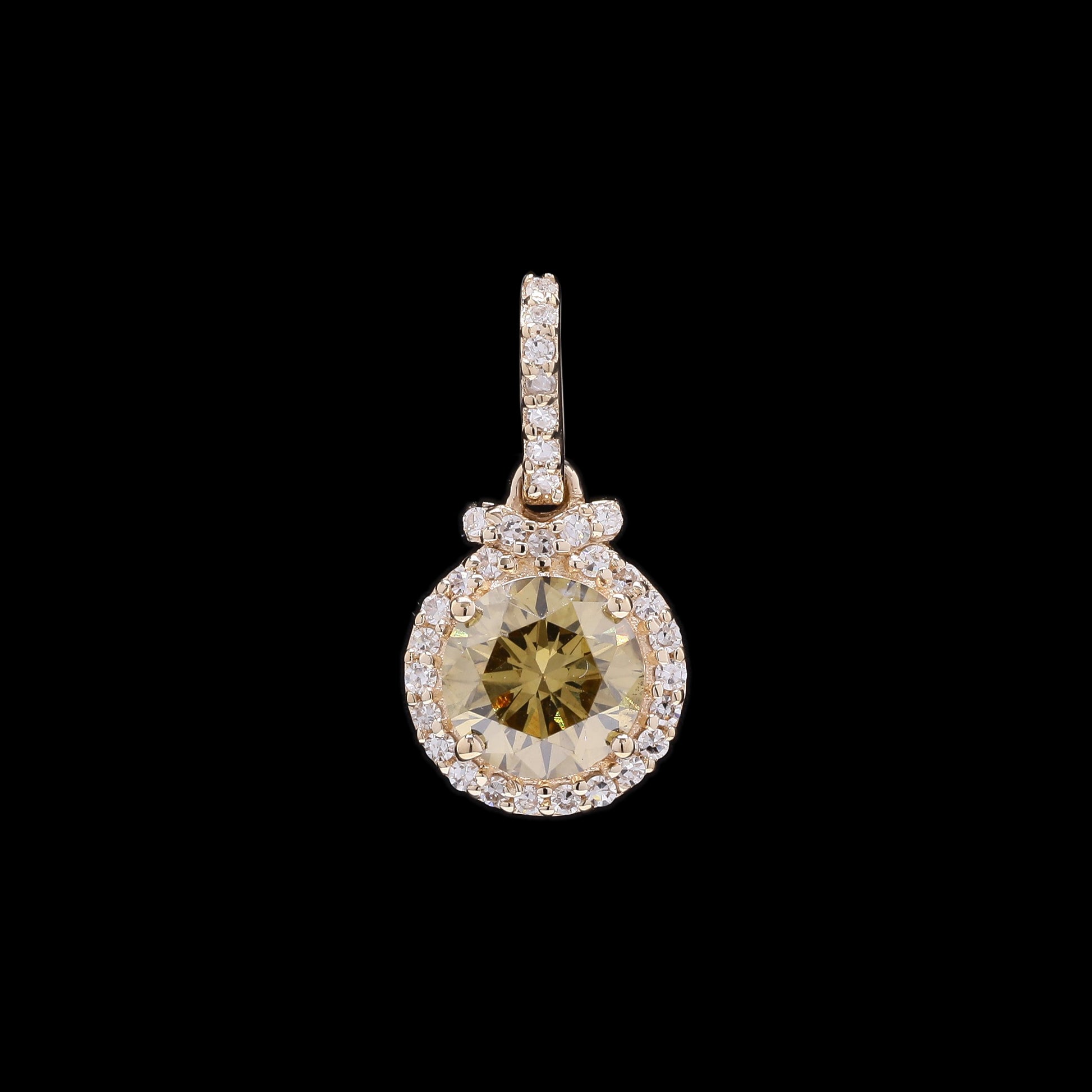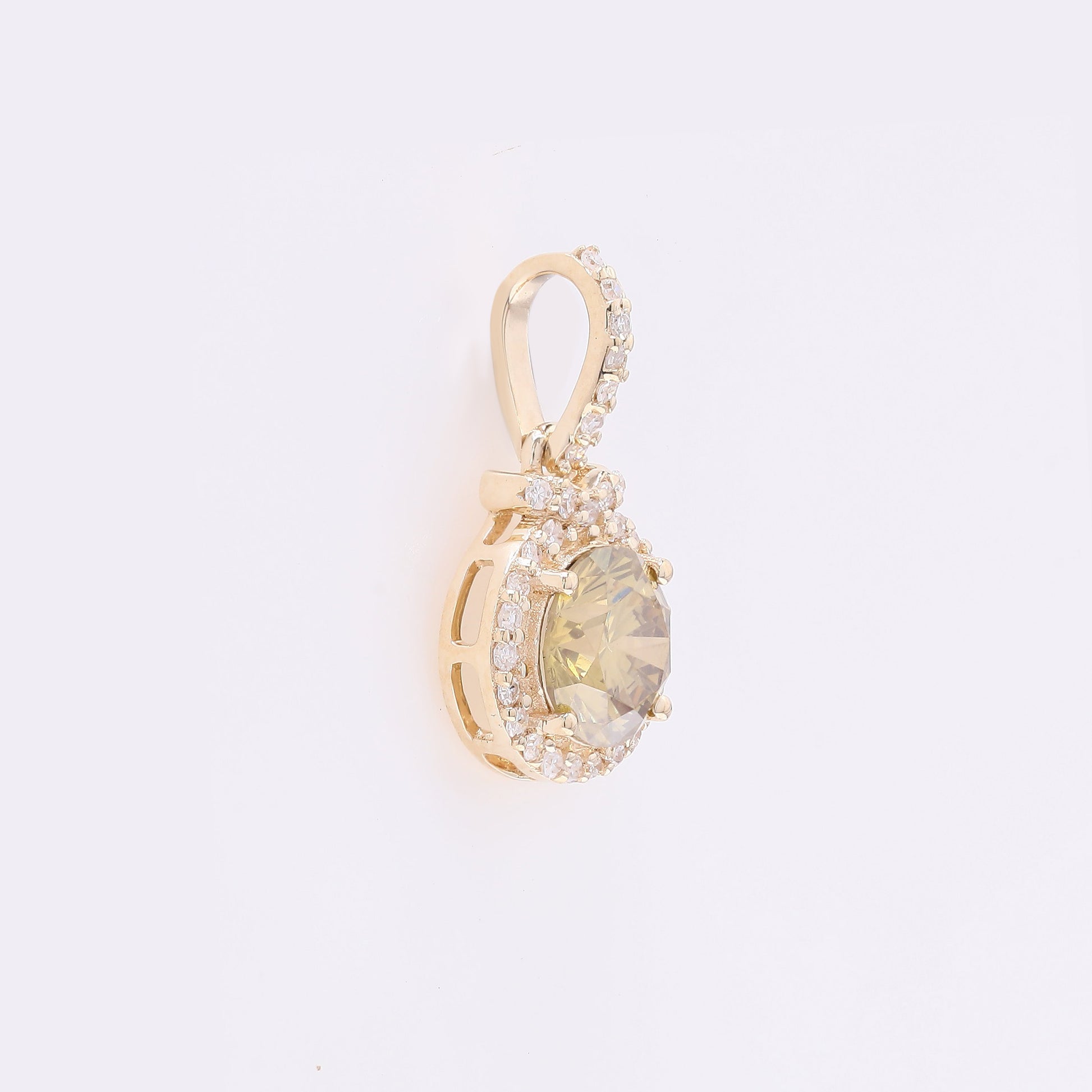 0.79 Ct Round Yellow Diamond 14K Gold Pendant