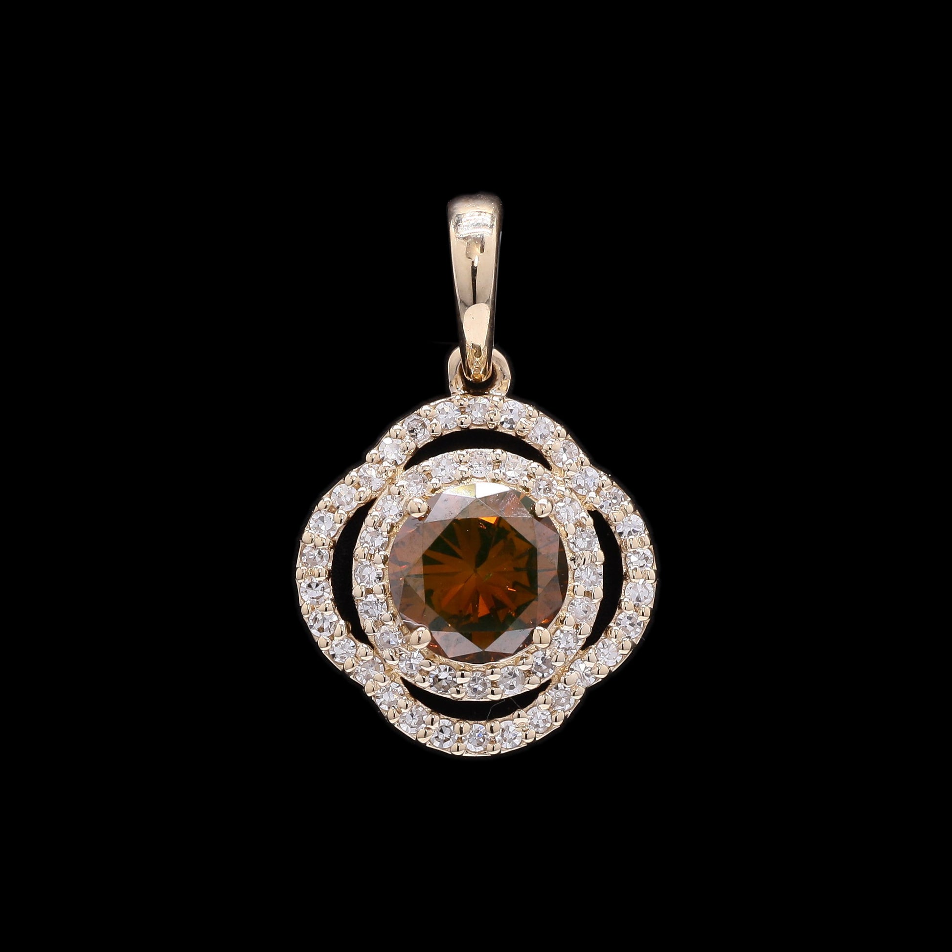 0.80 Ct Round Red Diamond 14K Gold Pendant