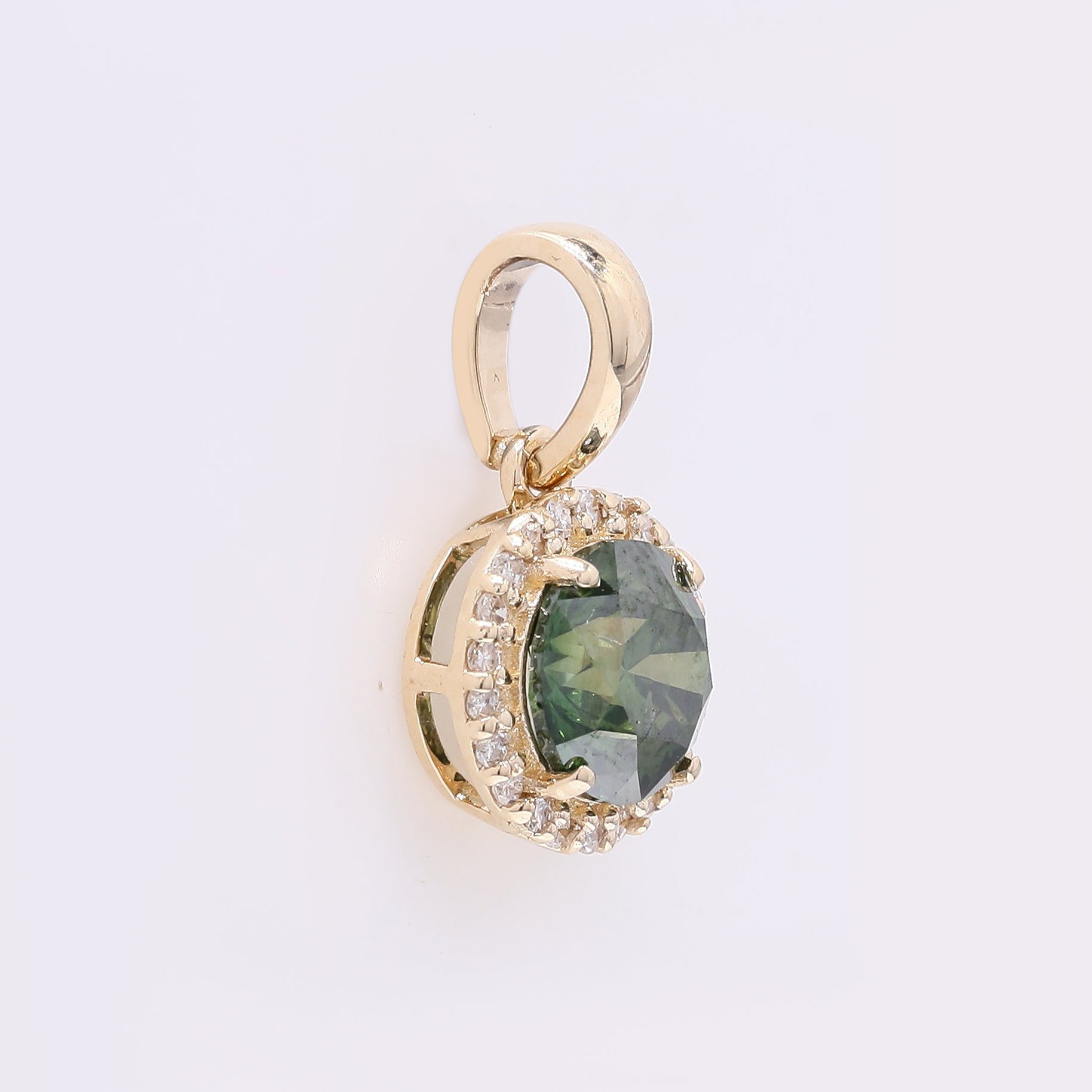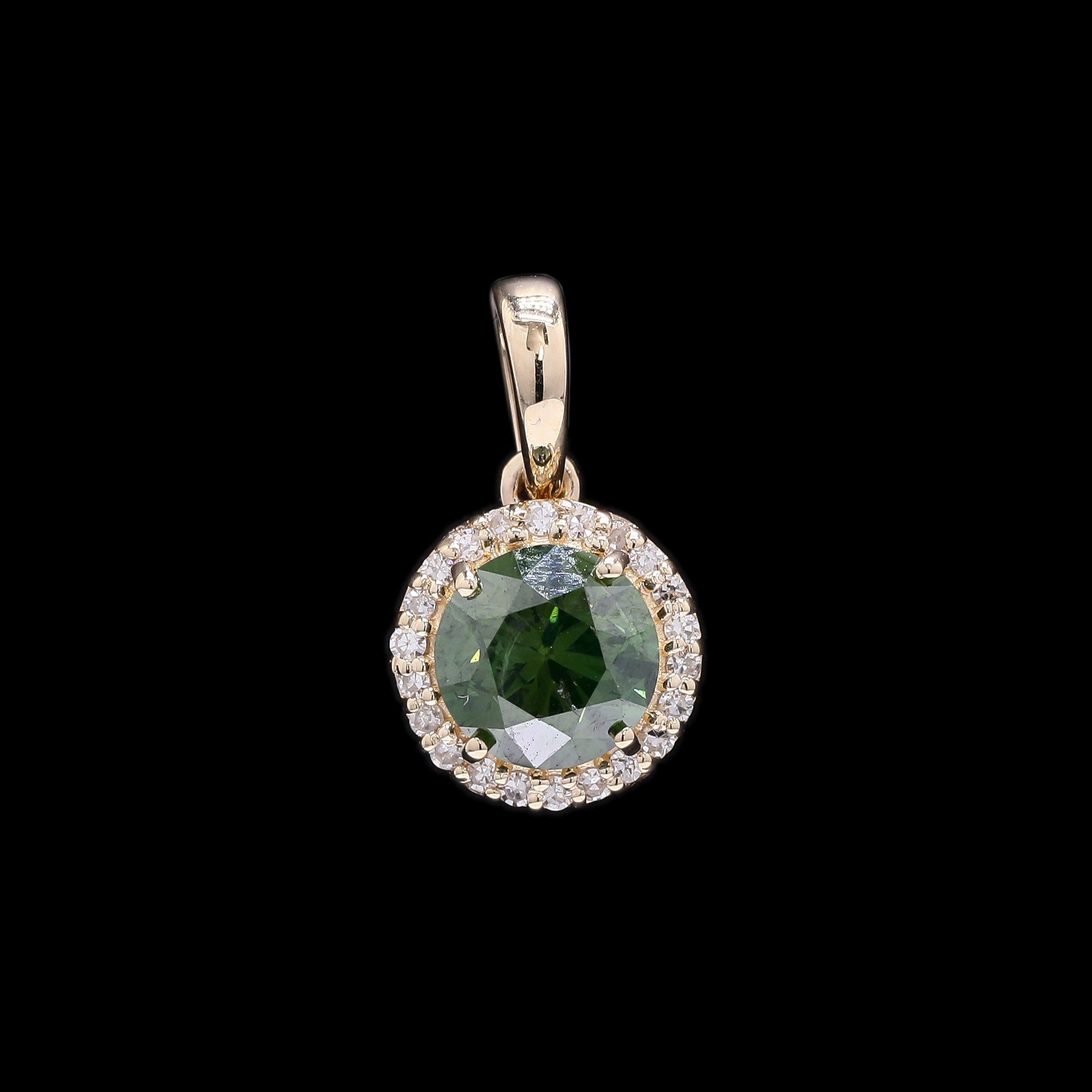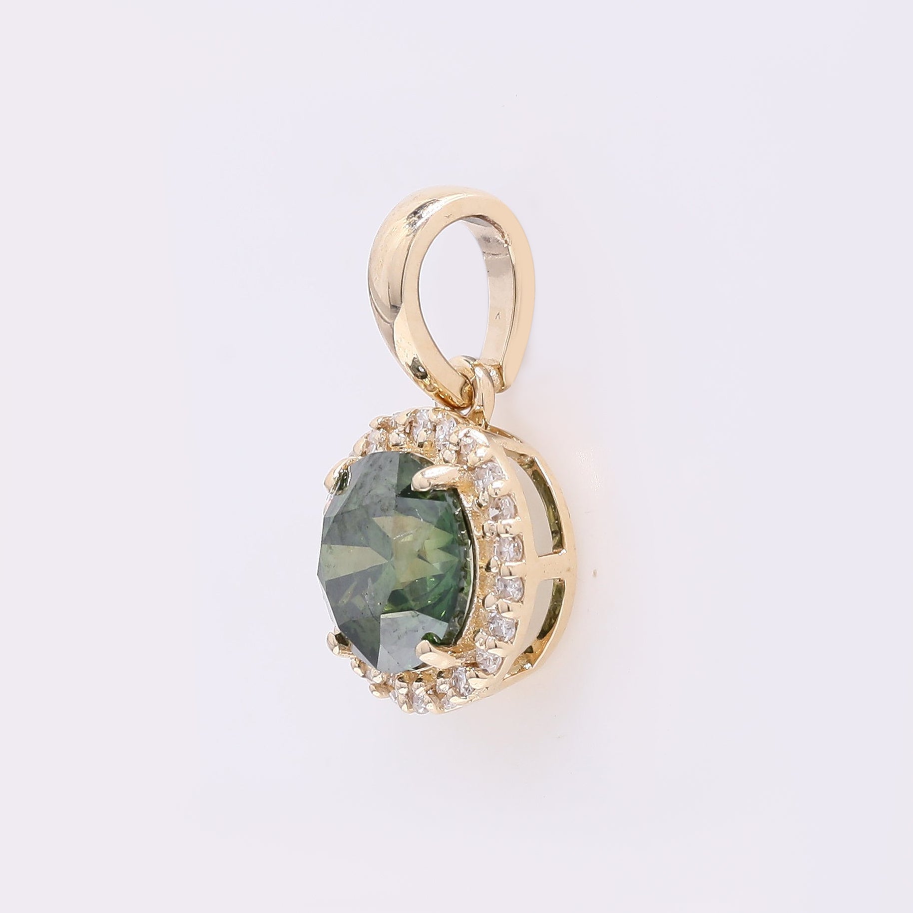 0.85 Ct Round Green Diamond 14K Gold Pendant
