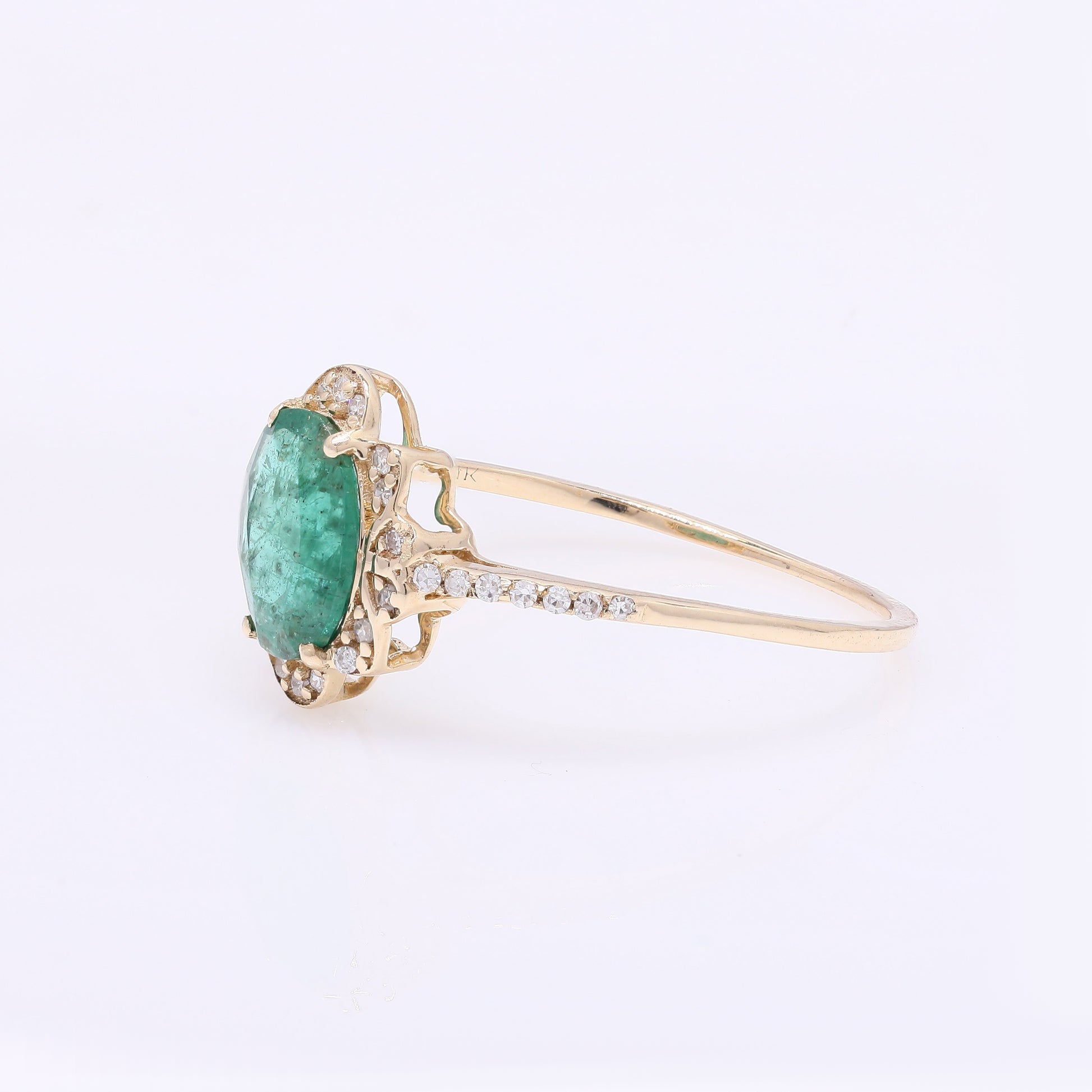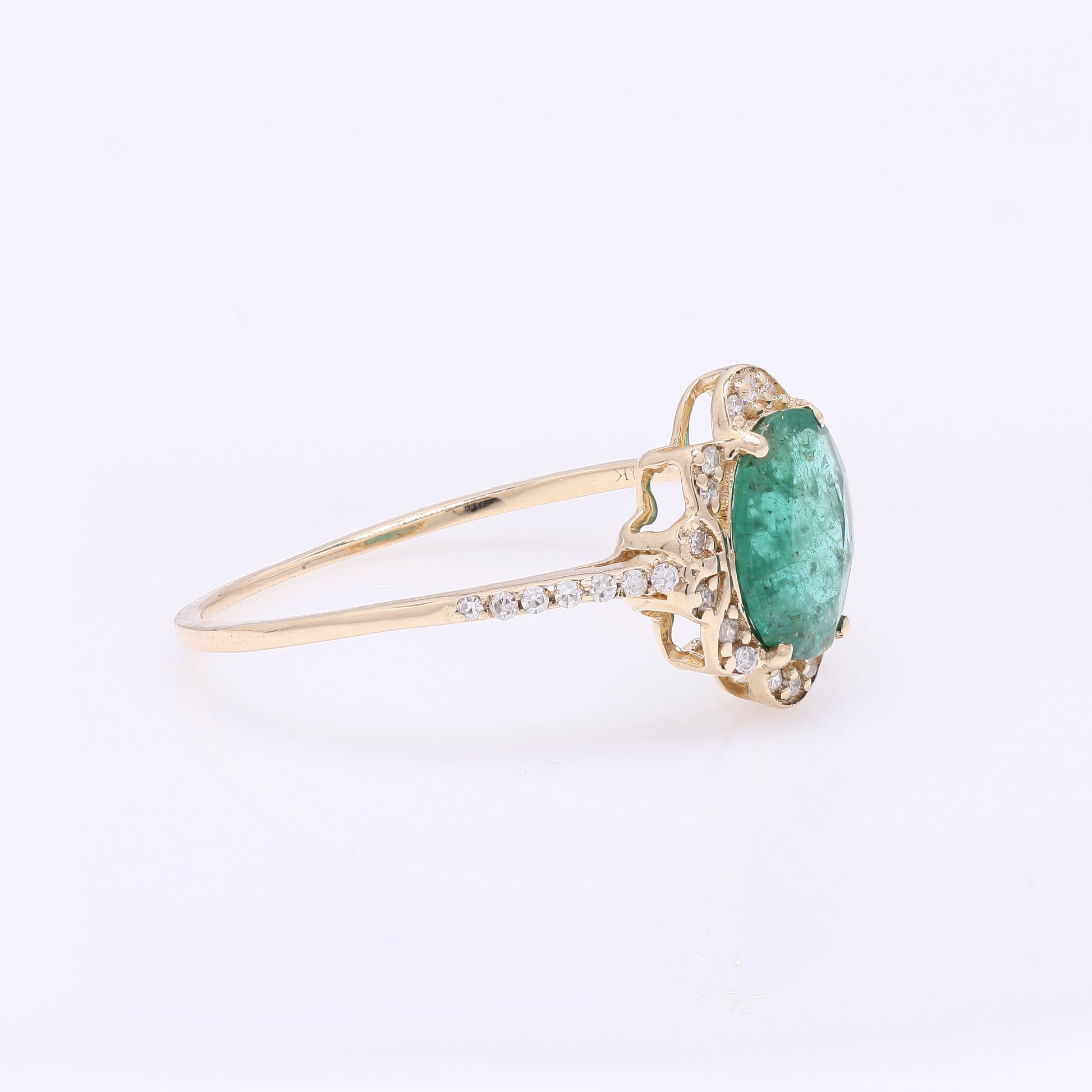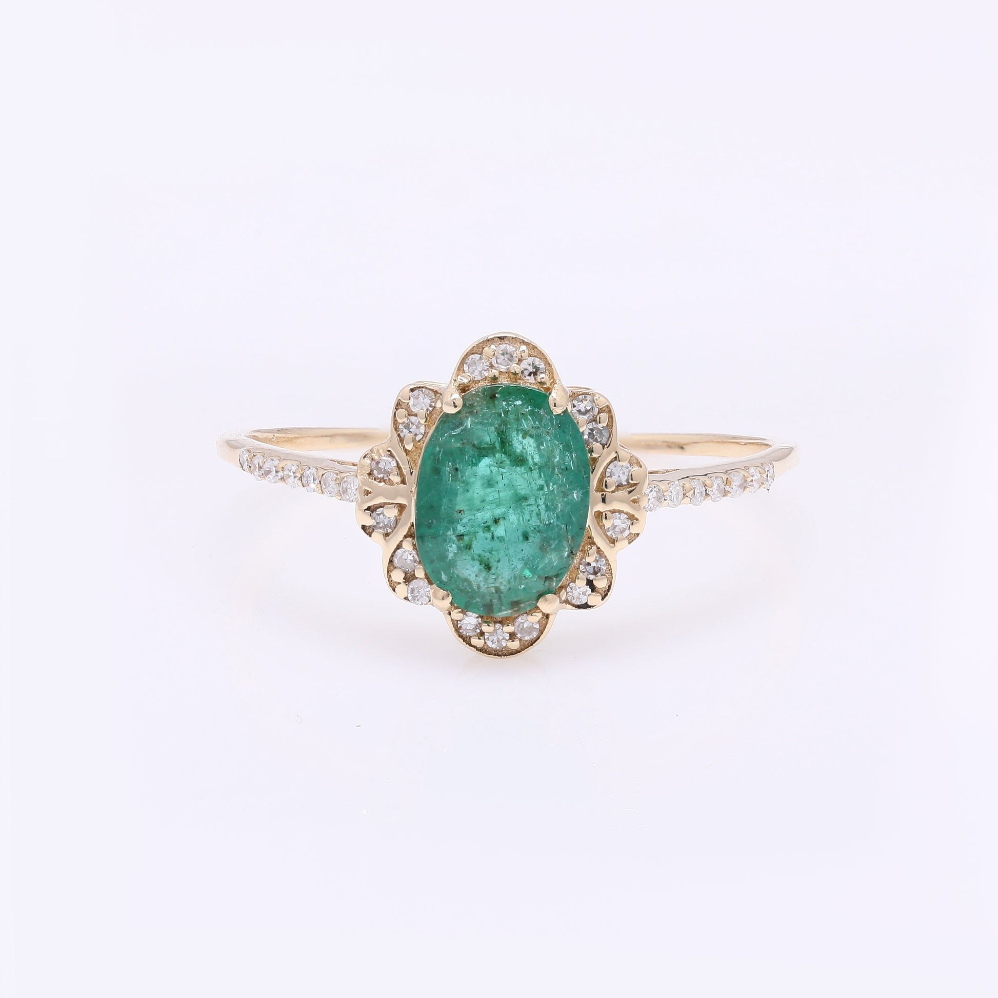 0.95 Ct Oval Mixed Cut Natural Beryl Emerald 14K Gold Ring