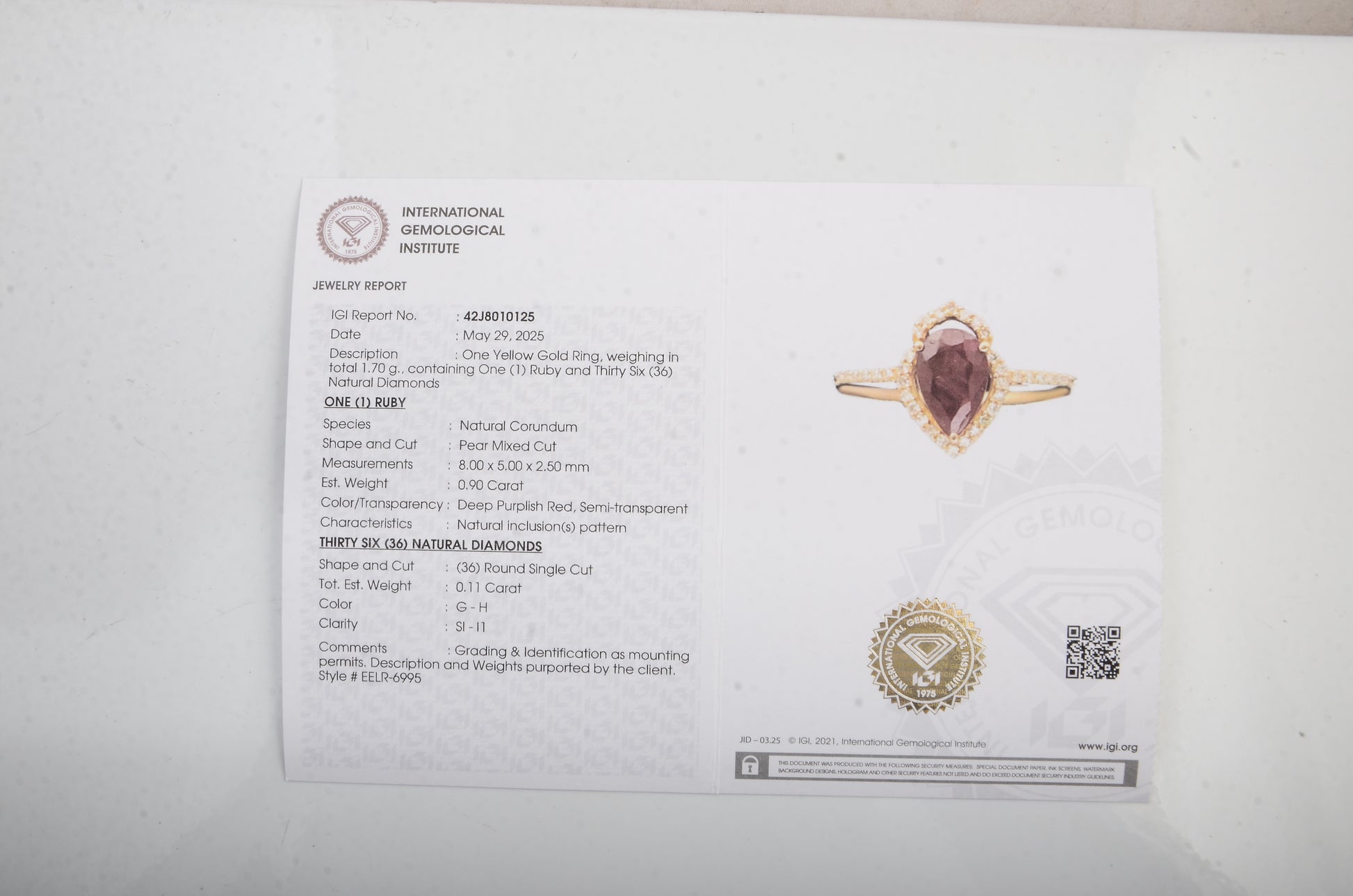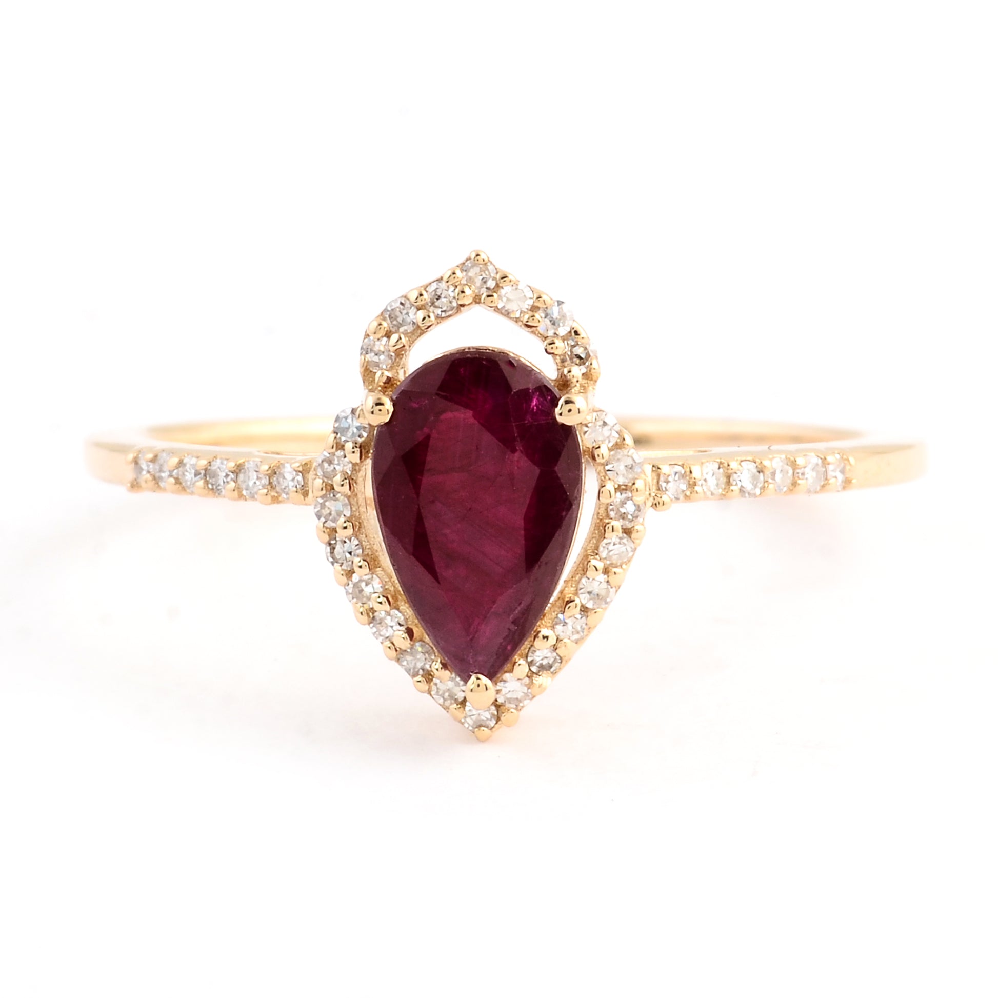 1.01 Ct Pear Mixed Cut Natural Corundum Ruby 14K Gold Ring
