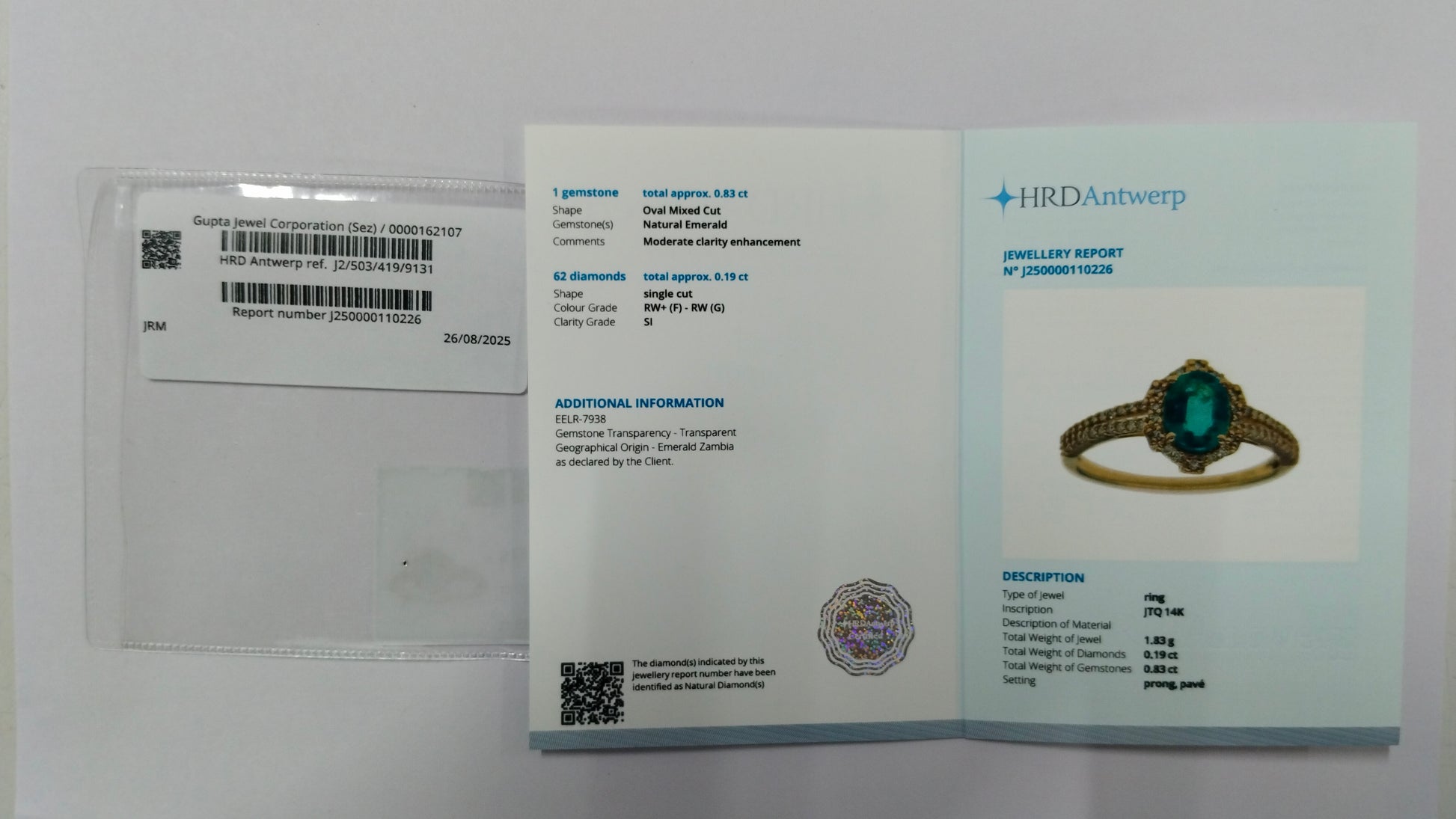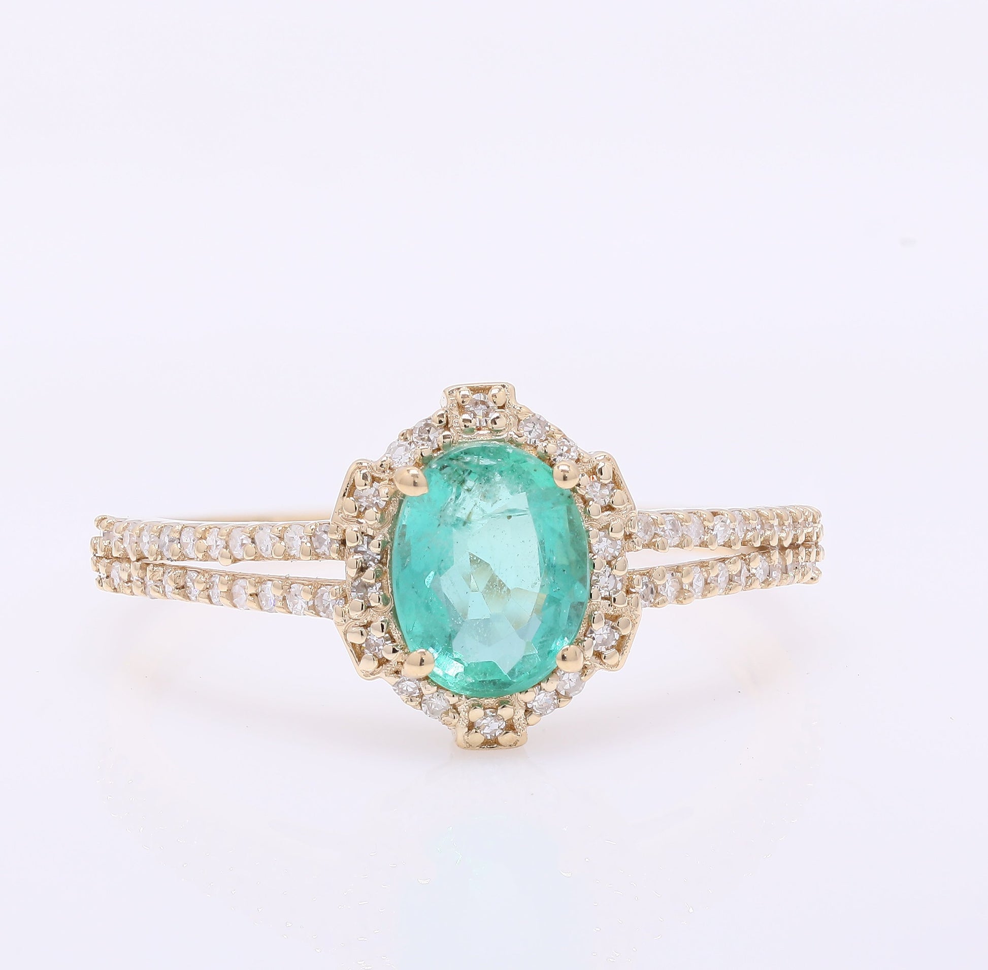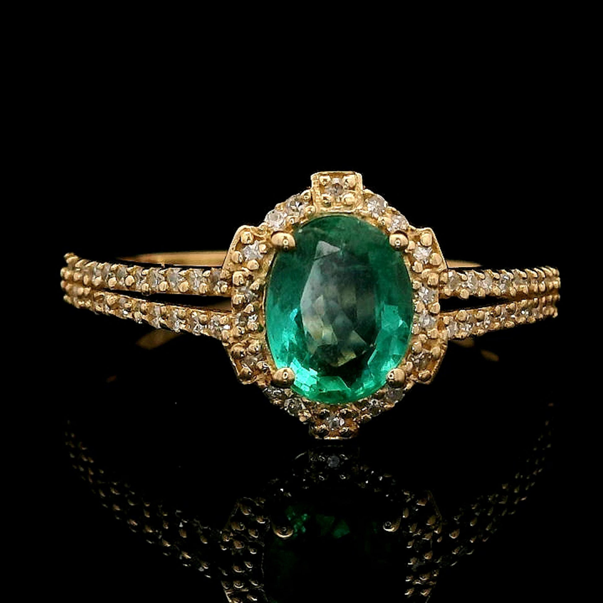 1.02 Ct Oval Mixed Cut Natural Emerald 14K Gold Ring