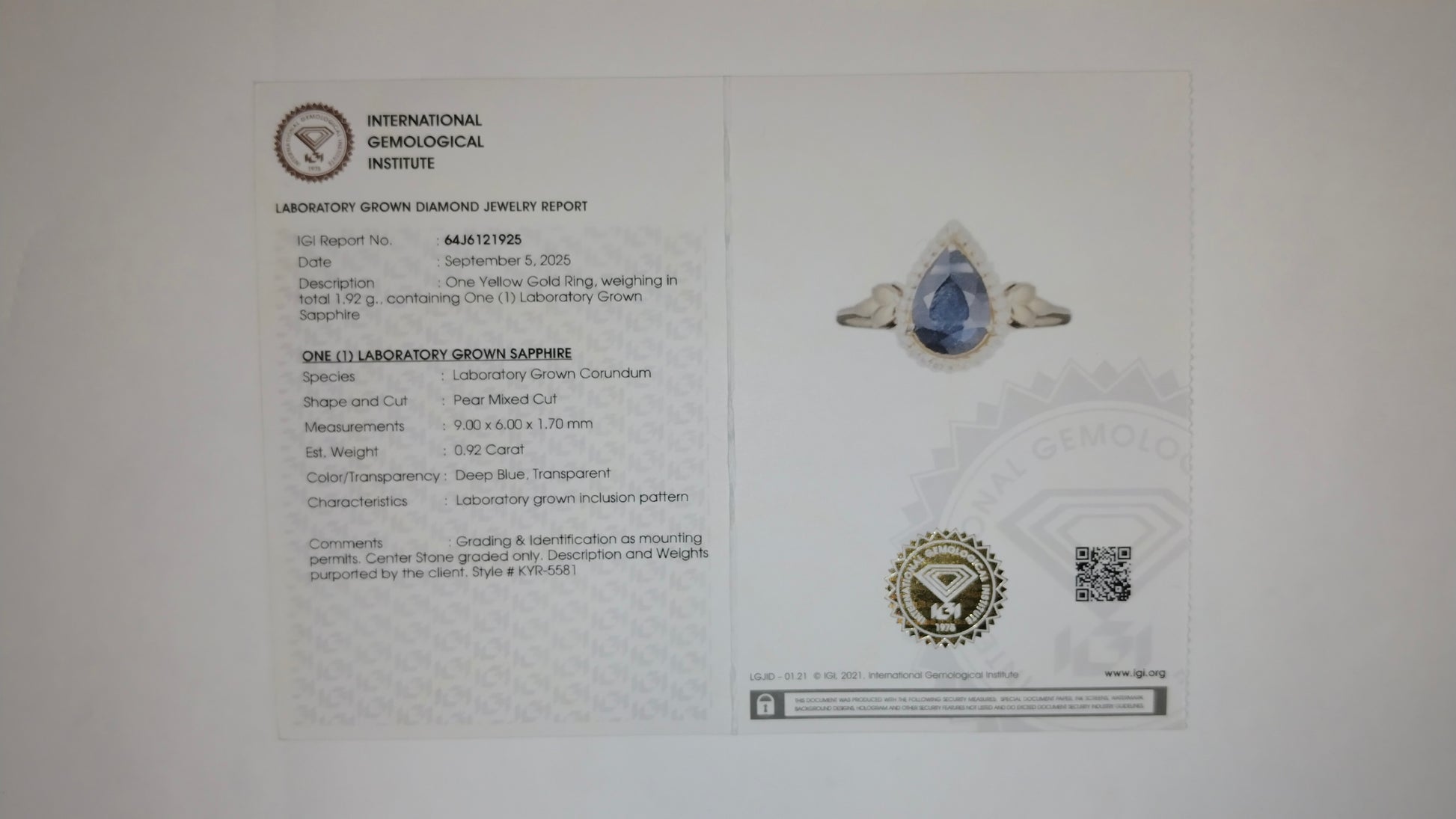 1.02 Ct Pear Mixed Cut Lab Grown Sapphire 14K Gold Ring