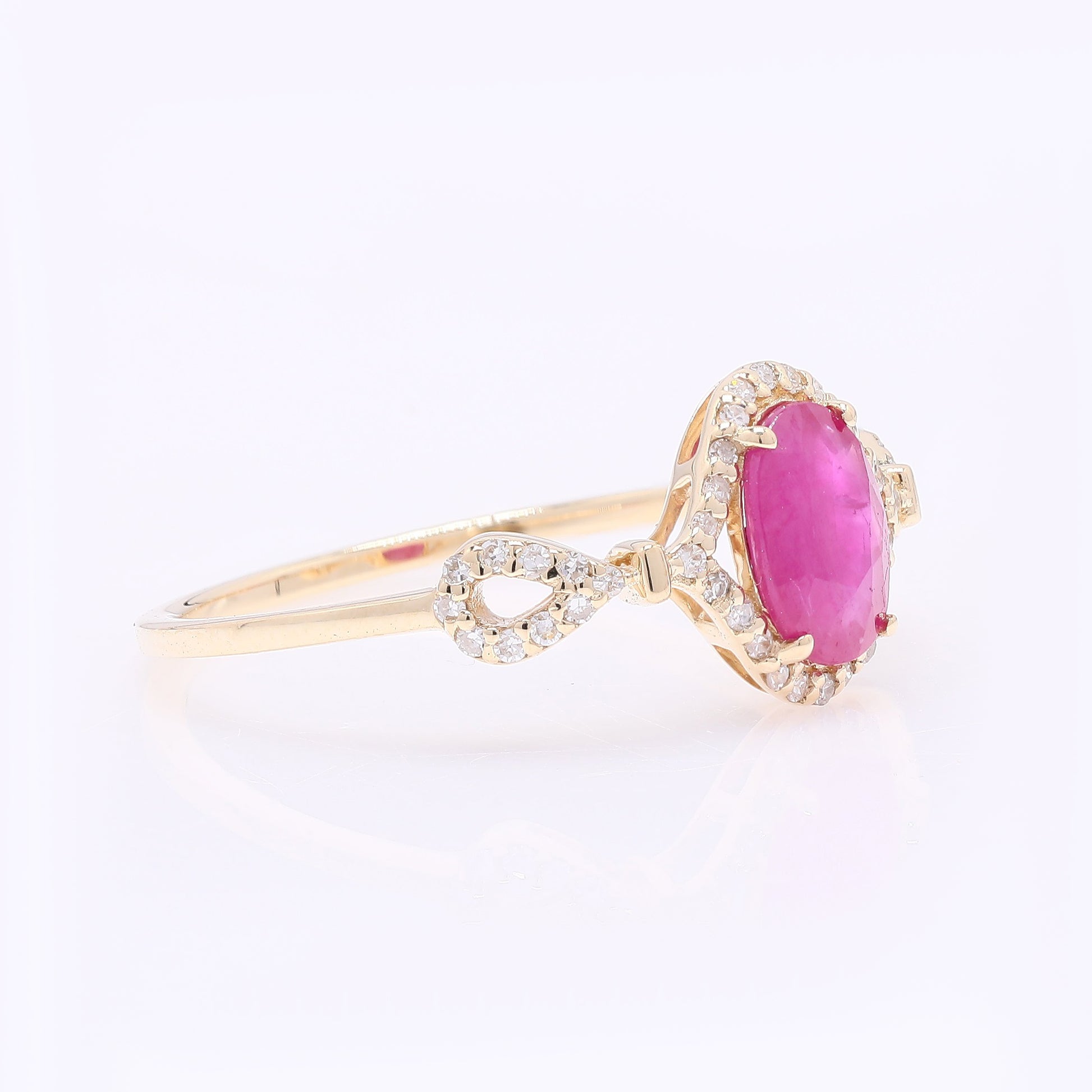 1.03 Ct Oval Mixed Cut Natural Ruby 14K Gold Ring