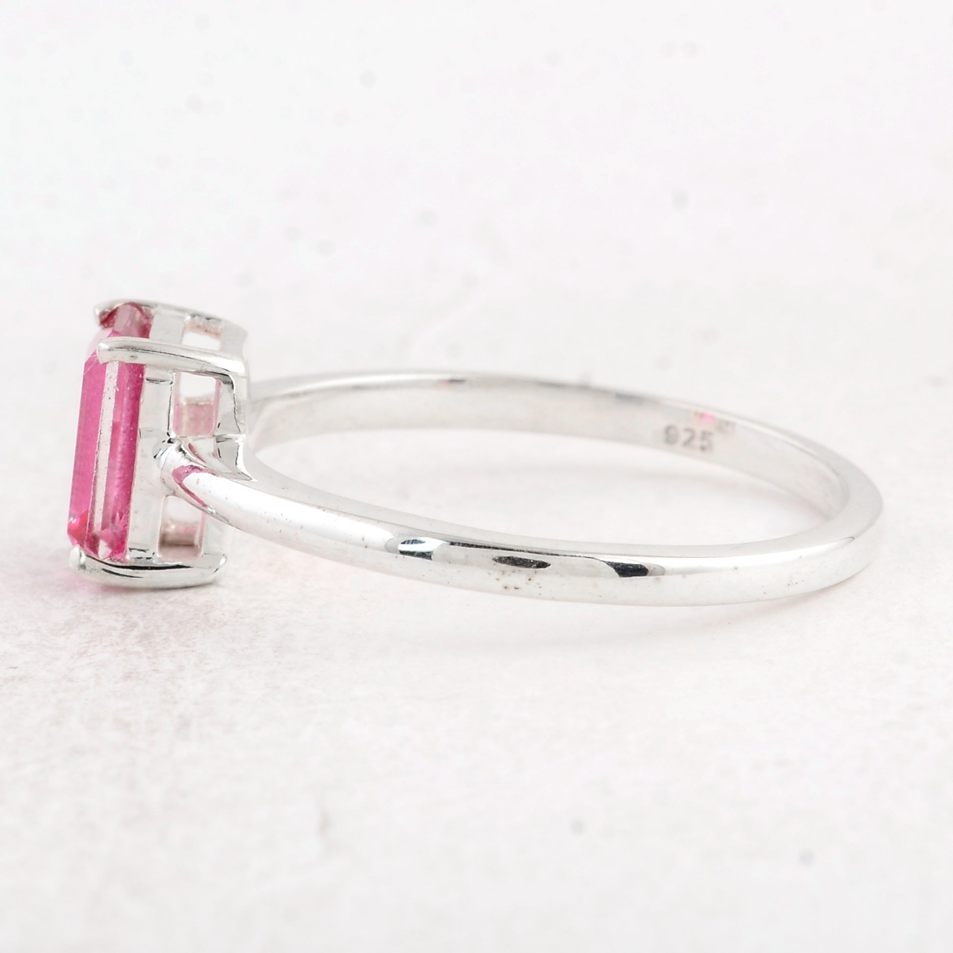 1.10 Ct Octagon Pink Topaz 925 Sterling Silver Ring