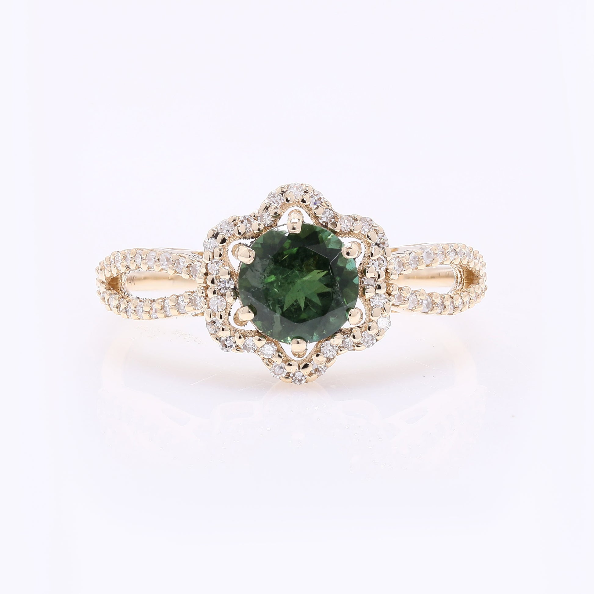 1.12 Ct Round Natural Tourmaline 14K Gold Ring