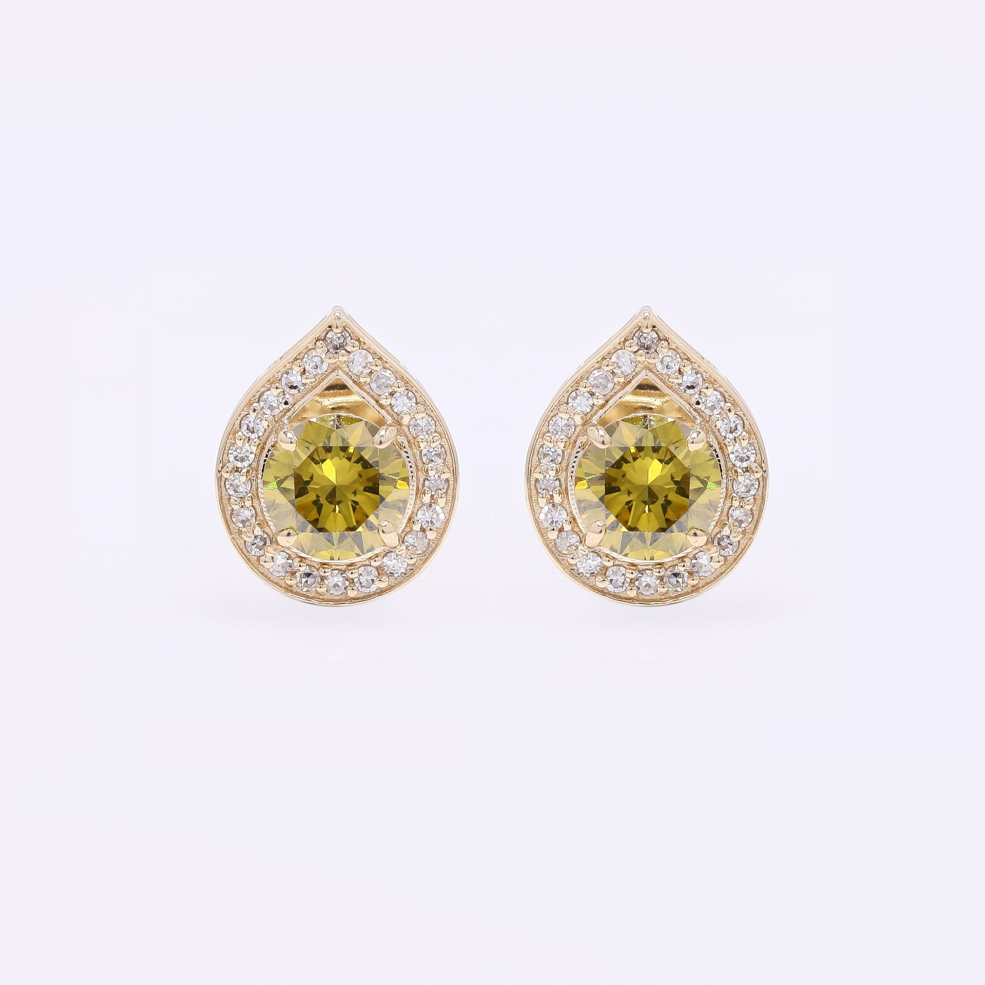 1.12 Ct Round Yellow Diamond 14K Gold Earrings