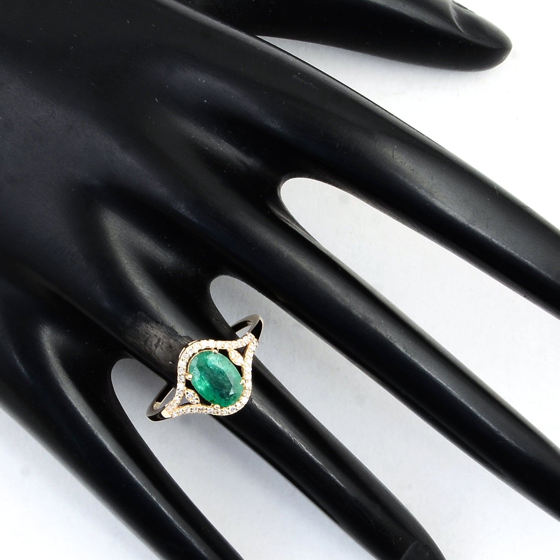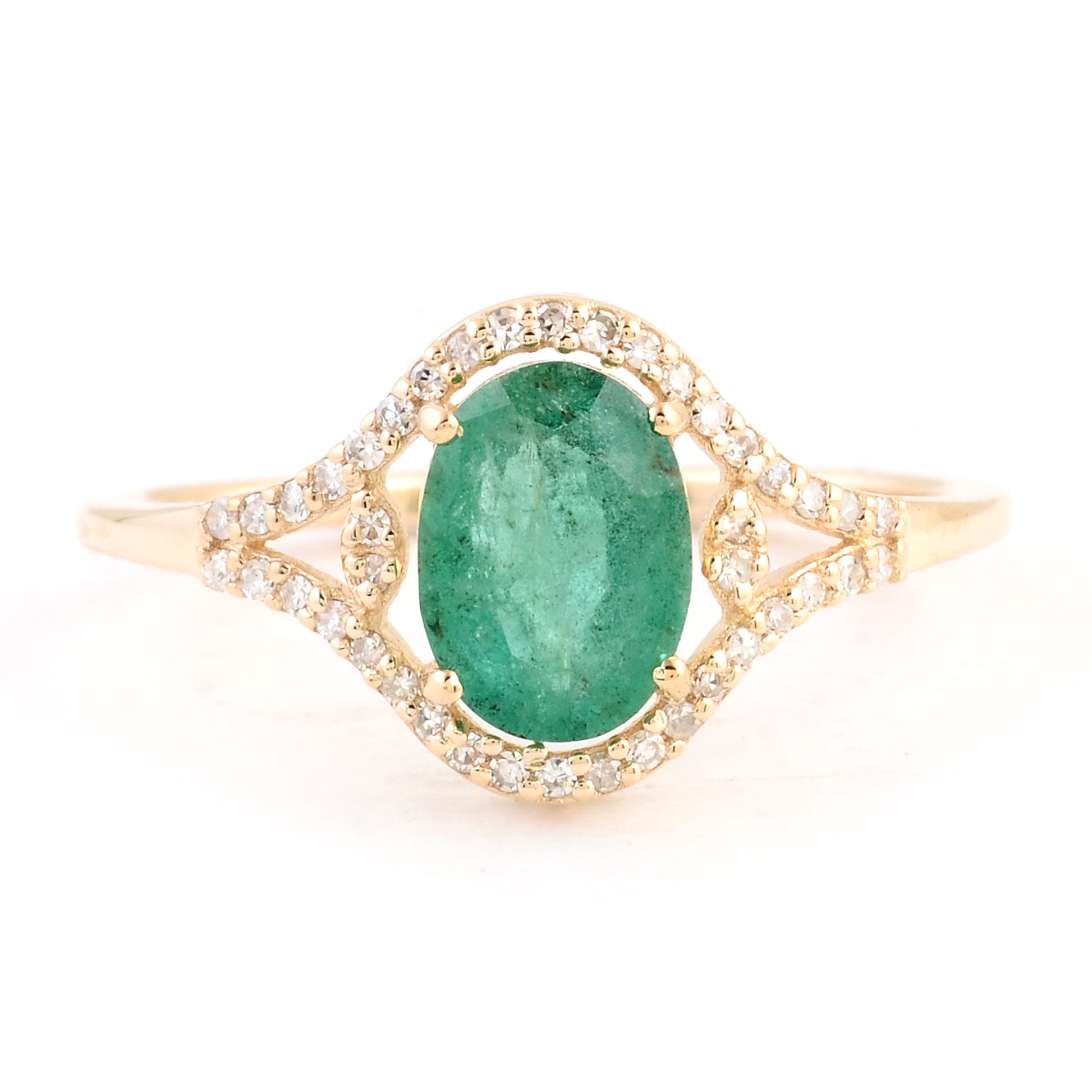 1.15 Ct Oval Mixed Cut Natural Beryl Emerald 14K Gold Ring