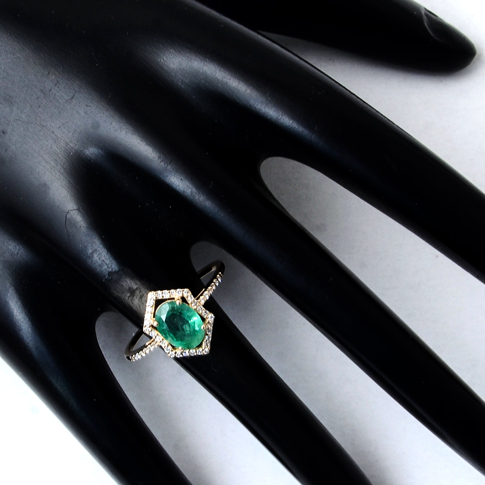 1.18 Ct Oval Mixed Cut Natural Beryl Emerald 14K Gold Ring