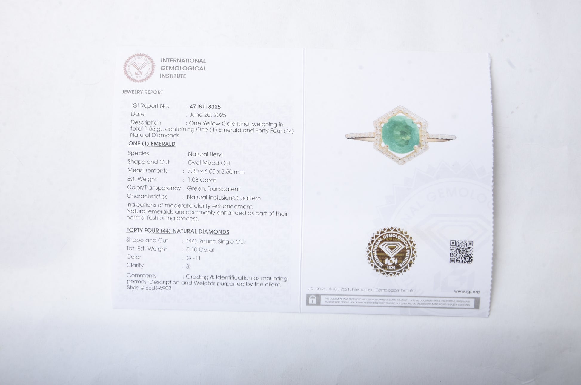 - Lab Name: International Gemological Institute (IGI)