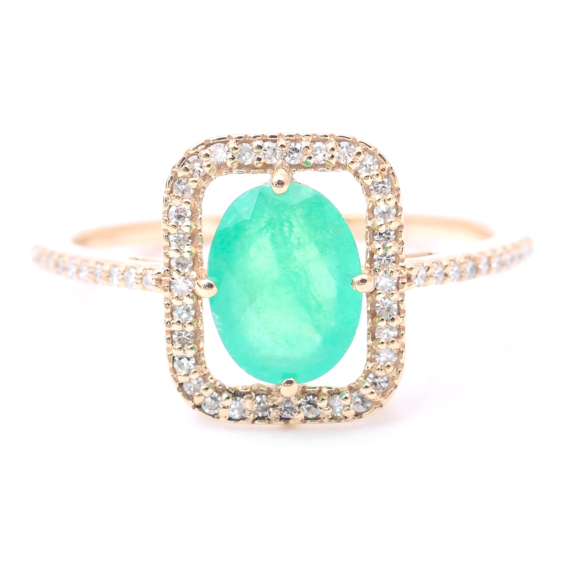 1.19 Ct Oval Mixed Cut Natural Emerald 14K Gold Ring