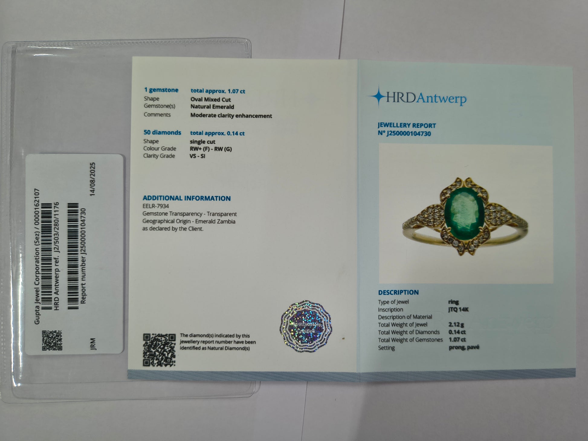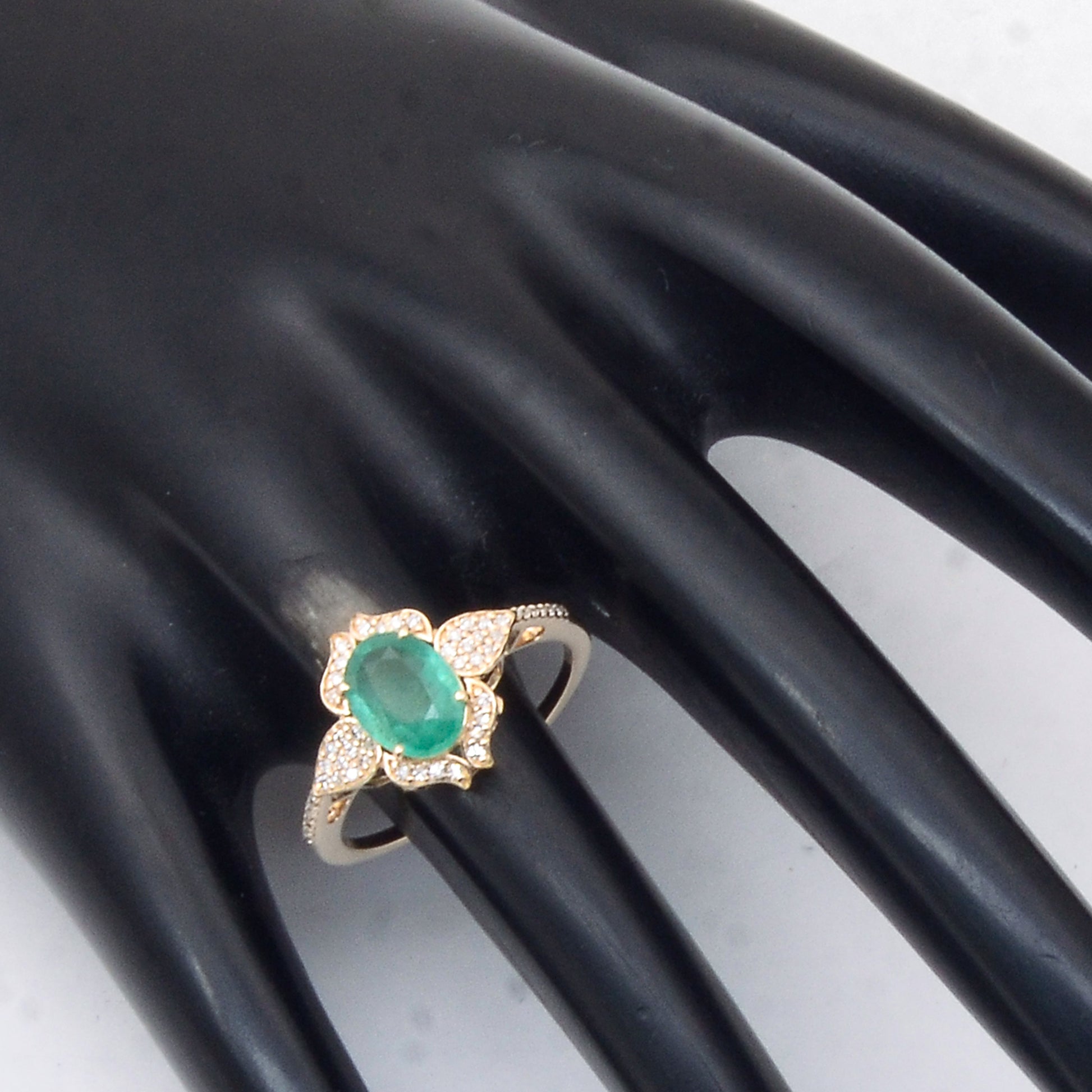 1.21 Ct Oval Mixed Cut Natural Emerald 14K Gold Ring
