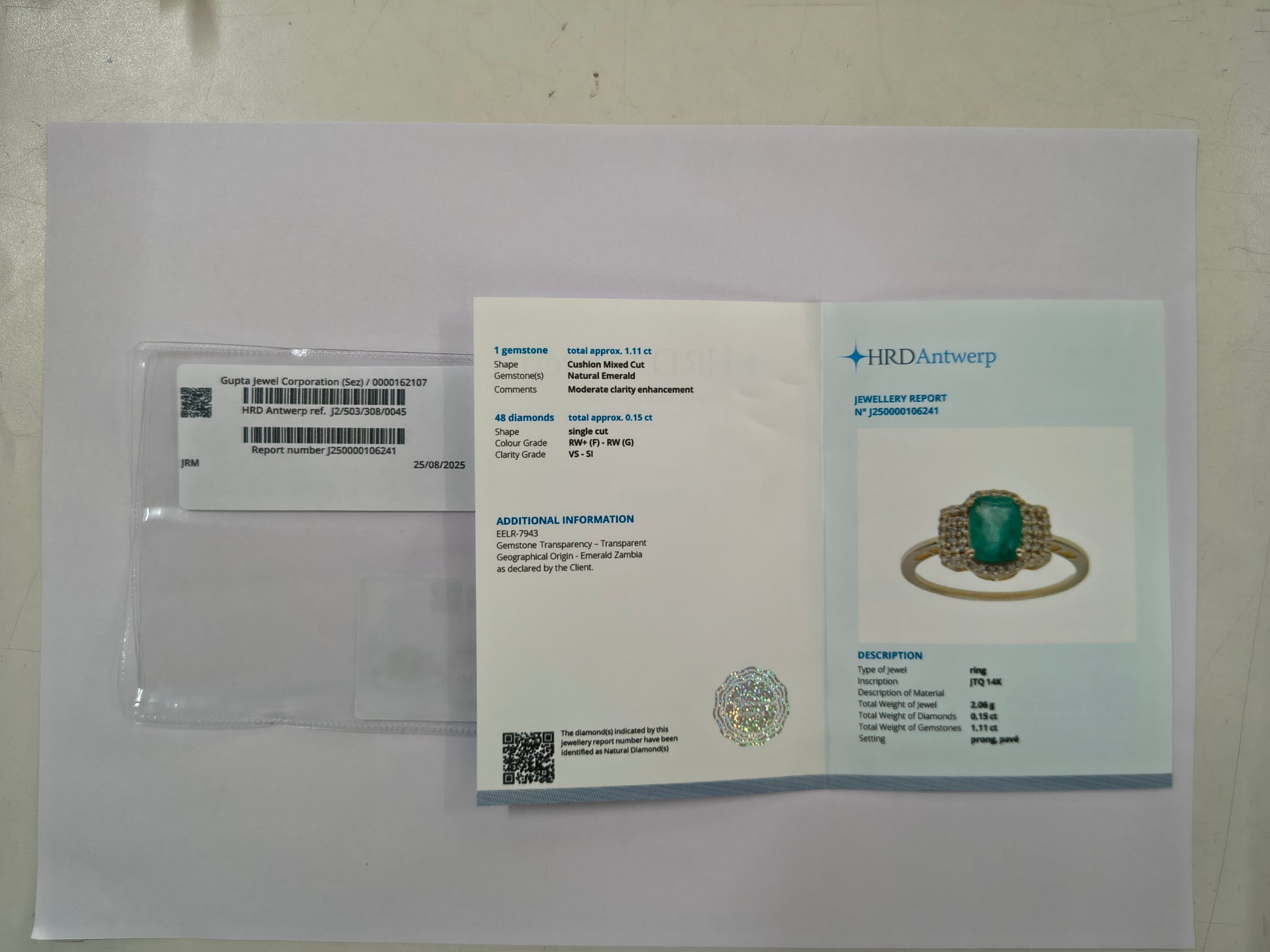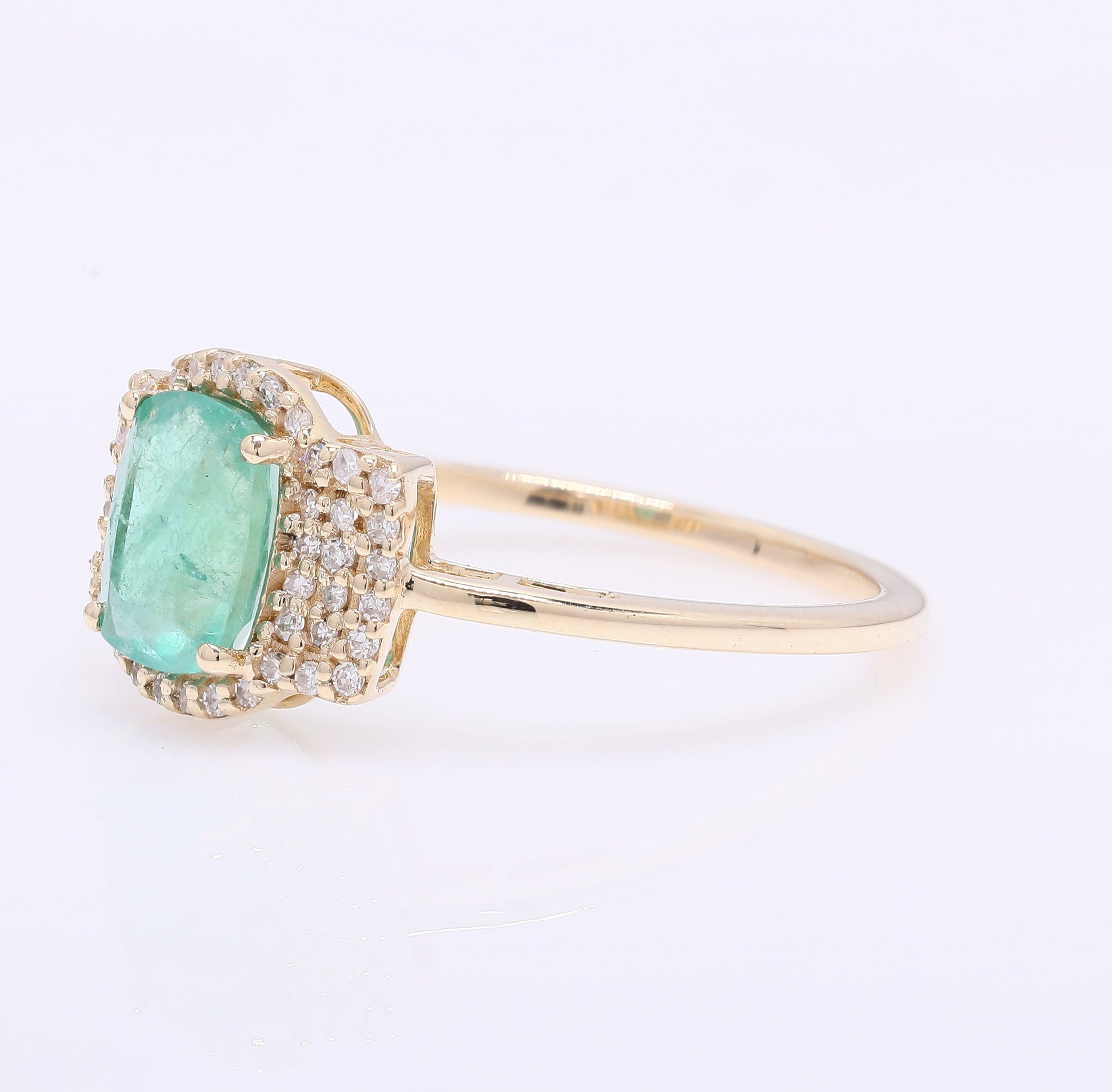1.26 Ct Cushion Mixed Cut Natural Emerald 14K Gold Ring