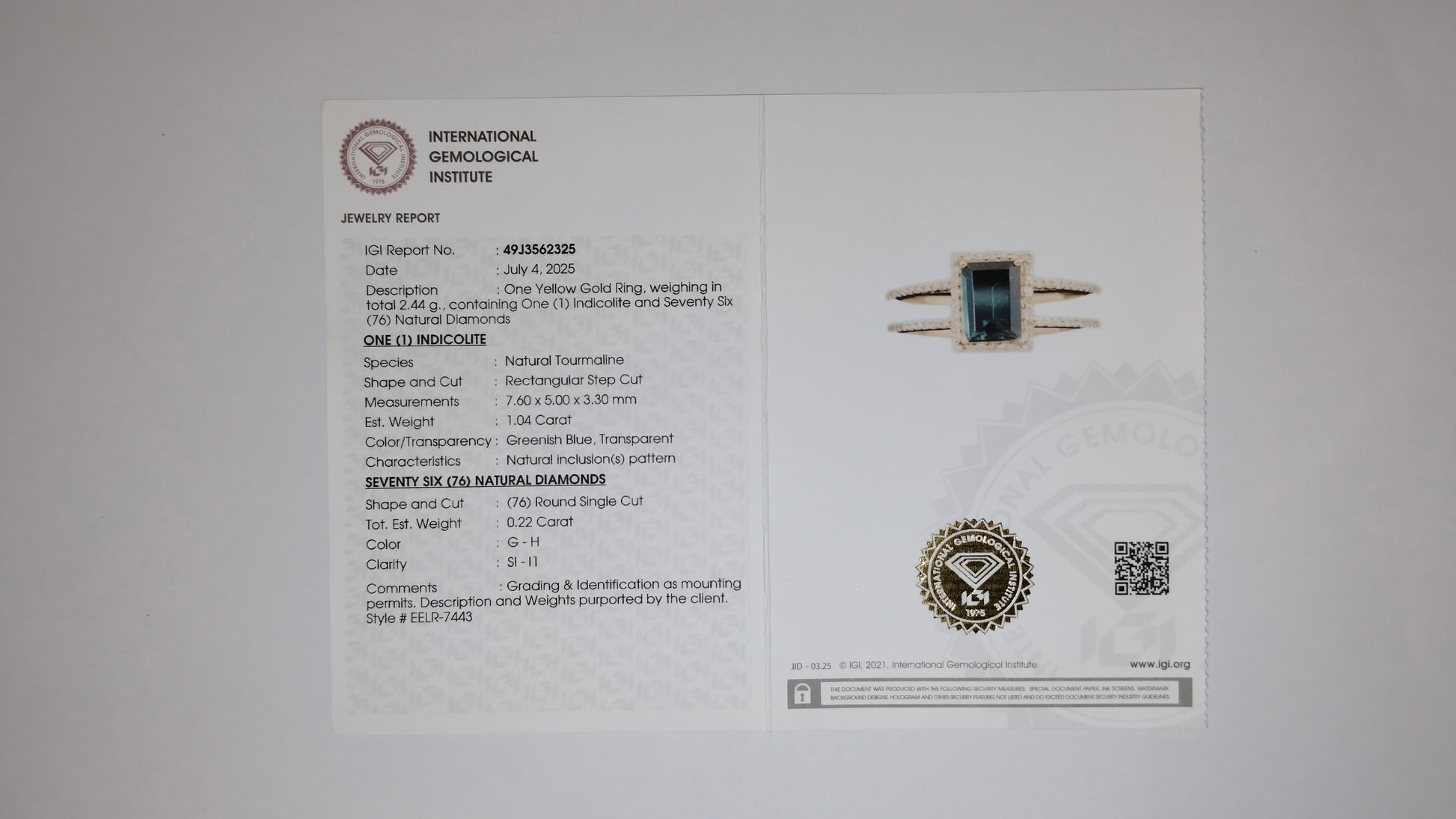 1.26 Ct Rectangular Step Cut Natural Tourmaline 14K Gold Ring