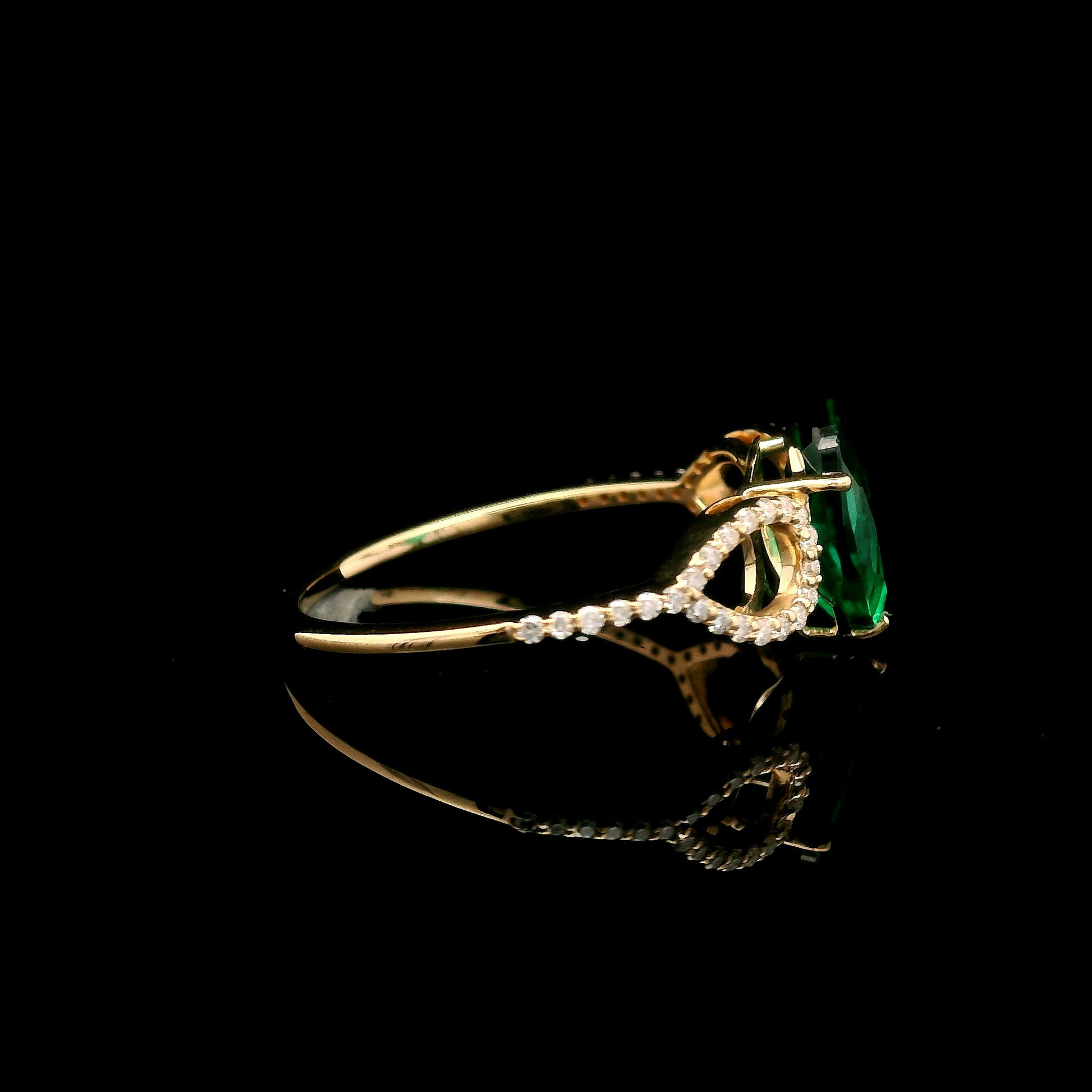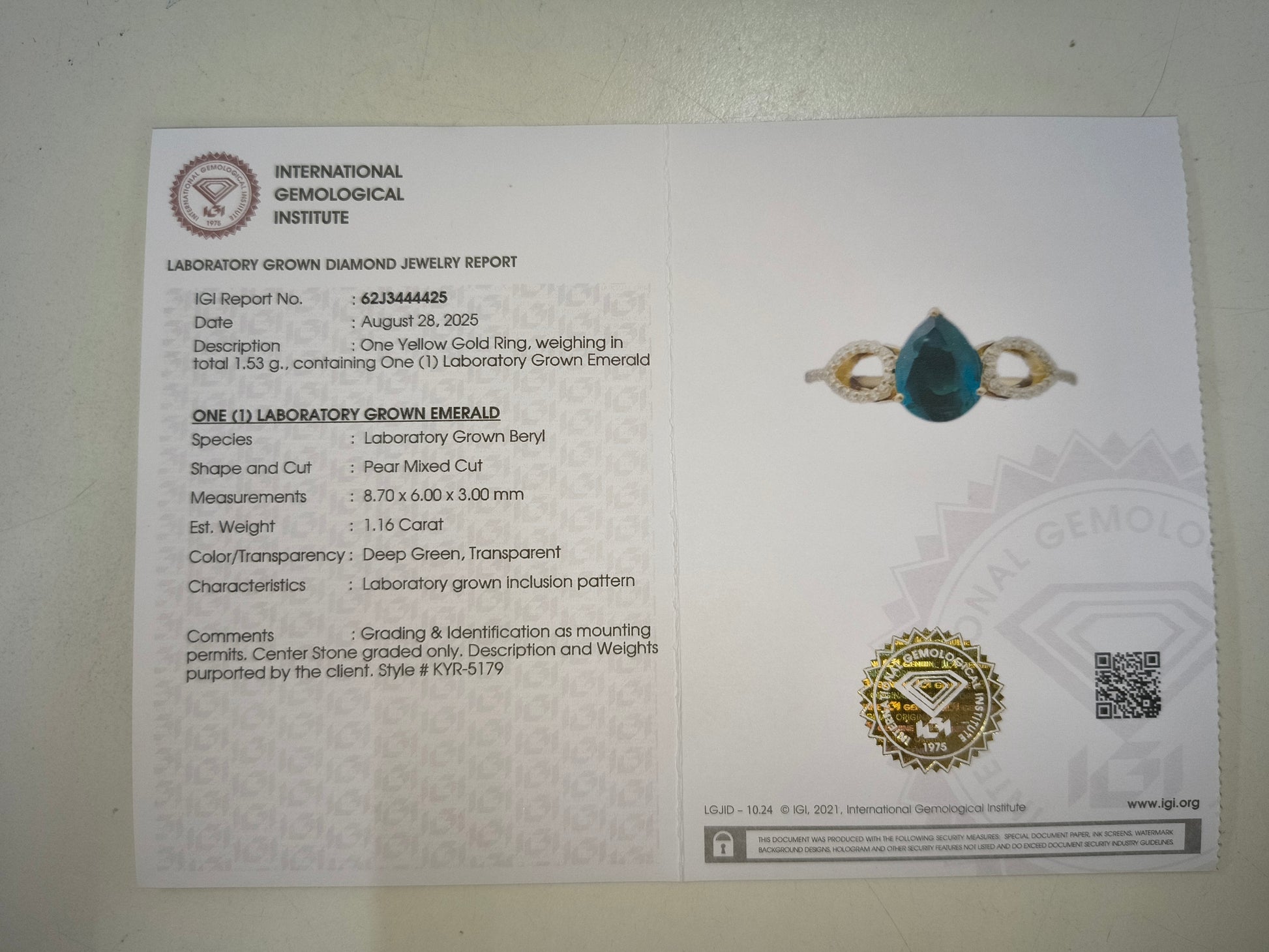 1.29 Ct Pear Mixed Cut Lab Grown Emerald 14K Gold Ring