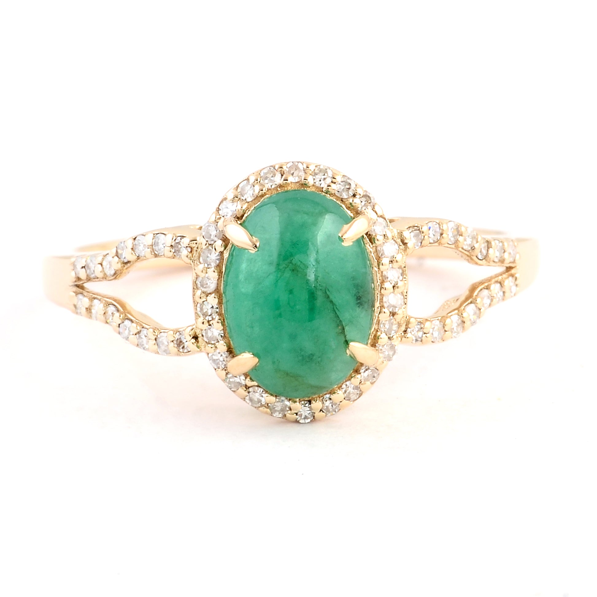 1.30 Ct Oval Cabochon Natural Beryl Emerald 14K Gold Ring