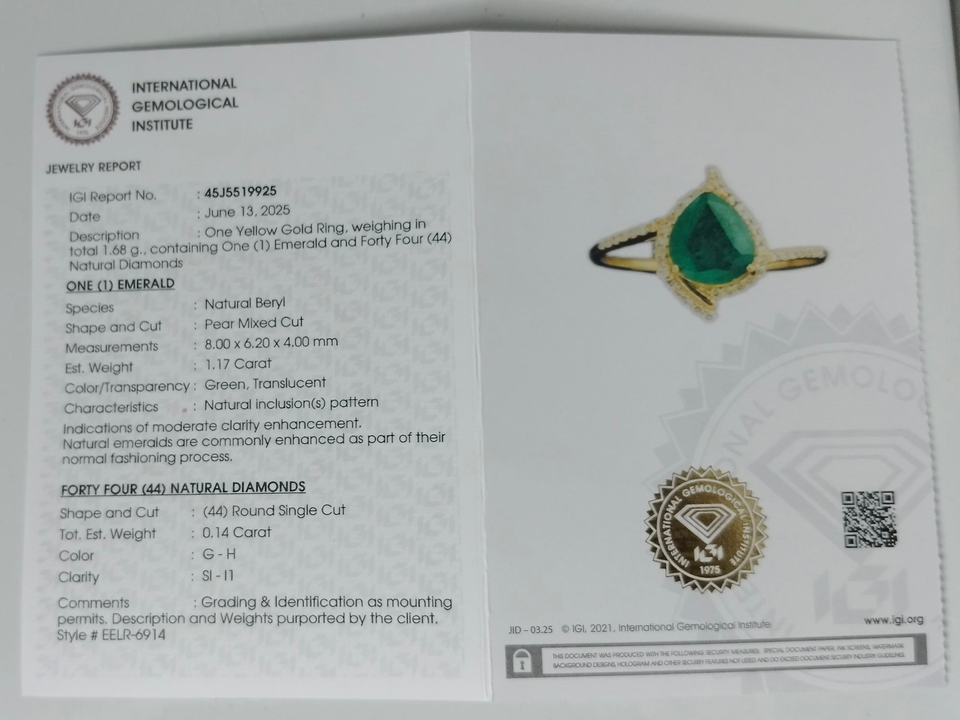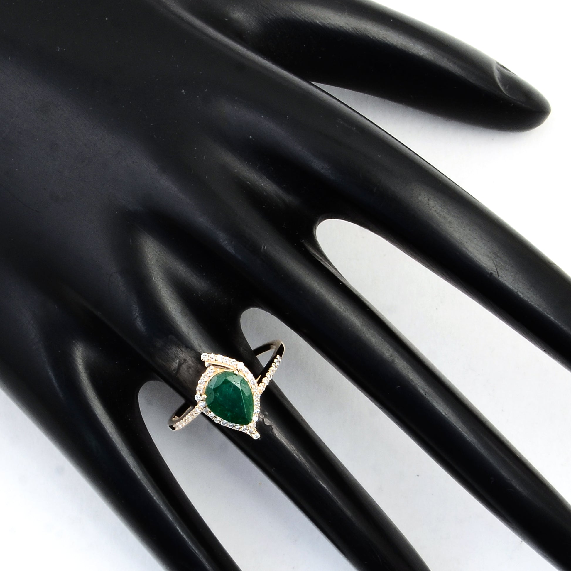1.31 Ct Pear Mixed Cut Natural Beryl Emerald 14K Gold Ring
