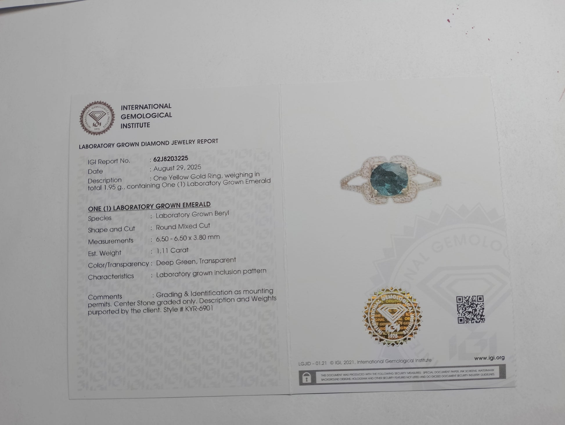 1.31 Ct Round Mixed Cut Lab Grown Emerald 14K Gold Ring