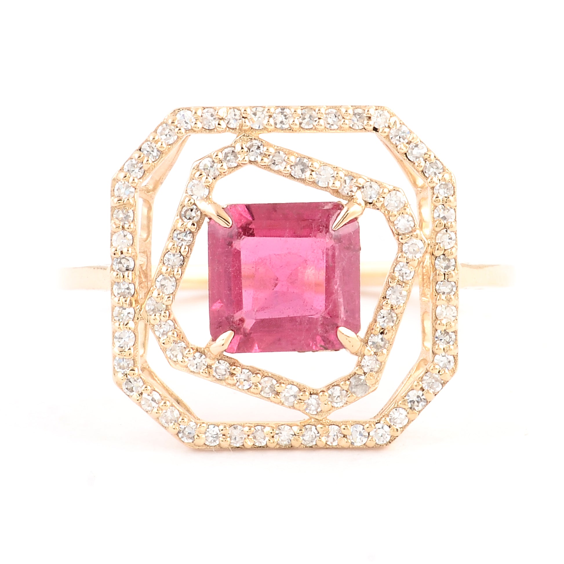 1.31 Ct Square Emerald Cut Natural Tourmaline 14K Gold Ring