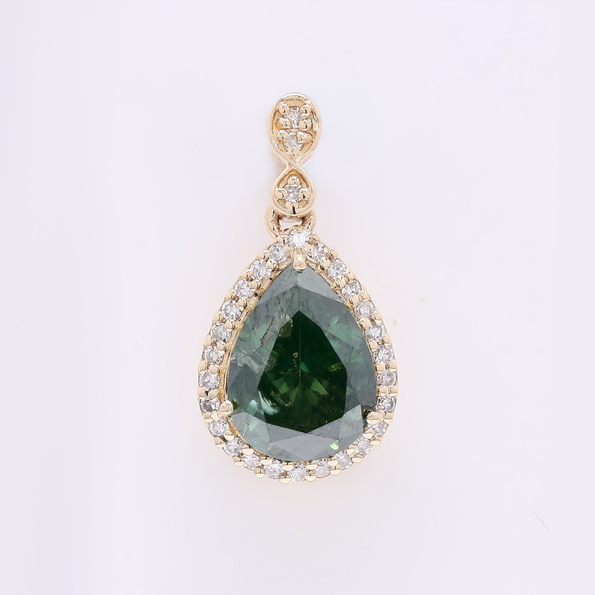 1.32 Ct Pear Green Diamond 14K Gold Pendant