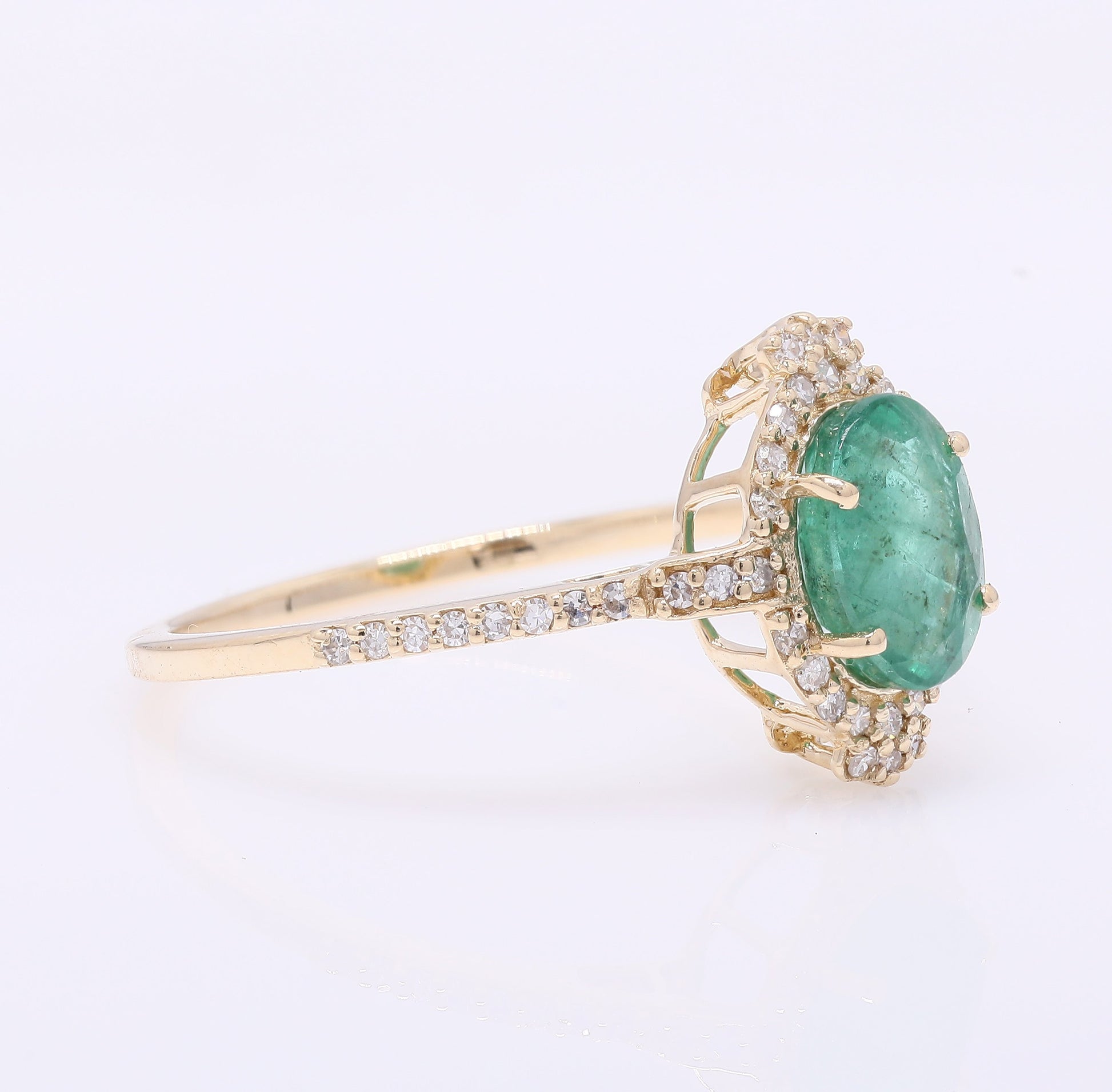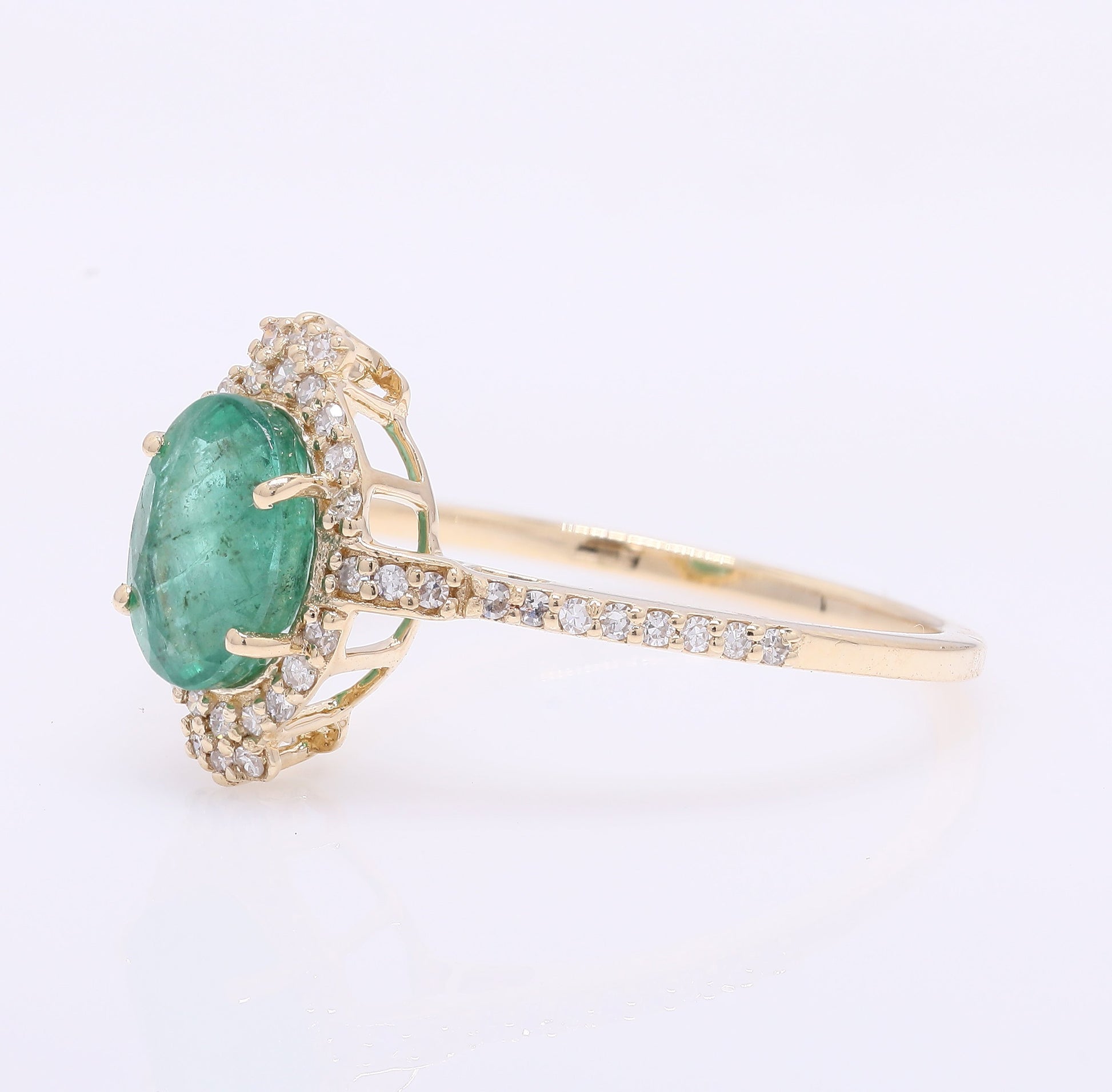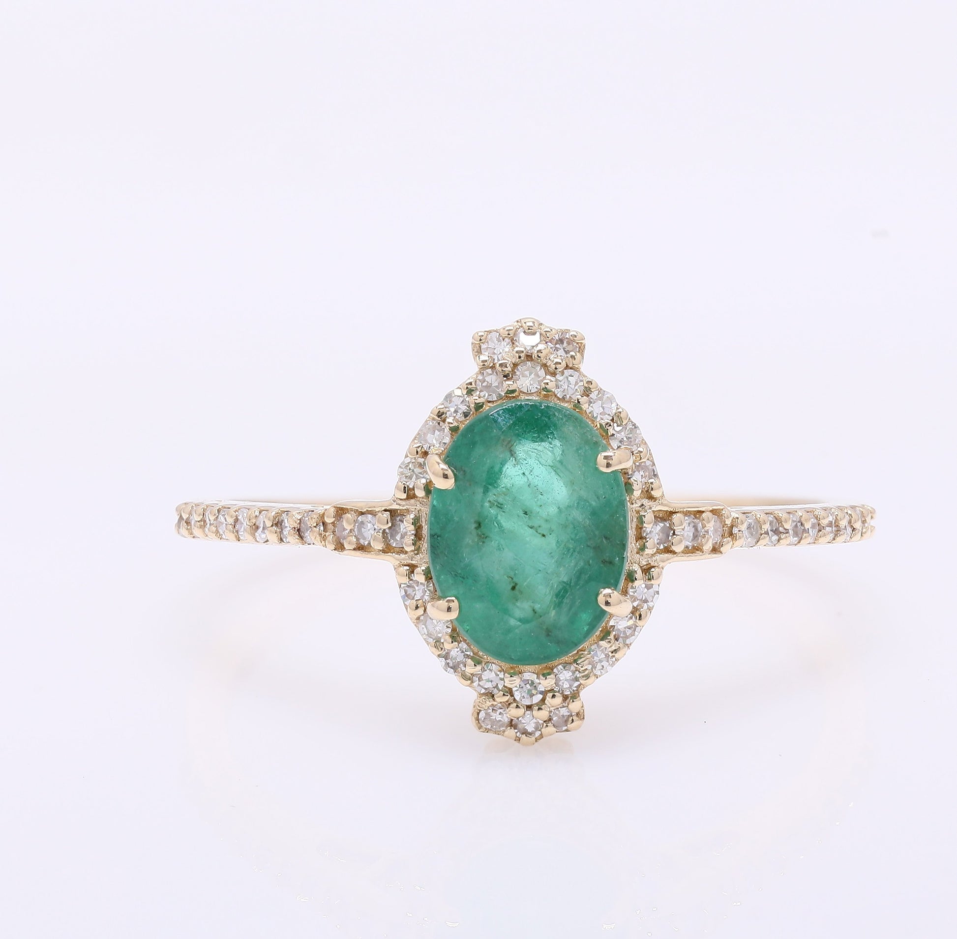 1.34 Ct Oval Mixed Cut Natural Emerald 14K Gold Ring
