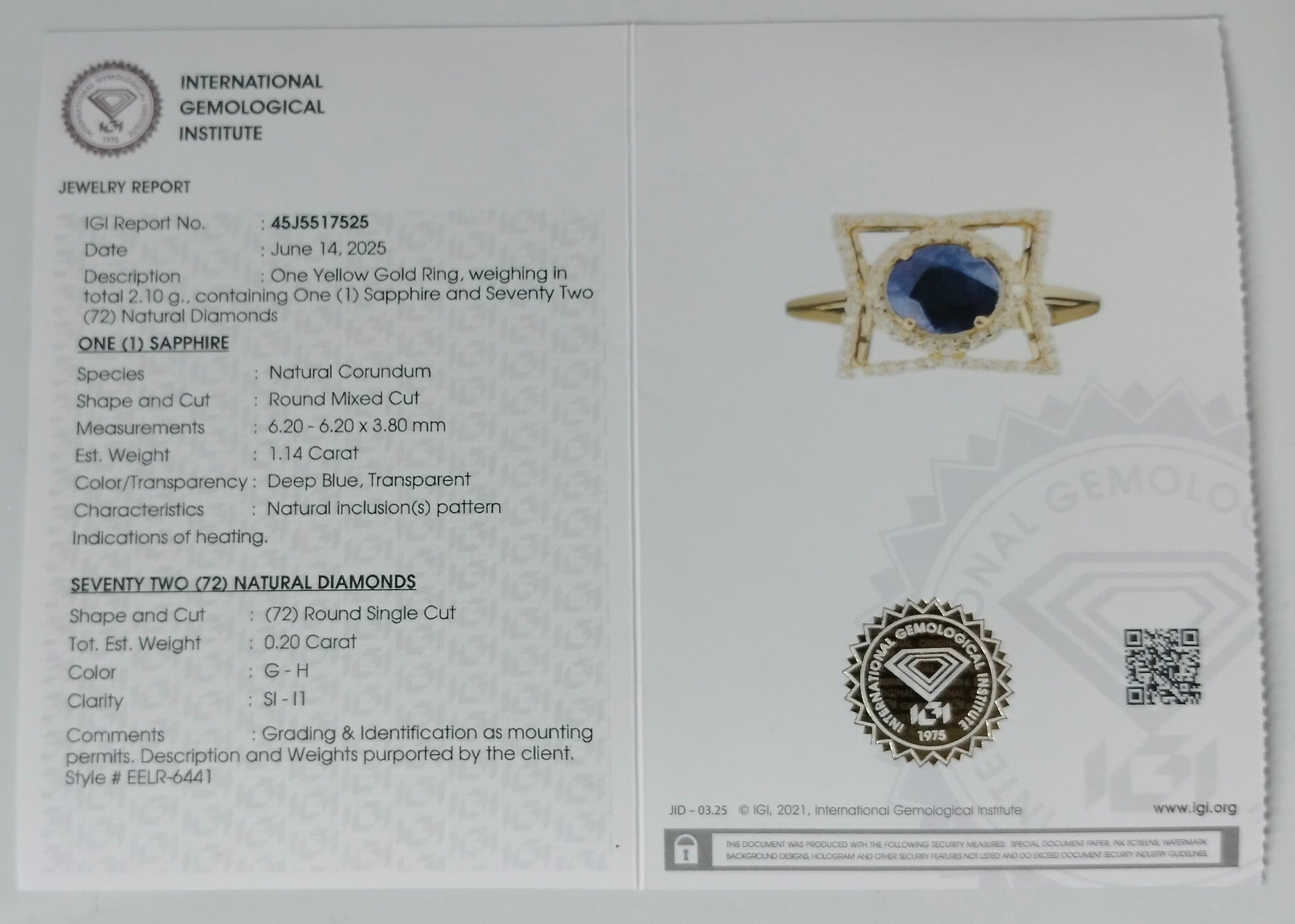 - Lab Name: International Gemological Institute (IGI)