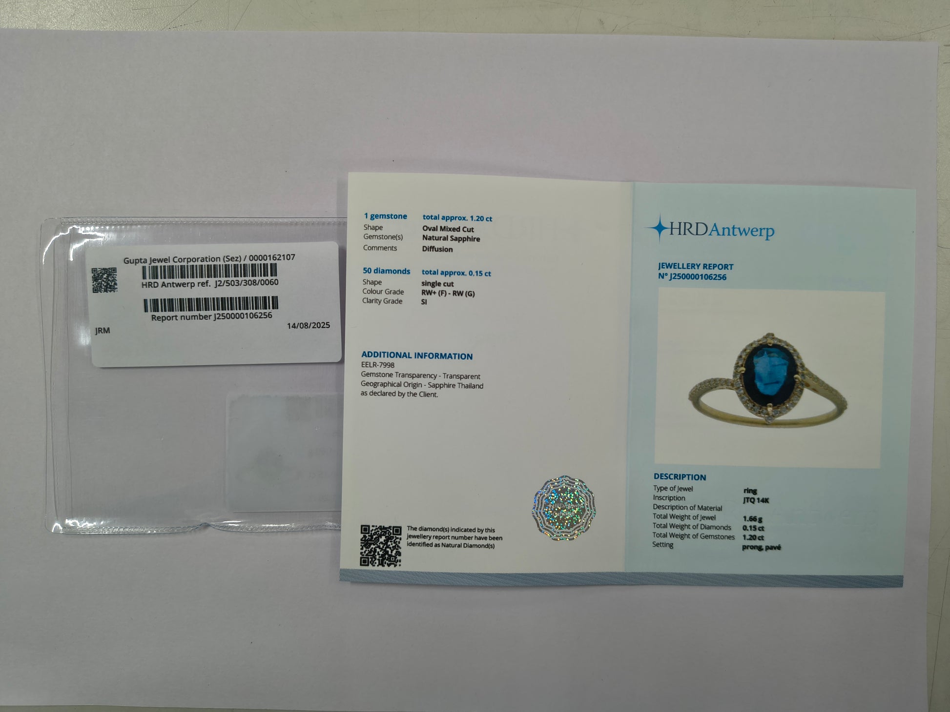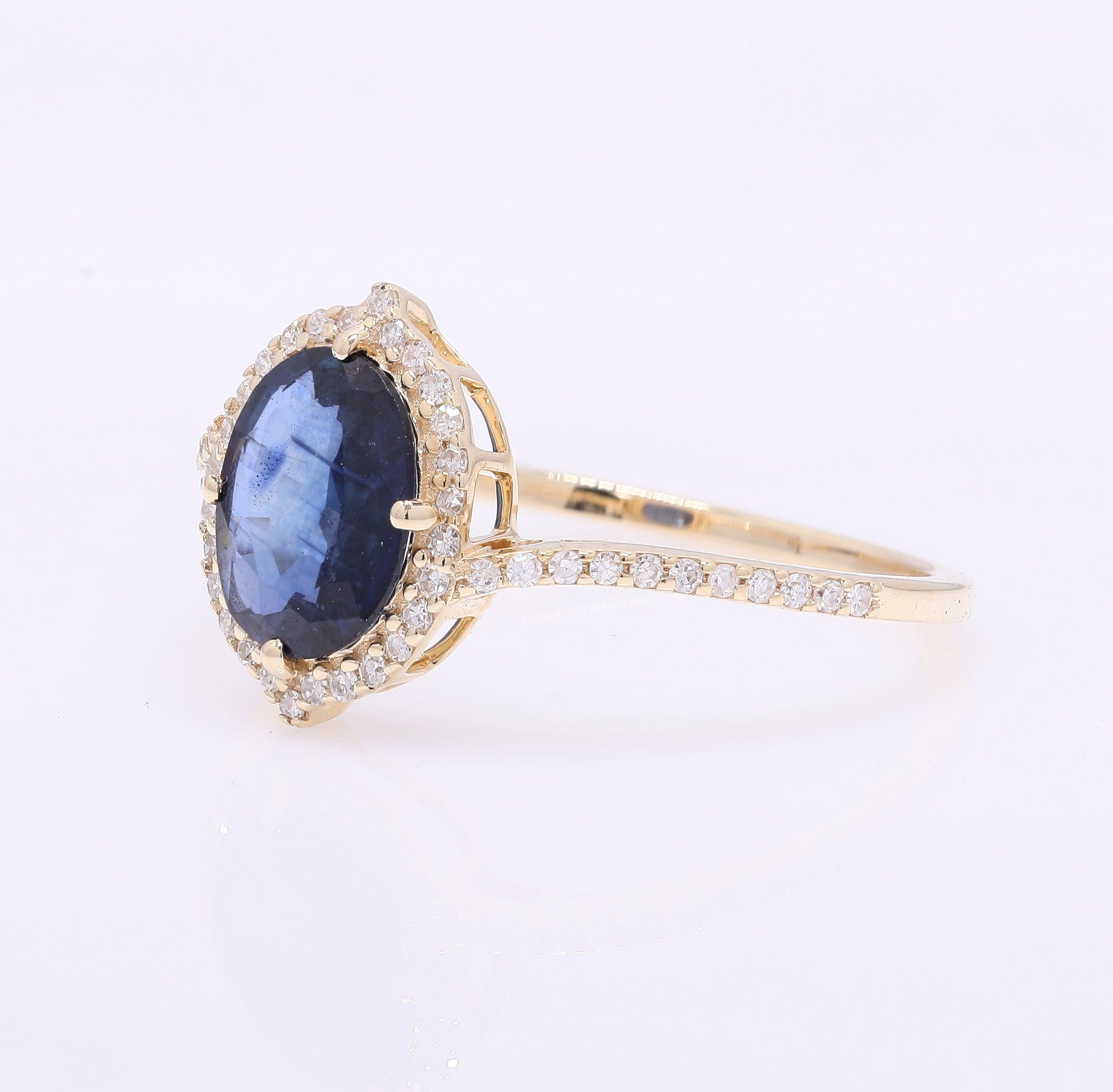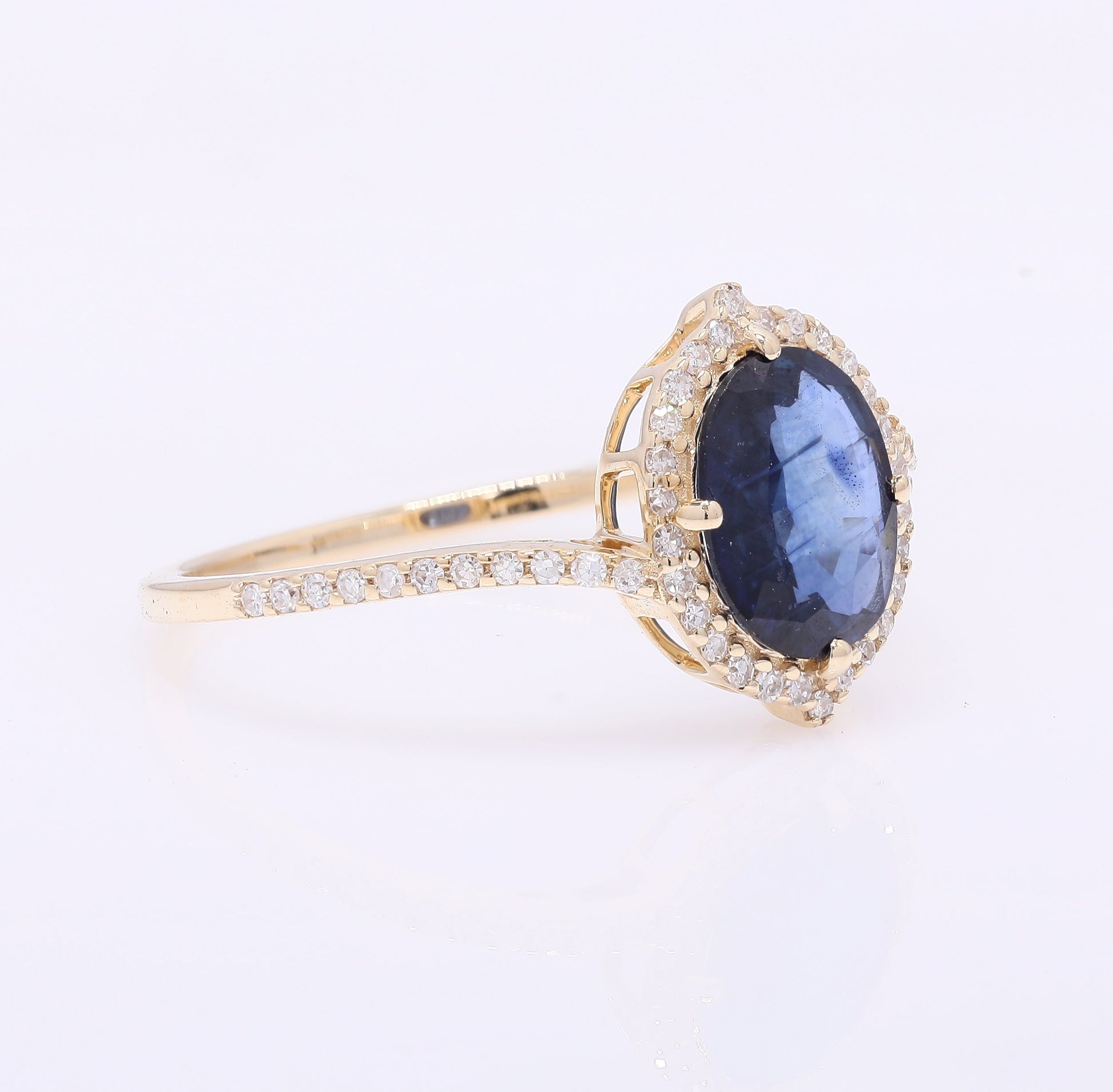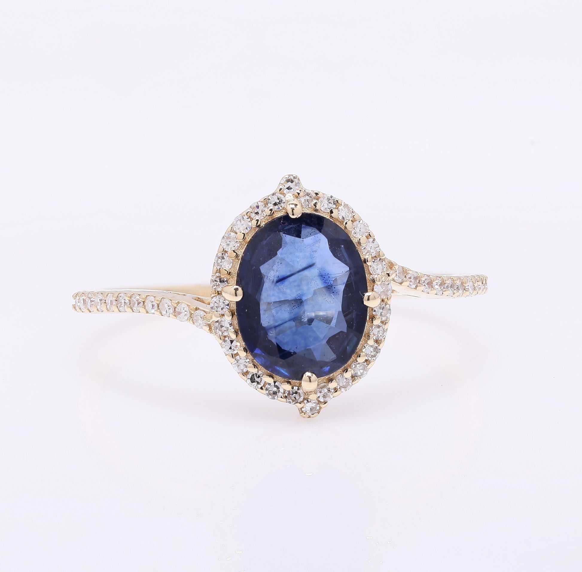 1.35 Ct Oval Mixed Cut Natural Sapphire 14K Gold Ring