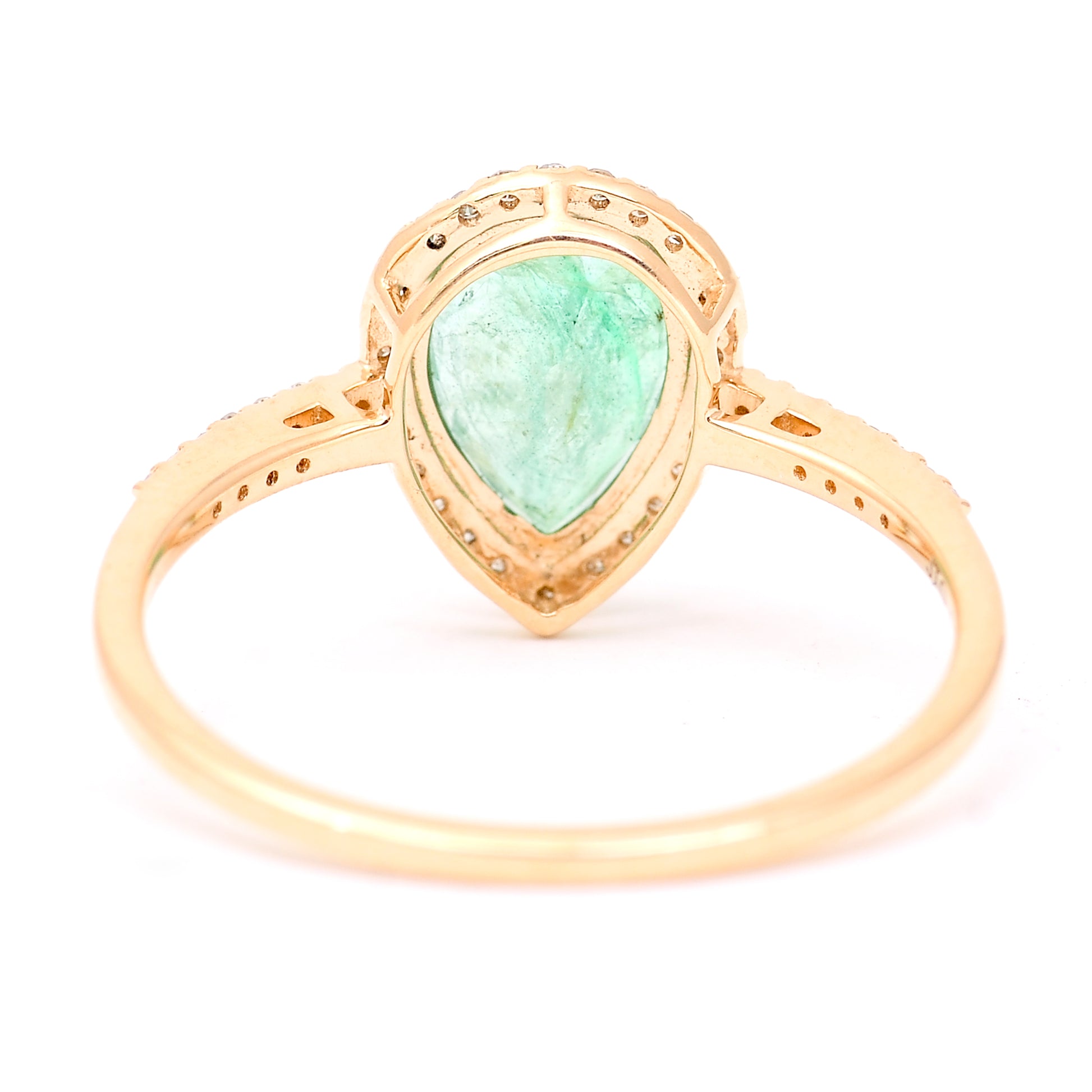 1.35 Ct Pear Mixed Cut Natural Emerald 14K Gold Ring
