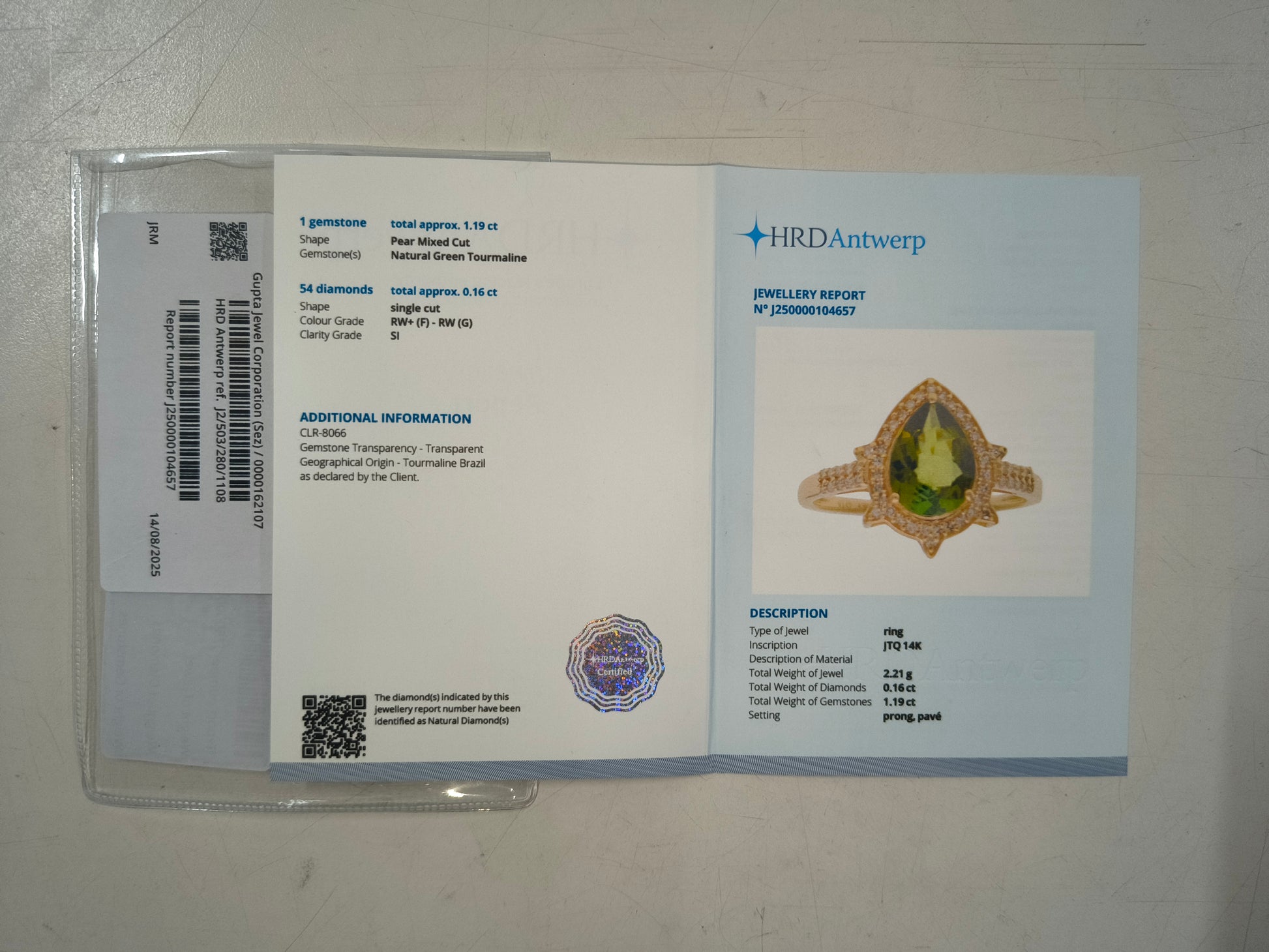 1.35 Ct Pear Mixed Cut Natural Tourmaline 14K Gold Ring