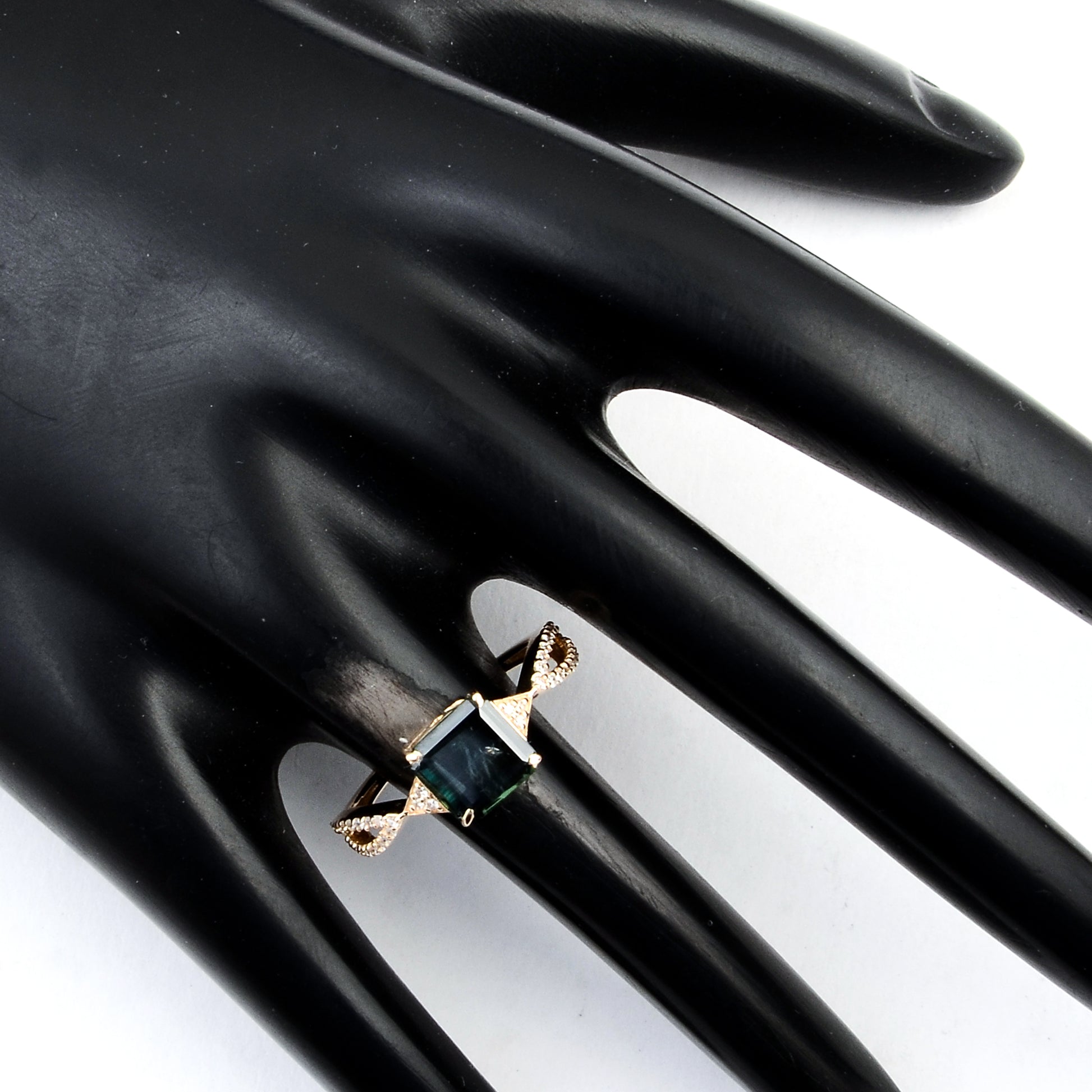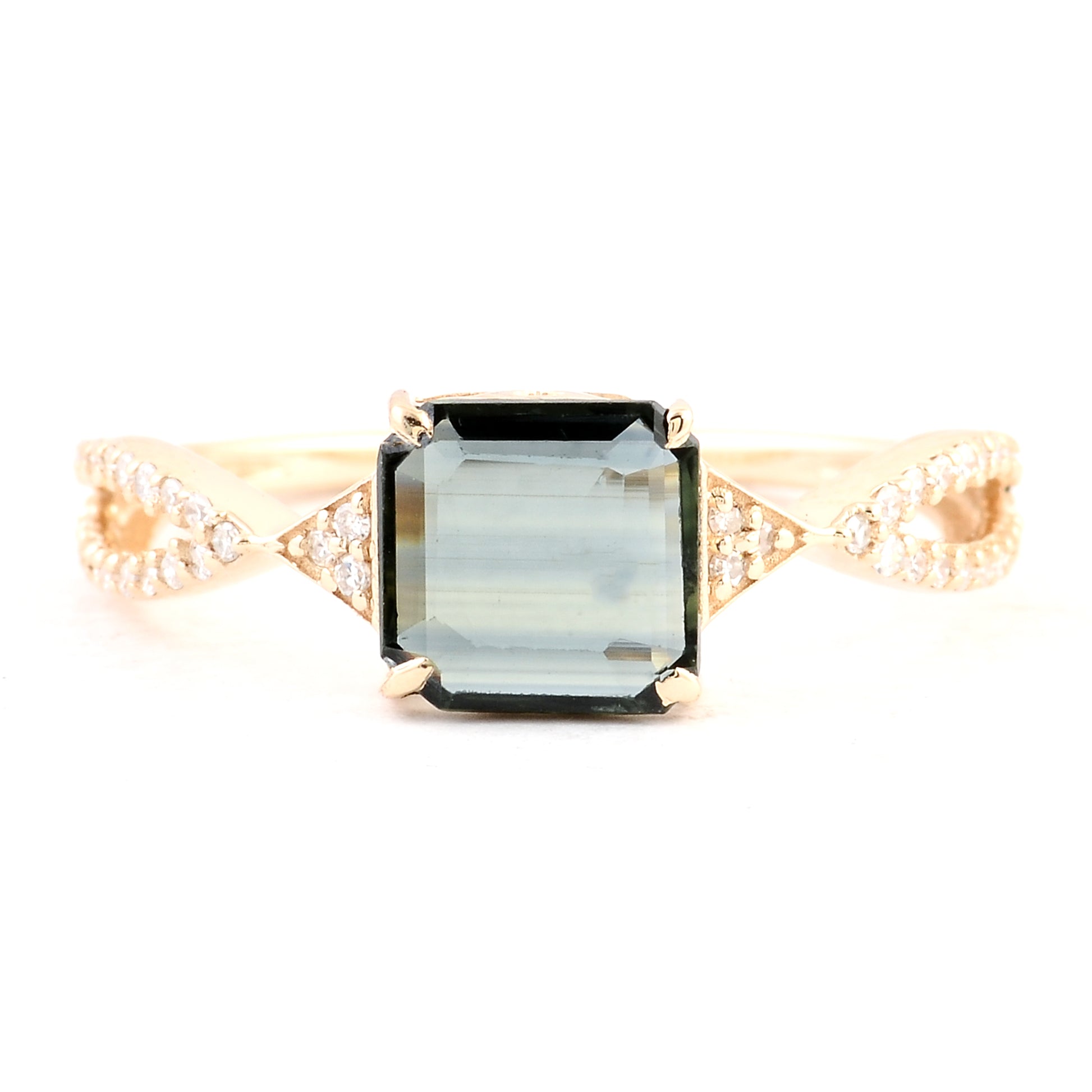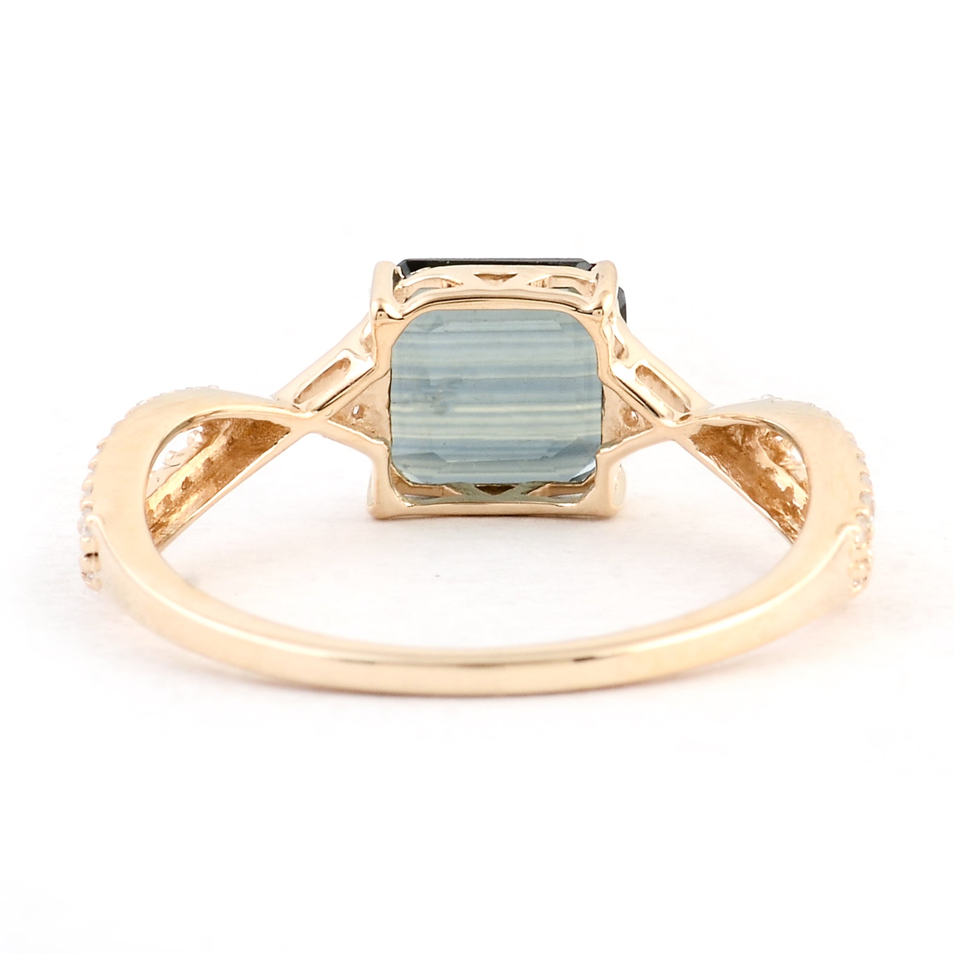 1.36 Ct Square Emerald Cut Natural Corundum Sapphire 14K Gold Ring
