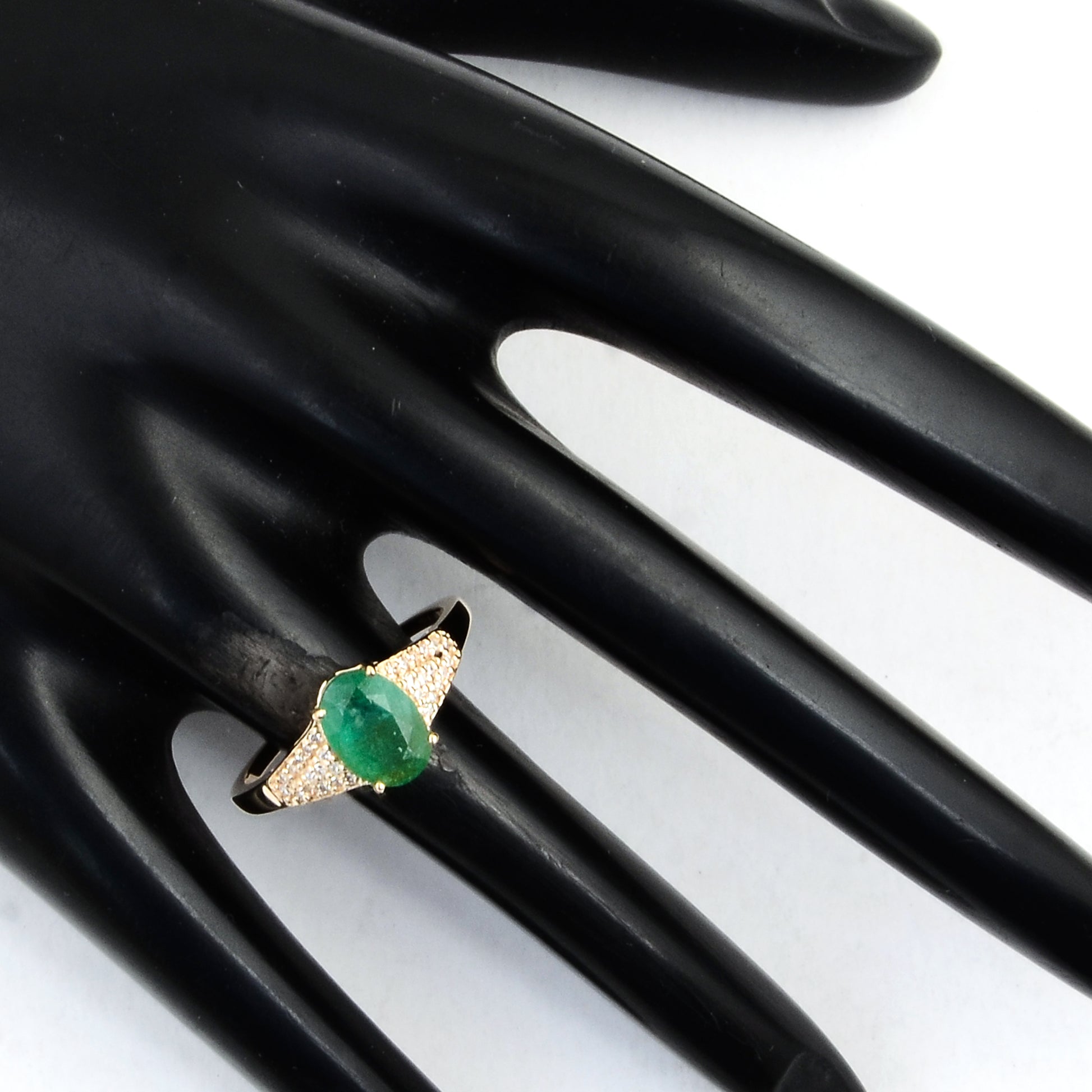 1.38 Ct Oval Mixed Cut Natural Beryl Emerald 14K Gold Ring
