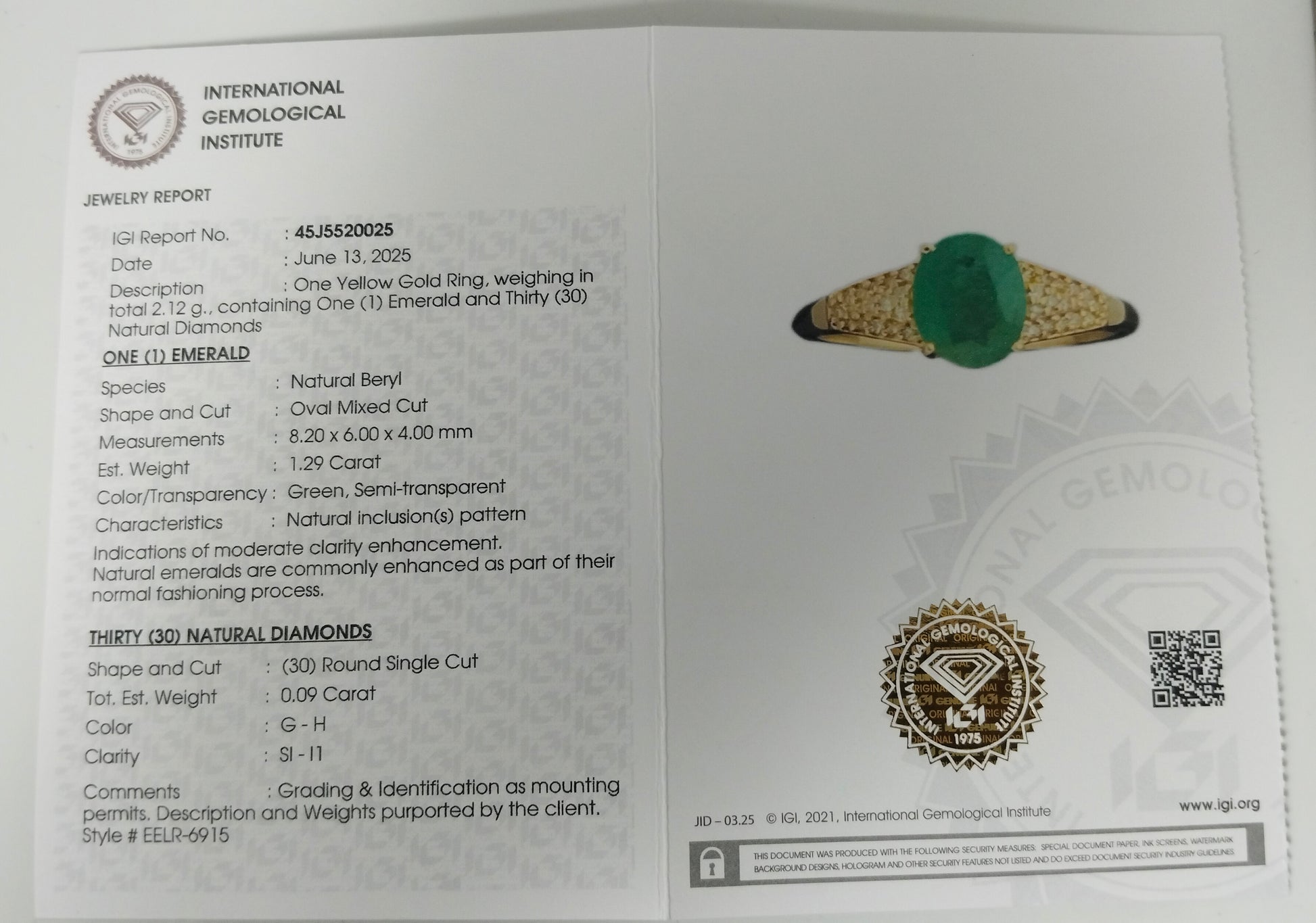 - Lab Name: International Gemological Institute (IGI)