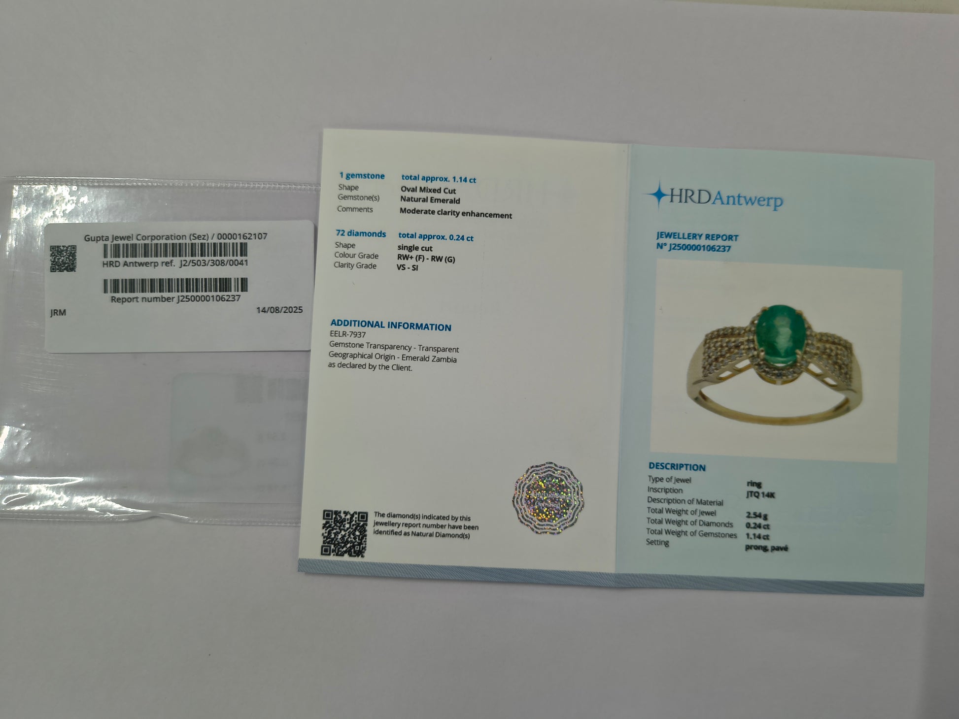 1.38 Ct Oval Mixed Cut Natural Emerald 14K Gold Ring