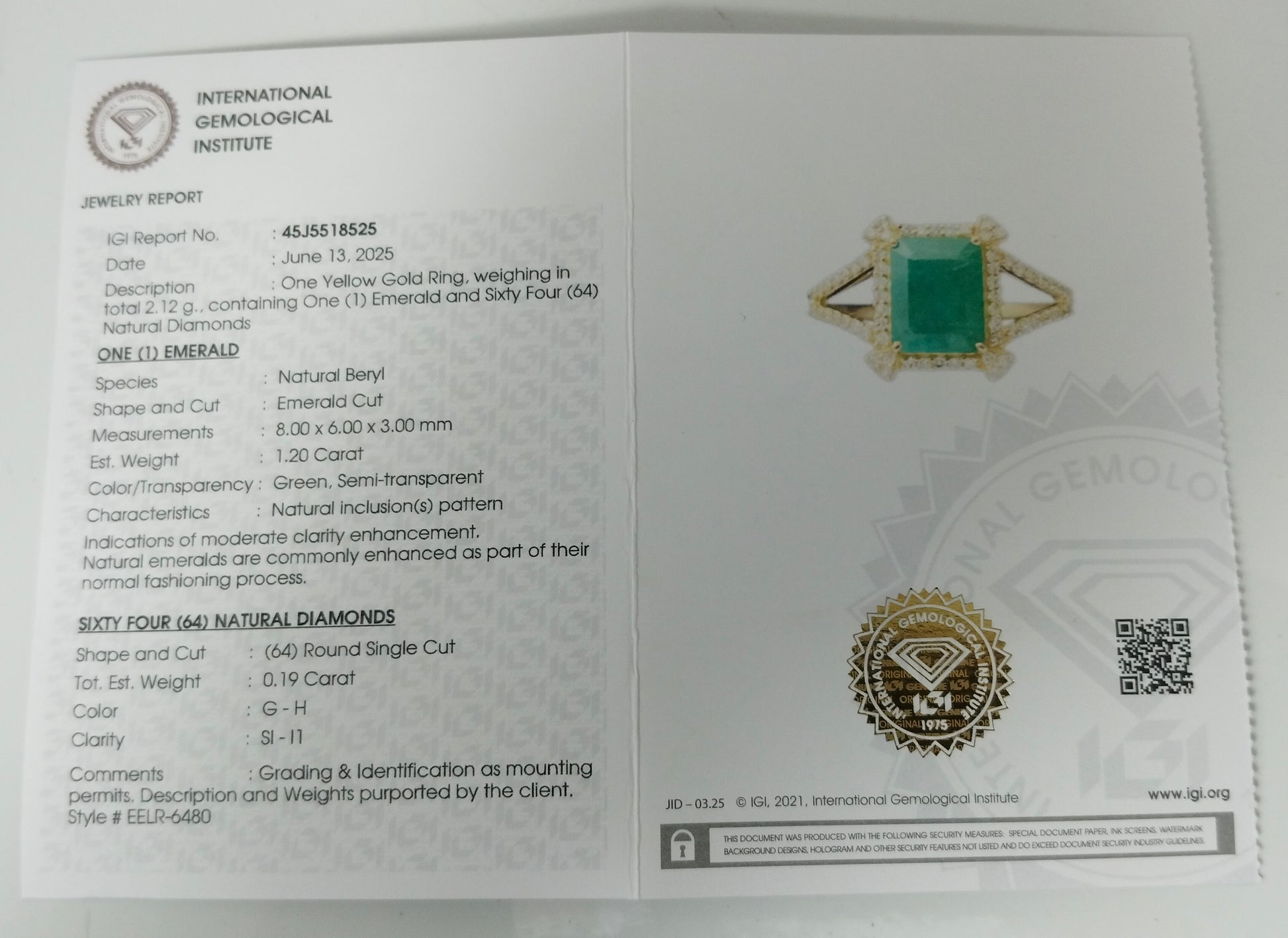 - Lab Name: International Gemological Institute (IGI)