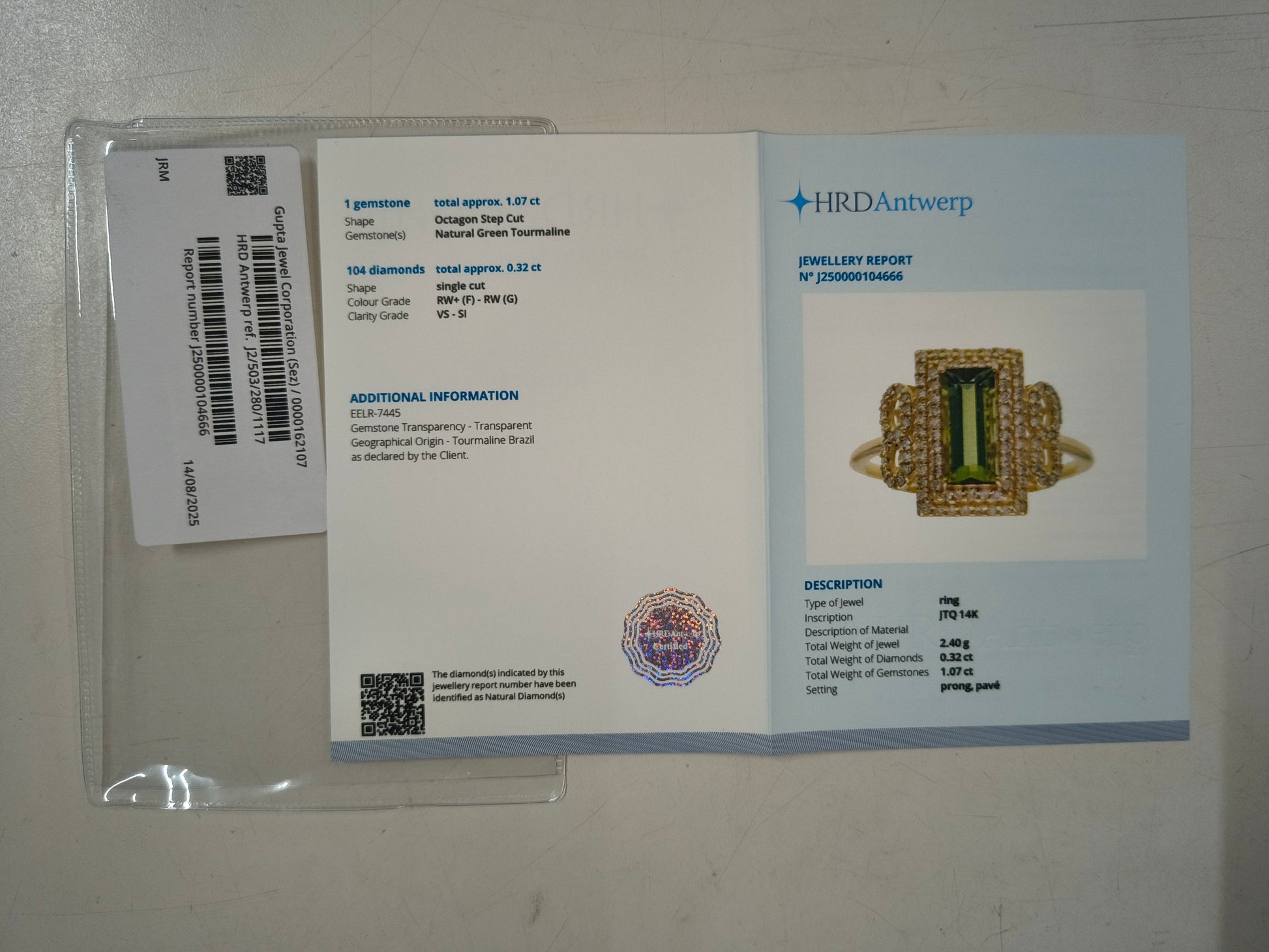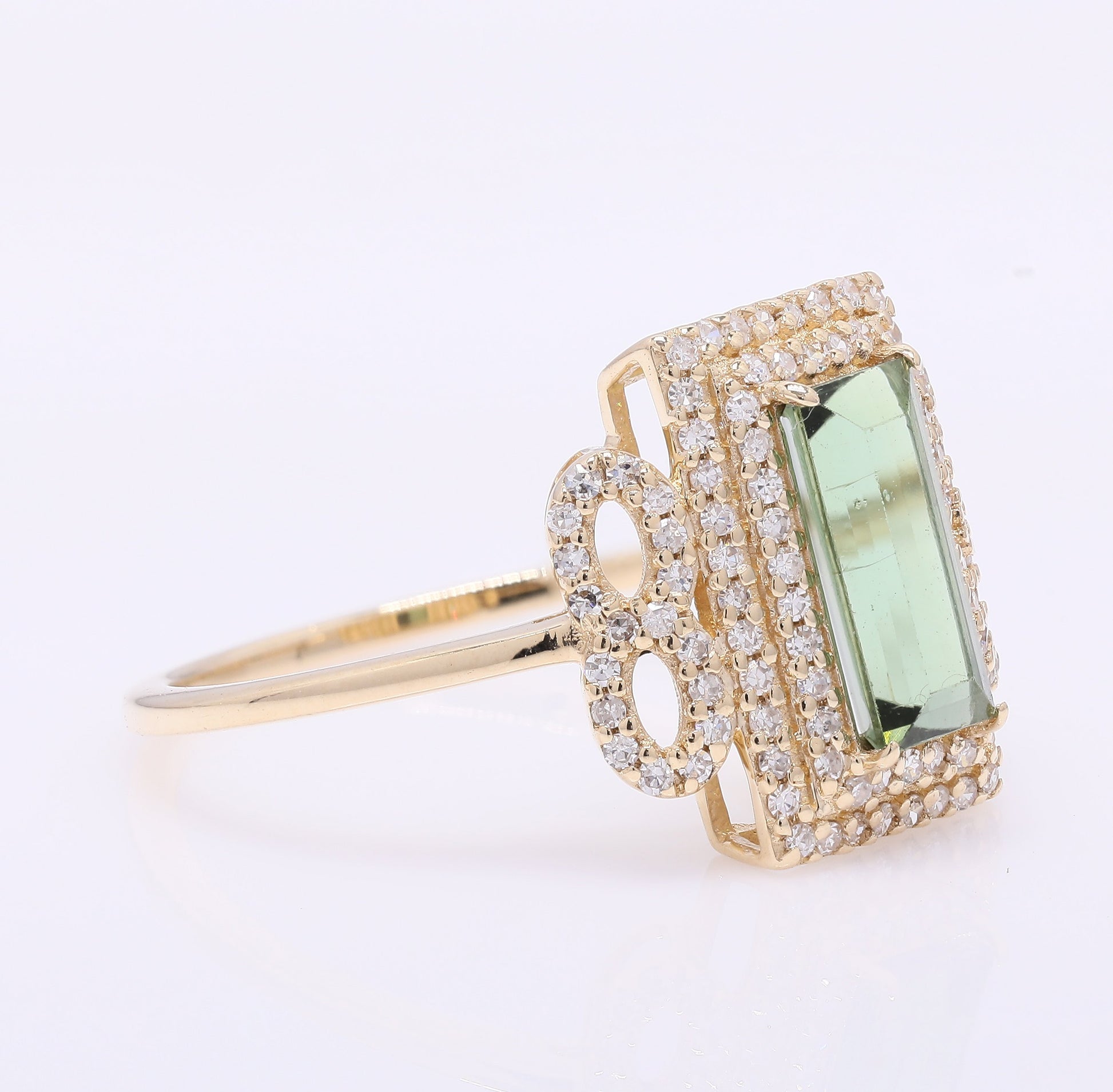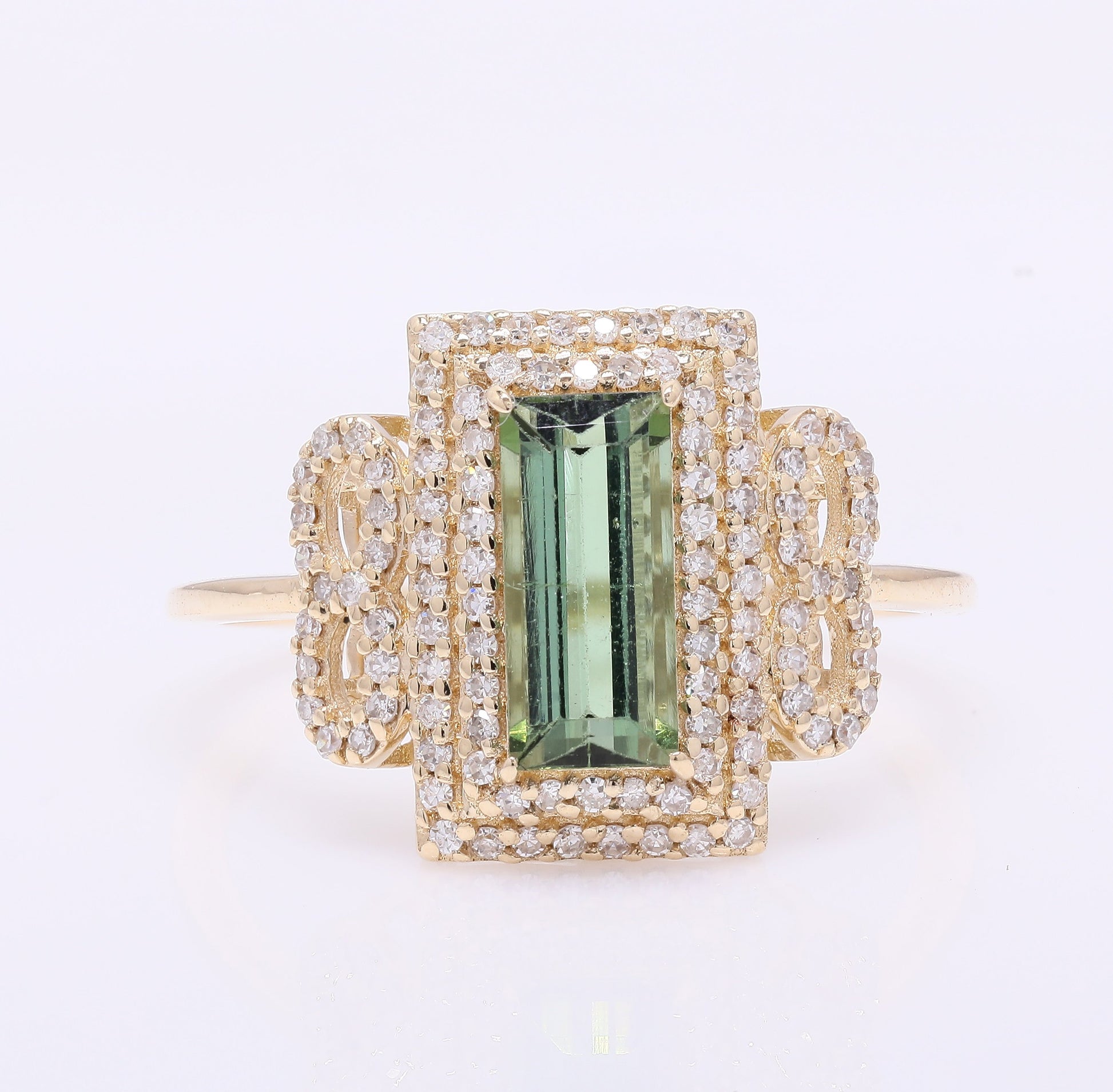 1.39 Ct Octagon Step Cut Natural Tourmaline 14K Gold Ring