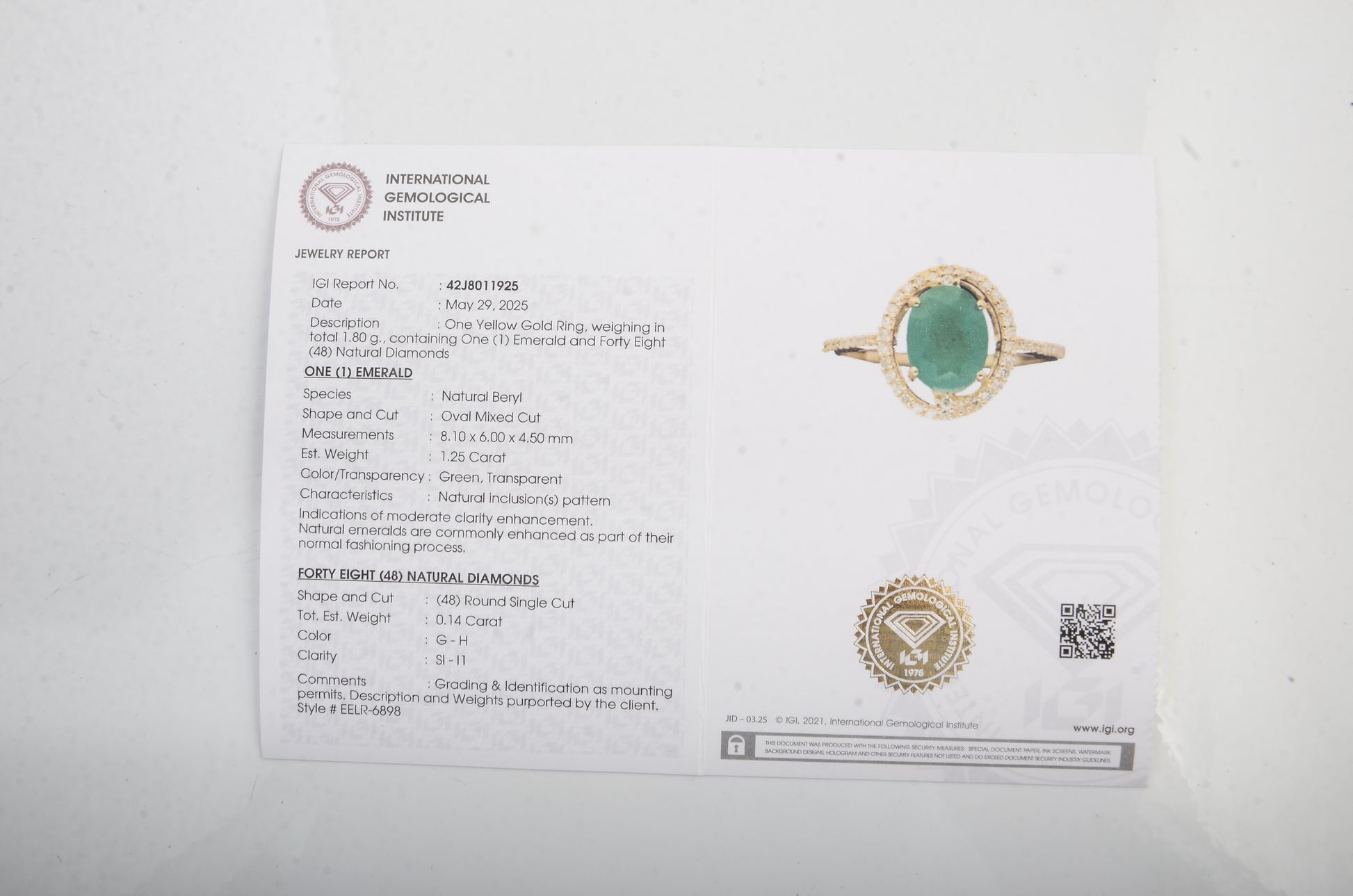 1.39 Total Carat Natural Beryl Emerald 14K Gold Ring