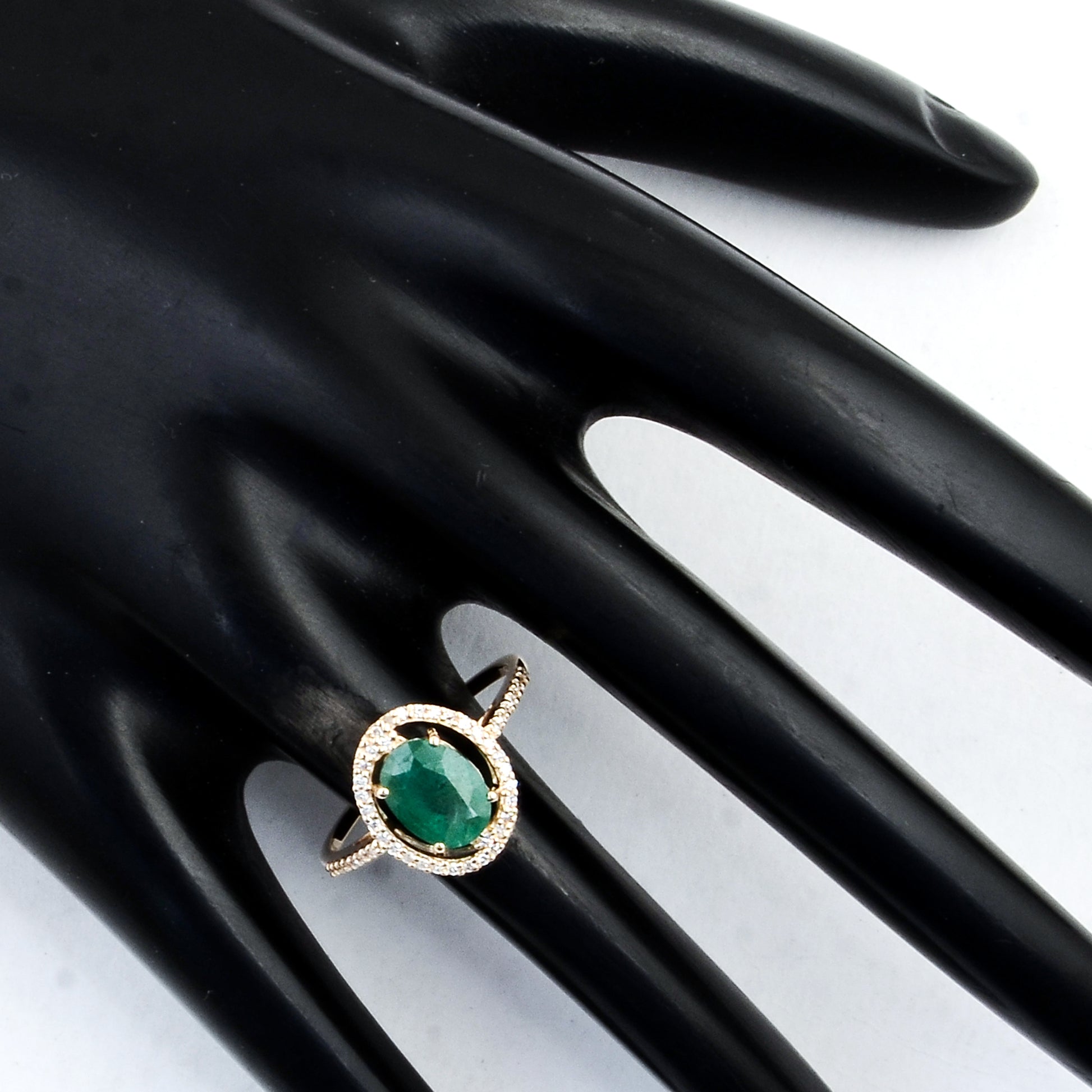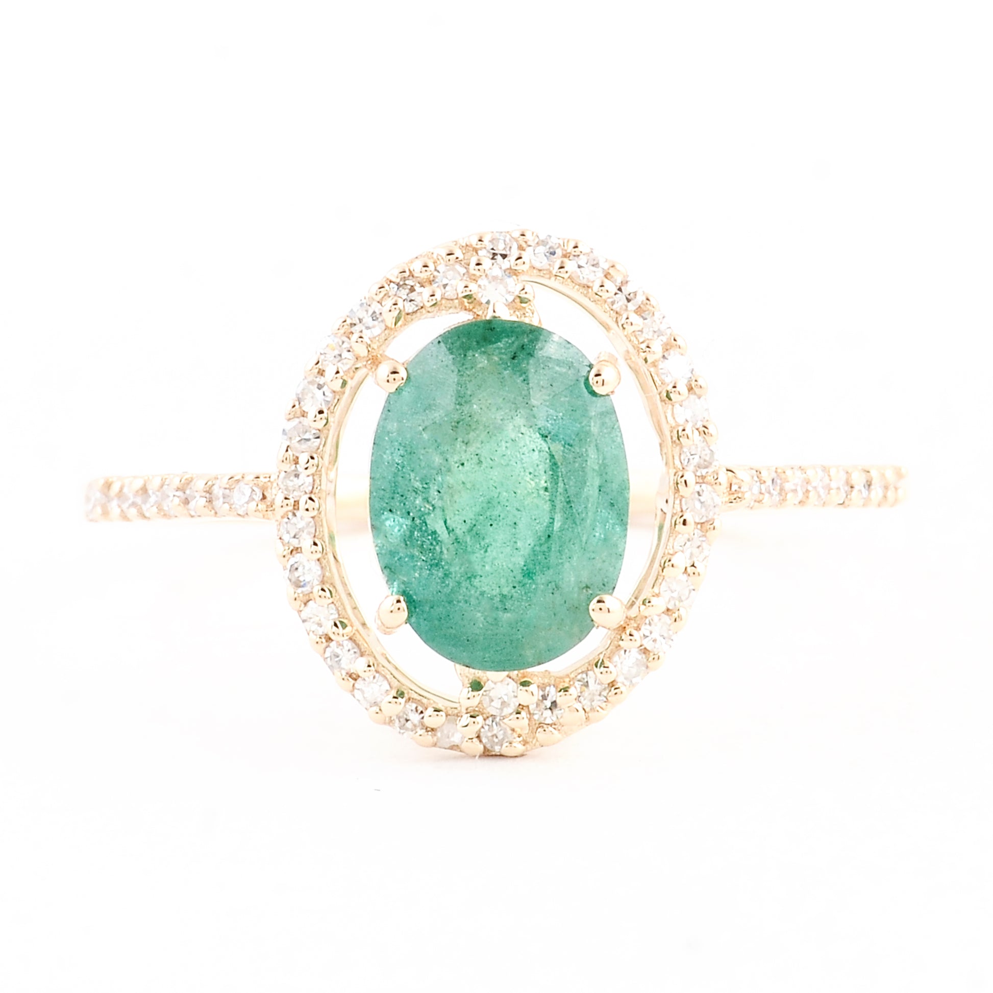 1.39 Ct Oval Mixed Cut Natural Beryl Emerald 14K Gold Ring