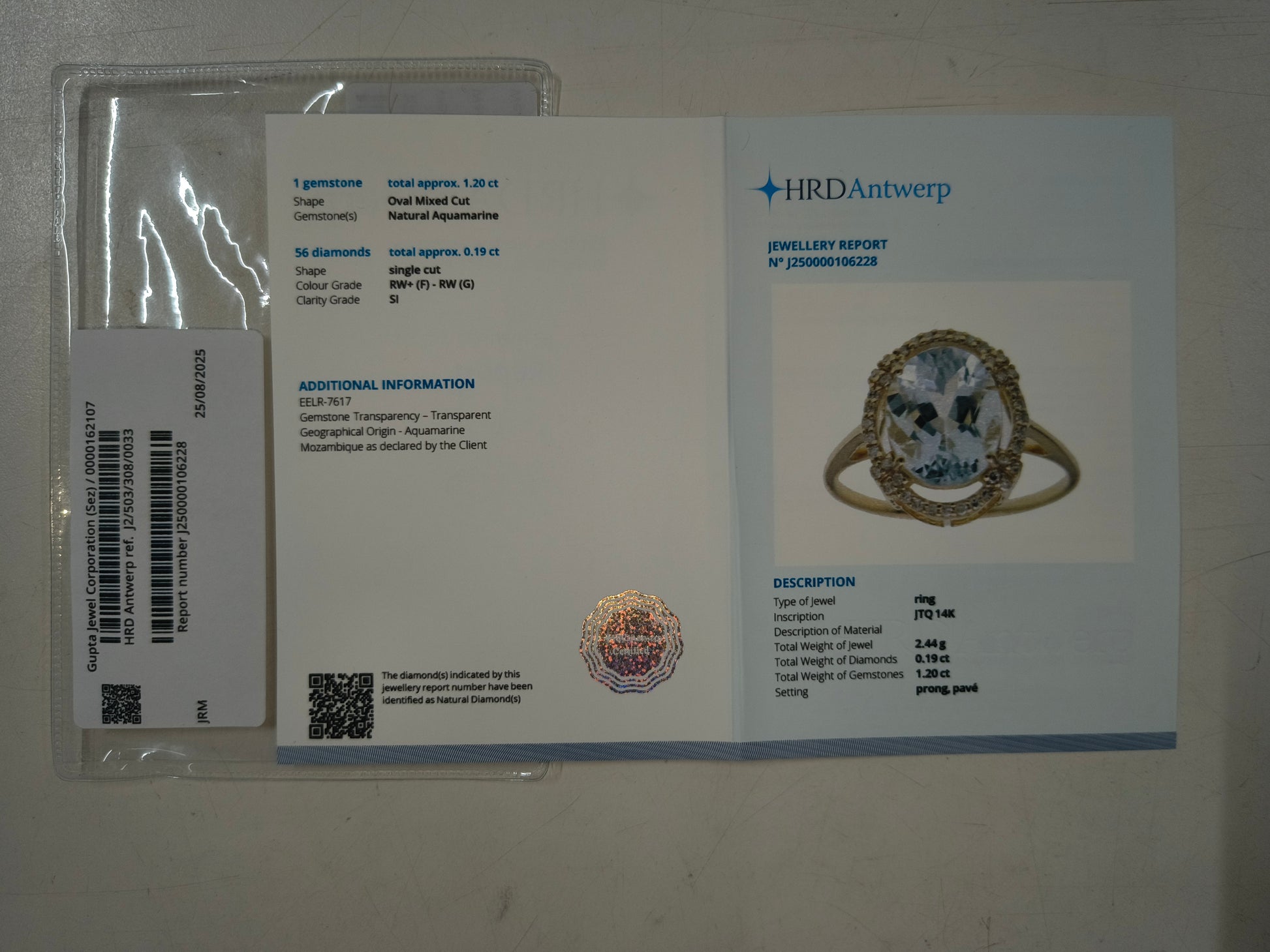 1.39 Ct Oval Natural Aquamarine 14K Gold Ring