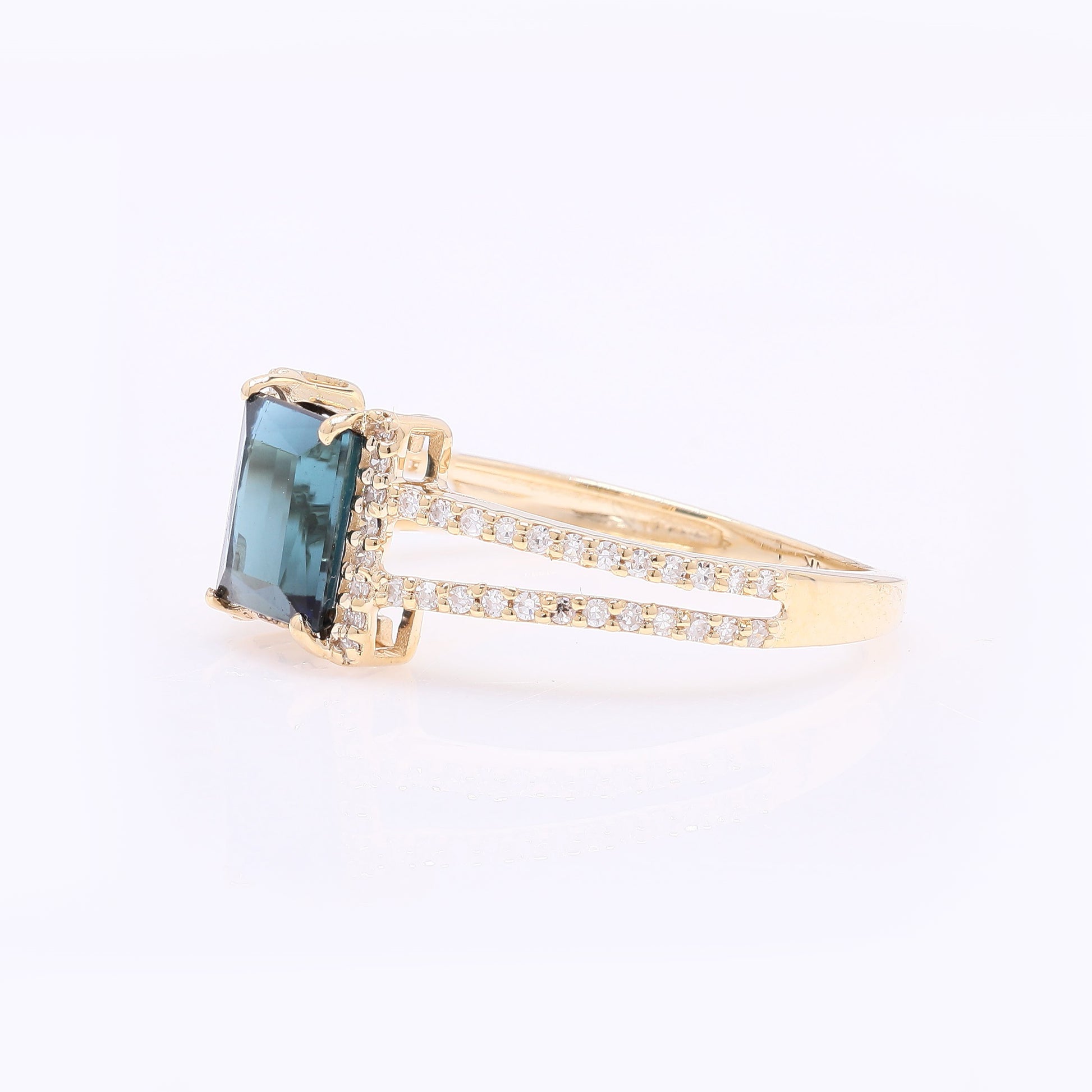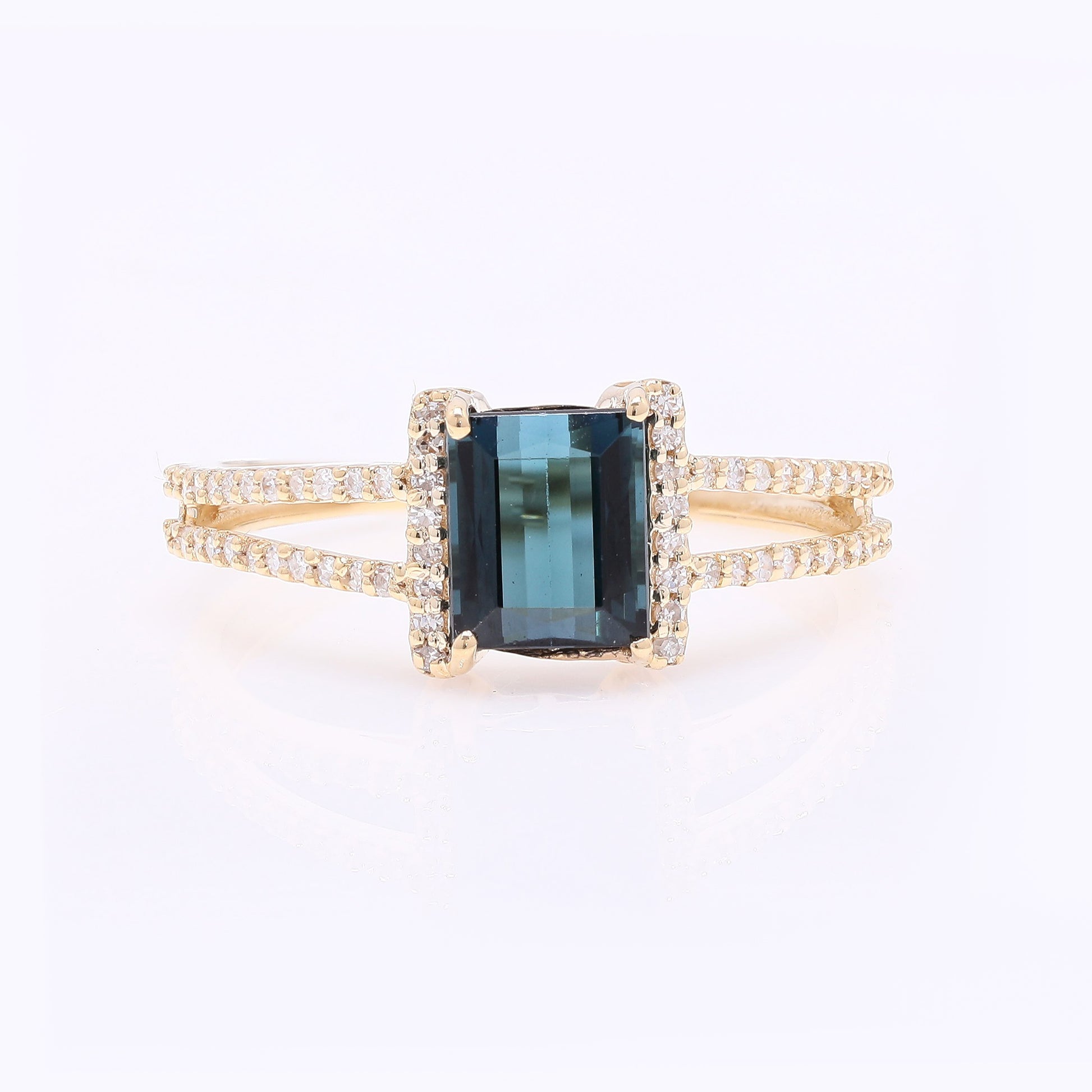 1.39 Ct Rectangle Step Cut Natural Tourmaline 14K Gold Ring