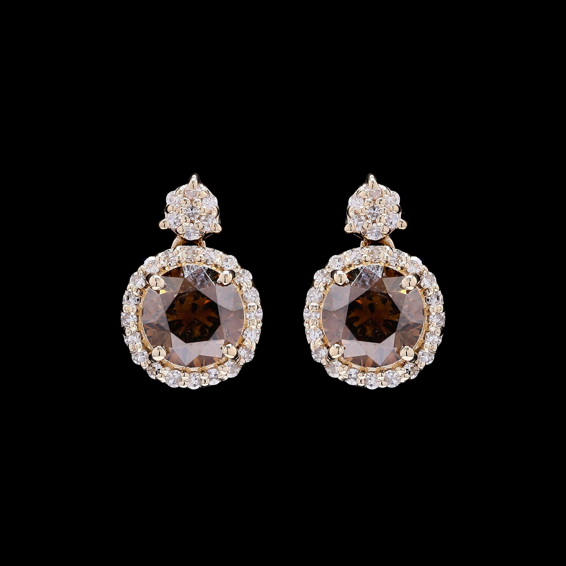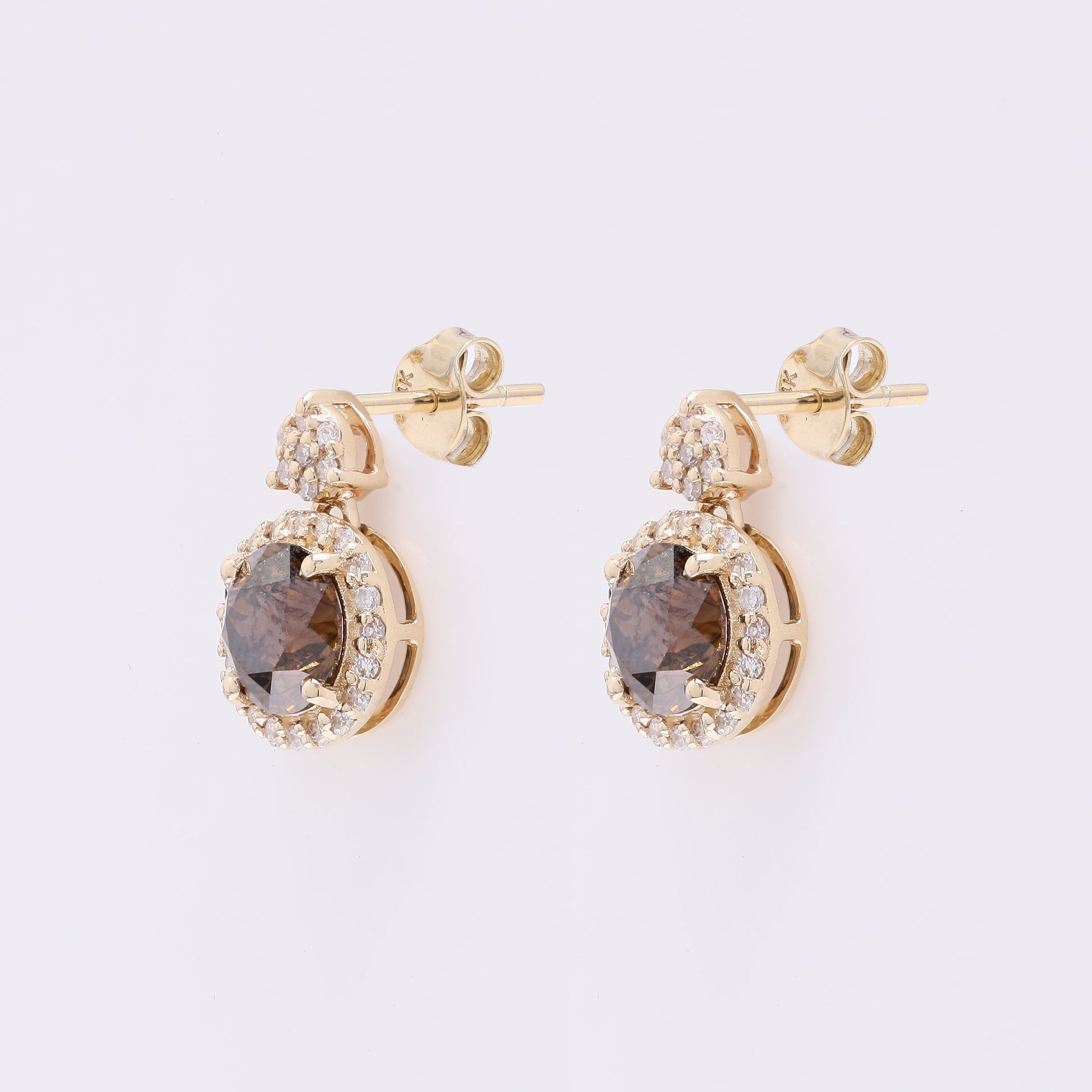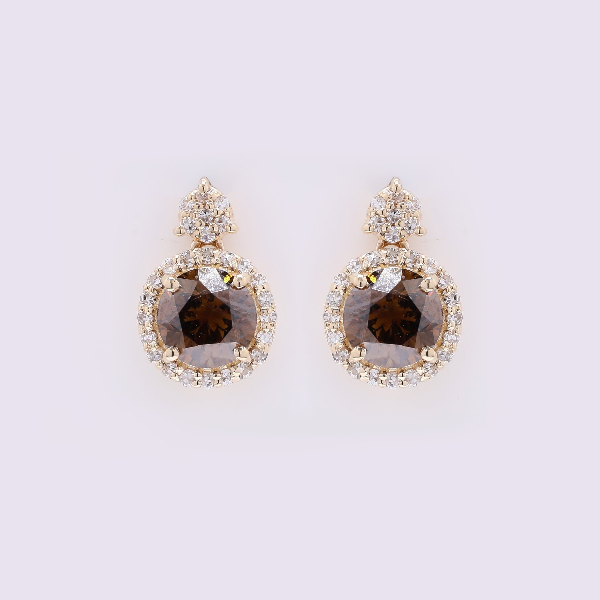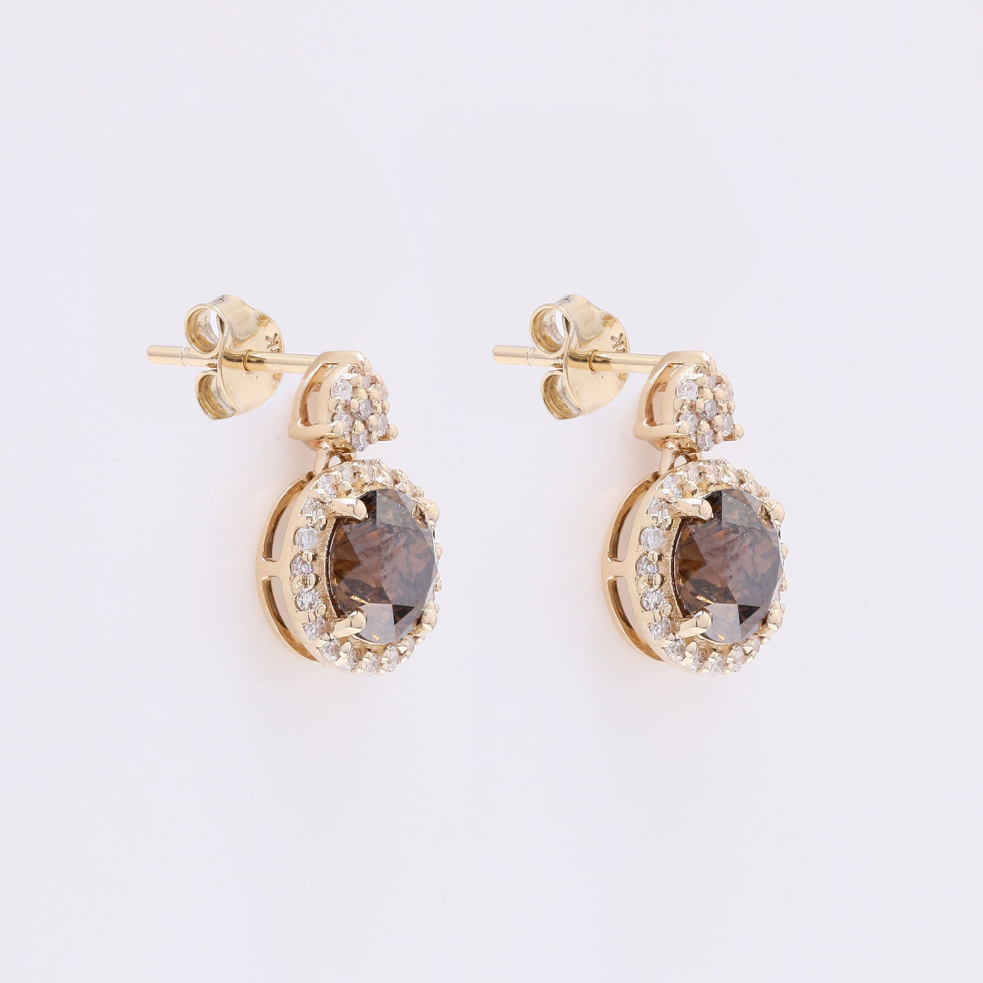 1.41 Ct Round Red Diamond 14K Gold Earrings